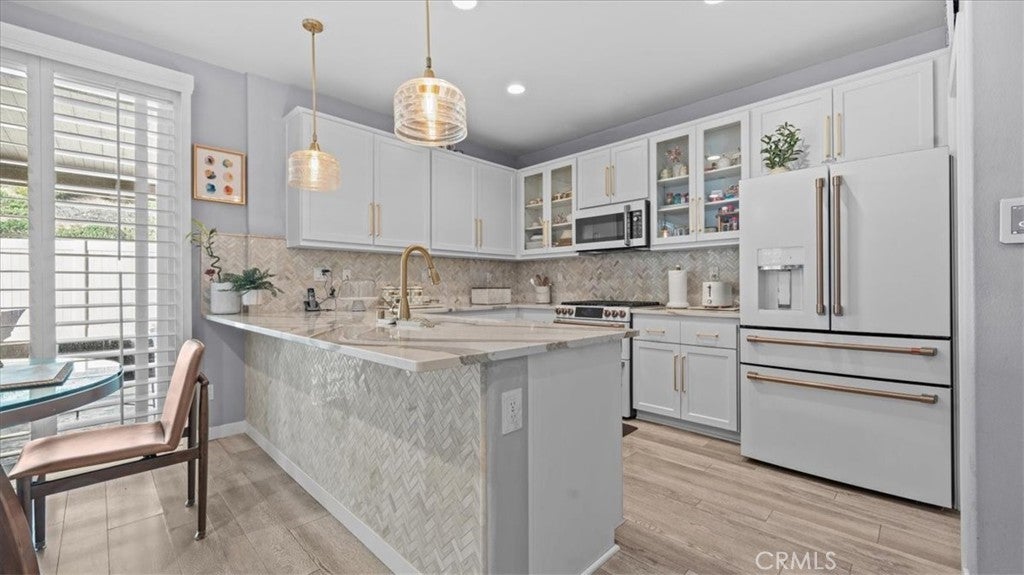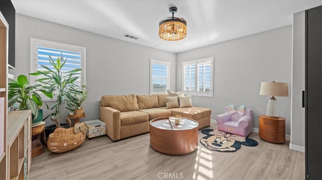 HUGE PRICE DROP! Sellers motivated! Upgraded to perfection by its original owners, this three-story home offers high-quality upgrades throughout — including 2 master bedroom suites for exceptional flexibility, functionality & privacy. The main floor features waterproof laminate flooring along its open-concept layout flowing from the living room into the designer kitchen. The beautifully upgraded kitchen is appointed with Britannia Gold quartz countertops, porcelain sink, refinished white cabinetry plus updated hardware & glass inserts, stainless steel appliances (2-door stove, dishwasher, overhead air fryer microwave, & icemaker refrigerator), glass pendant lighting, & a walk-in pantry with glass privacy door. Custom Savannah-style interior doors elevate the home’s design, including select glass privacy doors at the downstairs bath, primary bedroom entry, third-floor bath, & front door insert. Upstairs carpet upgraded with padding for added comfort & luxury. On the second level, you’ll find two secondary bedrooms sharing a dual-sink bath, along with the first primary suite complete with a fully upgraded spa-inspired master bathroom featuring ceramic tile & marble finishes, soaking tub, glass-enclosed shower, dual vanities, & a spacious walk-in closet. The third level functions as a private primary suite retreat, offering a spacious bedroom with its own full bathroom plus an adjoining loft — ideal as a private lounge, office, gym, or sitting area. This top-floor suite creates the perfect private escape or multigenerational setup. Green Energy-Efficient systems are in place to help save resources & keep utility bills low, such as: Tankless water heater with .94% efficiency rating, 6.5 TriPro whole house fan with controller, all recessed fixtures upgraded to LED & controlled by a dimmer switch & ceiling light fixtures in the bedrooms. The backyard is fully finished with stamped concrete throughout & enhanced with an Alumawood patio cover plus aluminum awnings— perfect for outdoor entertaining. Vinyl fencing, low-maintenance landscaping, & an attached 2-car garage complete the property. Built by Far West Industries this 4 bedroom & 3.5 bath home is located in the highly sought after gated community of Granite Ridge with breathtaking canyon views of Jurupa Valley, centrally located off of the 60 freeway just minutes away from The Cove Waterpark, Oak Quarry Golf Club, Sunnyslope Elementary & Patriot High School plus the newly opened The Shops anchored by Target.