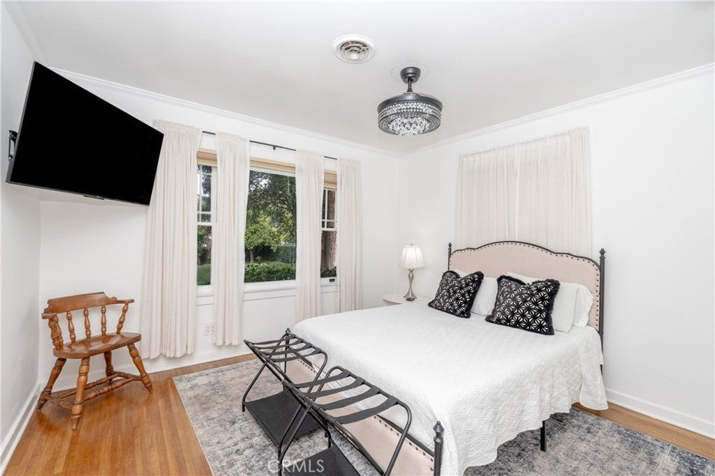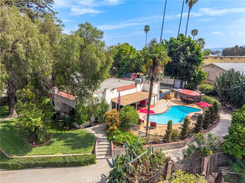 Step back in time to 1925 with this exquisite Spanish Colonial Revival residence, a truly rare offering that marries historic character with refined modern comforts. Gracefully documented in historical records and maintained in pristine condition, this home stands as a testament to timeless craftsmanship and enduring elegance. Beyond the gated entry, a long winding driveway runs along half the property, revealing a classic red tile roof, beautifully banded windows, and graceful archways that define the home’s distinguished façade. These original arched openings and period windows bathe the interior in abundant natural light, creating an inviting ambience. Inside, spacious bedrooms and generous living areas are adorned with original details that capture the romance of the era. Rich hardwood floors, lovingly preserved, flow throughout the home, while exquisite finishes echo the home’s 1920s heritage. A centerpiece of the living room, the original Batchelder tile fireplace—kept in pristine condition—anchors the space with both artistry and history, offering a rare and treasured focal point. The thoughtful updates blend seamlessly with its vintage soul. Modern amenities, including central air and heating and updated electrical, provide everyday comfort and peace of mind. The kitchen has been tastefully renewed, creating a harmonious balance between old-world charm and contemporary convenience. Set high on an expansive lot of over 26,000 sqft, the residence is enveloped by lush, manicured landscaping that offers both beauty and privacy. Tall hedges encircle the property, creating a secluded sanctuary that feels worlds away. The expansive porches and shimmering pool create an idyllic setting for enjoying the California sun.3 separate entrances off the long driveway enhance both practicality and grandeur, ideal for welcoming guests or accommodating a variety of lifestyles. A detached two-car garage sits quietly to the side, presenting excellent potential for an ADU conversion, should one wish to expand the estate’s living quarters. Additional alley access provides a separate entrance perfectly suited for RV parking or future expansion possibilities. A separate barn structure, rich with character, offers an ideal setting for a workshop/studio, inviting creativity and retreat. From its storied architectural pedigree, preserved original details, to its luxurious updates, this extraordinary and elegant estate evocatively blends past and present!