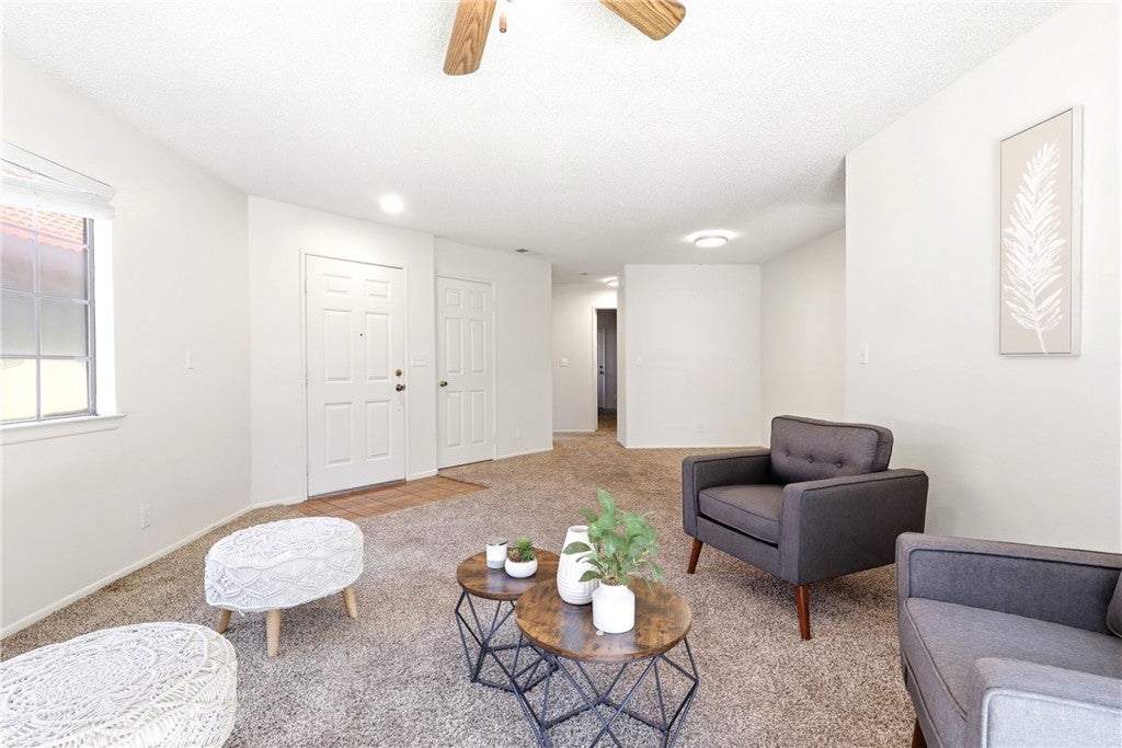 Move-In Ready Home in Apple Valley’s Premier 55+ Gated Community! This beautifully maintained two-bedroom home offers comfortable living in a highly desirable and conveniently located community. The inviting layout features a spacious living room that flows into the primary suite with a vanity area and private bathroom featuring dual sinks and a walk-in shower. The secondary bedroom is positioned at the front of the home, providing separation and privacy between both bedrooms, and is located near the full hallway bathroom and indoor laundry area with washer and dryer included. The kitchen includes a refrigerator, dishwasher, and range, along with a charming dining nook overlooking the front yard, creating a bright and welcoming space. Additional highlights include a desirable two-car garage and a large covered back patio, ideal for relaxing or enjoying outdoor living. The home is situated along the community greenbelt with lighted walking paths, perfect for enjoying the neighborhood surroundings. Conveniently located just outside the gated entrance is Jess Ranch Marketplace, offering shopping, dining, banking, a gym, and a movie theater providing everyday conveniences just moments from home.