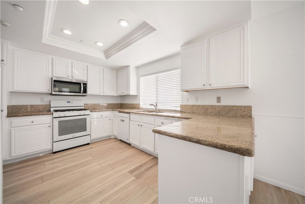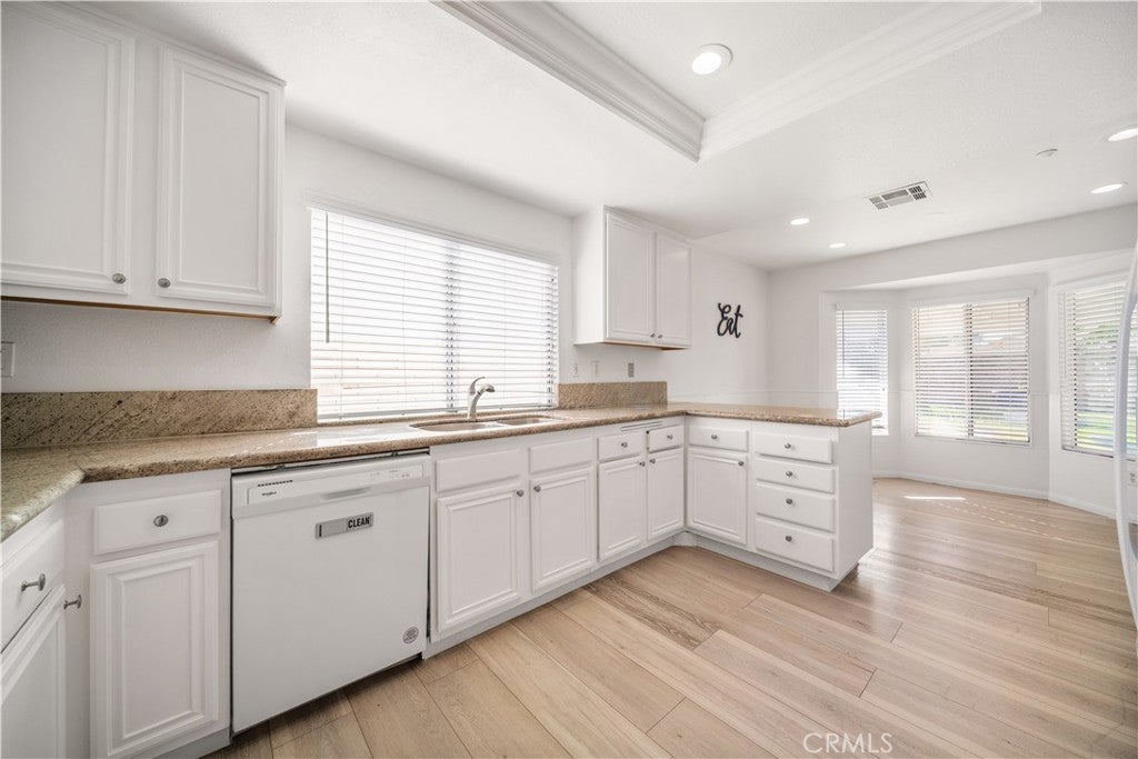 This one story Victorville home is equipped for professional-use cases such as a licensed care facility or daycare and features wide hallways for wheelchair access and handrails in the bathroom. The low-maintenance yard uses desert landscaping to eliminate gardening costs. Inside, you will find vaulted ceilings and new wide-plank flooring throughout. The kitchen features granite counters and a sliding door that opens to a large covered patio and raised garden beds. The versatile layout offers four bedrooms plus a fifth room for a home office. The primary suite includes dual sinks, two walk-in closets, and a separate tub and shower. High-level safety infrastructure is already in place, including a video camera system, interior fire sprinklers, and fire alarms managed per CDPH standards.