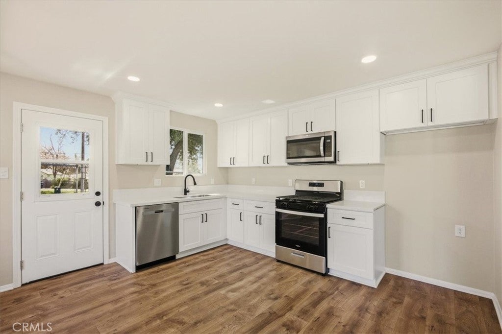 Newly remodeled 3-bedroom home with updated kitchen and bath, featuring new cabinets with soft-close doors and drawers, new appliances, and all-new flooring with LVP and carpet. Energy-efficient AC/heater split units, new windows, and a large single-car garage with insulated door. Spacious lot with room for a pool, ADU, or future expansion.