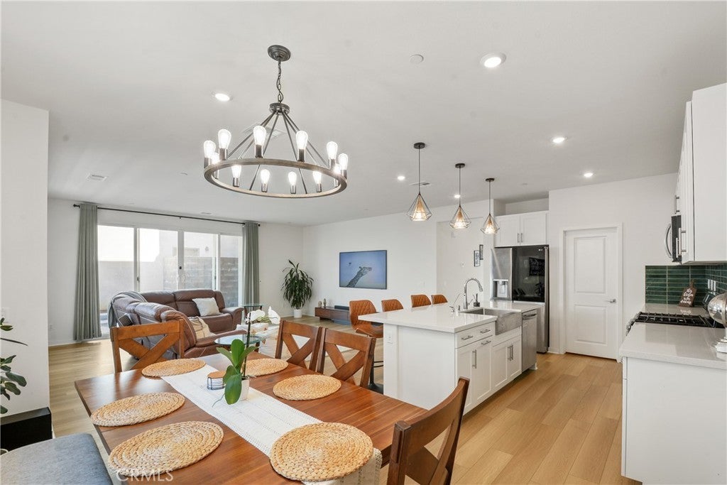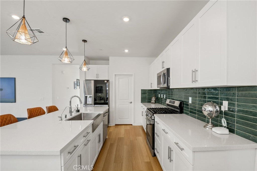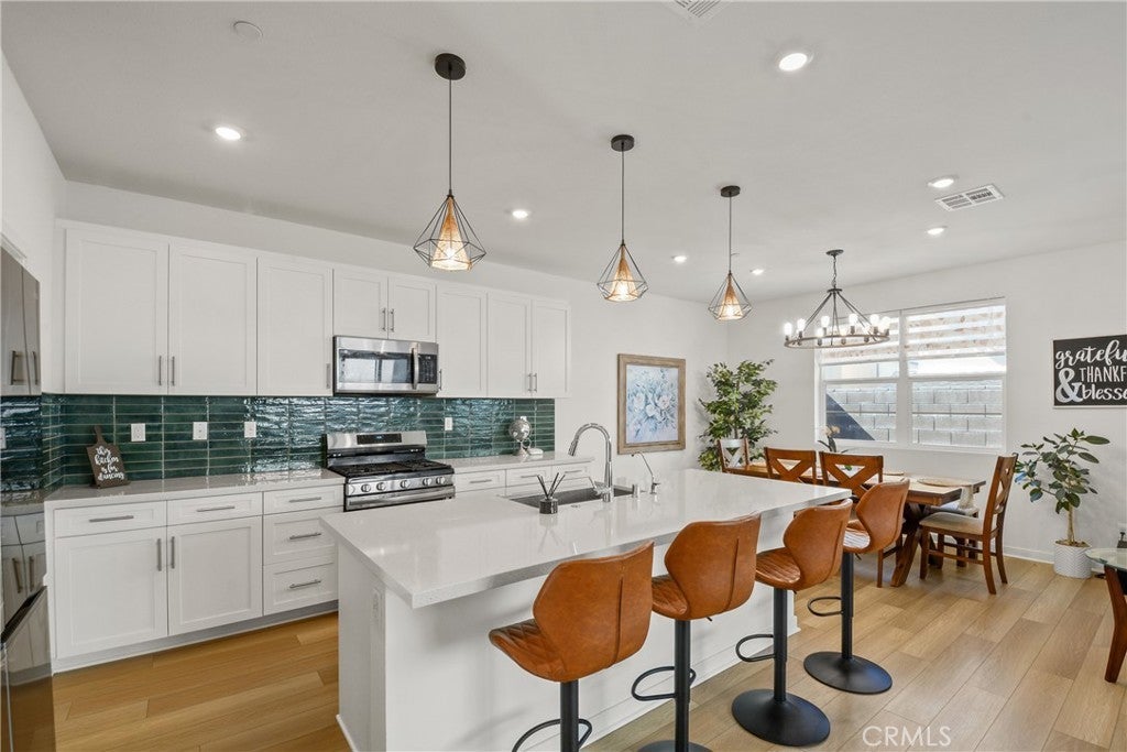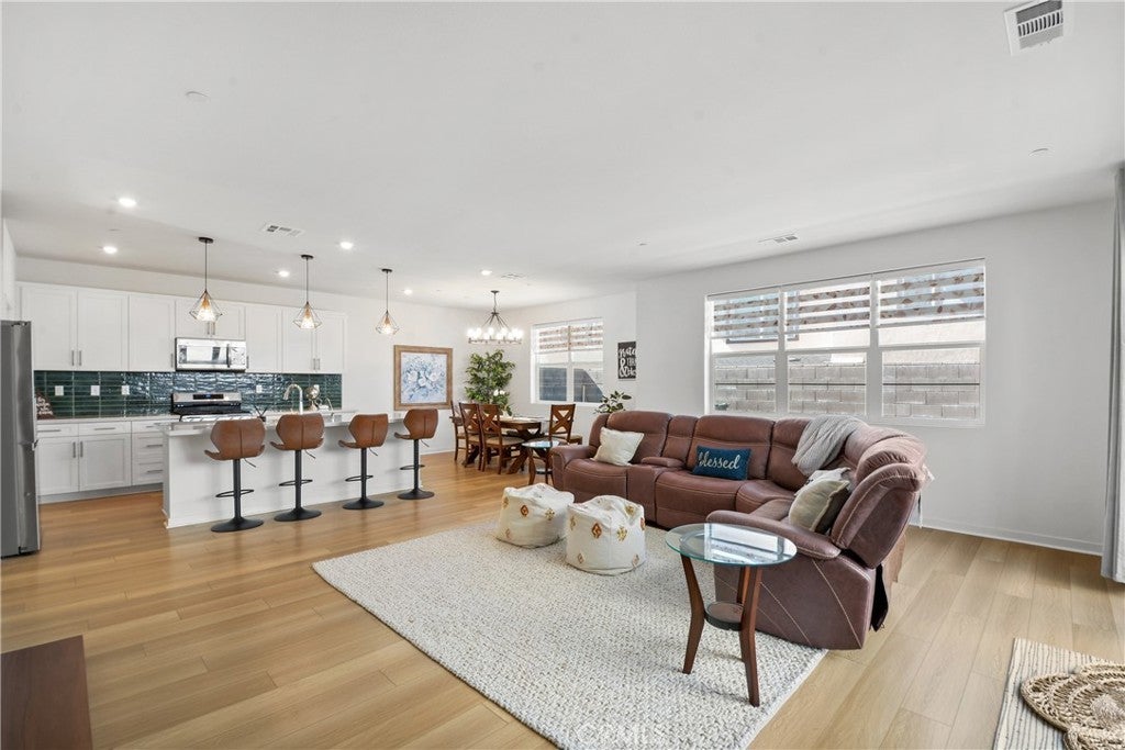 Welcome to 15916 Caterpillar Drive in Fontana, CA, a beautiful modern home located in the gated Narra Hills community in North Fontana. Built with contemporary design and energy efficiency in mind, this home offers the perfect combination of newer construction, mountain views, and resort-style community amenities. The home features a bright open floor plan where the living room, dining area, and kitchen connect seamlessly for easy everyday living and entertaining. Large windows bring in abundant natural light and showcase scenic mountain views, while luxury vinyl plank flooring on the main level adds both durability and modern style. This thoughtfully designed layout includes three bedrooms, two and a half bathrooms, and a spacious upstairs loft that can be used as a home office, media room, playroom, or additional living space. The primary suite offers generous space and a private retreat feel, creating a comfortable place to relax. Energy-efficient upgrades include owned solar panels, a tankless water heater, and a whole-home water softening system, helping improve comfort and long-term efficiency. The backyard is designed for outdoor entertaining and relaxing, offering a modern outdoor space to enjoy Southern California living. Residents of Narra Hills enjoy access to resort-style amenities, including pickleball courts, dog parks, a playground, fire pits, BBQ and picnic areas, and a large community center designed for gathering and recreation. Conveniently located in North Fontana near Sierra Lakes Golf Club, shopping centers, restaurants, parks, and major freeway access, this home offers easy connectivity throughout the Inland Empire while providing the comfort of a secure gated neighborhood with modern homes and community amenities. If you’re searching for a newer home in Fontana with solar, mountain views, and access to a gated community lifestyle, 15916 Caterpillar Drive is a must-see opportunity.