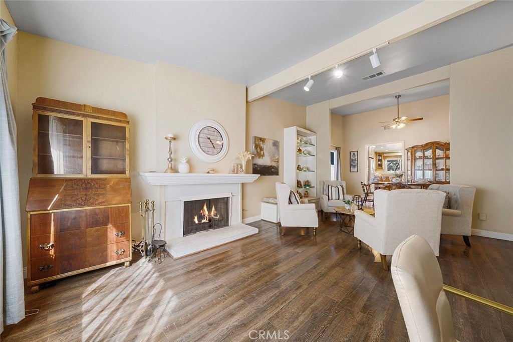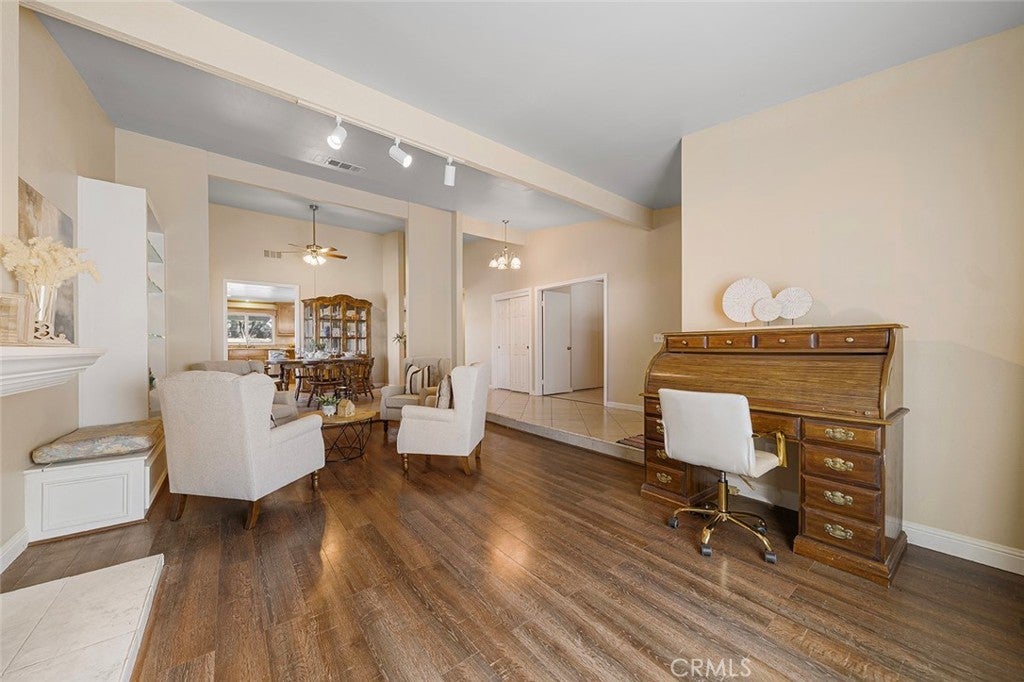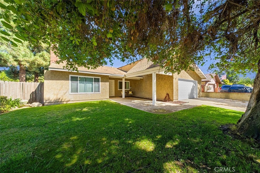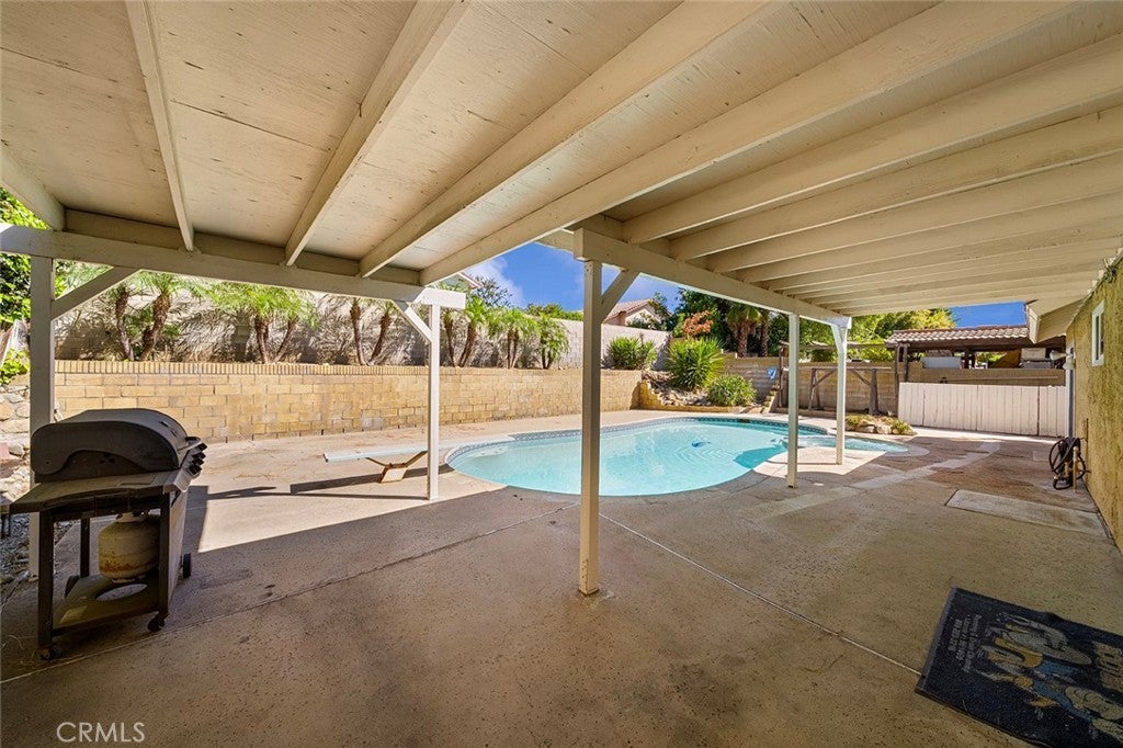 This well-maintained single-level home offers a thoughtful layout designed for both comfortable everyday living & effortless entertaining. A spacious living room welcomes you w/ high ceilings, a cozy fireplace, & a charming built-in bench framed by illuminated shelving; perfect for showcasing favorite décor or treasured books. The dining room, set just one step up, carries the same soaring ceiling line, creating an open yet defined space for gatherings. From the dining area, a convenient pass-through leads to the kitchen & family room, while the long formal entry provides another graceful approach. Immediately off the entry to the right, double doors open to 1 of the 4 bedrooms; an ideal space for a den, office, or guest room w/ an additional door connecting to the main hallway. Just beyond the entry, before the family room, a hallway to the right leads to the remaining bedrooms & bathrooms. 3 of the 4 bedrooms include ceiling fans for added comfort. The primary suite is generously sized w/ a walk in closet & feature sliding doors that open to the backyard, where a sparkling pool w/ hot tub & covered patio create a relaxing retreat to enjoy rain or shine. The kitchen reflects thoughtful updates & years of care, w/ beautiful cabinetry, pull-out storage, & granite countertops. At the center sits a large island; perfect for casual meals, morning coffee, or watching a favorite show while dinner comes together. Note that the stove, microwave, dishwasher & refrigerator remains w/ the home. The inviting family room is designed for entertaining, centered around a stylish wet bar that complements the kitchen’s design; ideal as a coffee bar or a place to serve desserts while celebrating w/ loved ones. Storage is plentiful throughout the home, from generous pantry space to additional cabinets in the 2-car garage. Nearby, the oversized laundry room w/ its bright side window, offers ample wall space for extra shelving, pantry expansion, or a creative workspace. French doors from the family room & kitchen opens to the backyard, inviting you to relax under the covered patio or take a refreshing dip in the pool; perfect for enjoying sunny Southern California living at its best. Now it is time for you to SEE IT! LOVE IT! BUY IT! Added note: 2 yrs ago: water heater, pool filter and tile in garage. Pool grids replaced 80 of them at $80.00 each. 5-6 yrs ago pool heater & motor replaced. 7-8 yrs ago: AC & Furnace. Walk/Ride to shops & restaurants