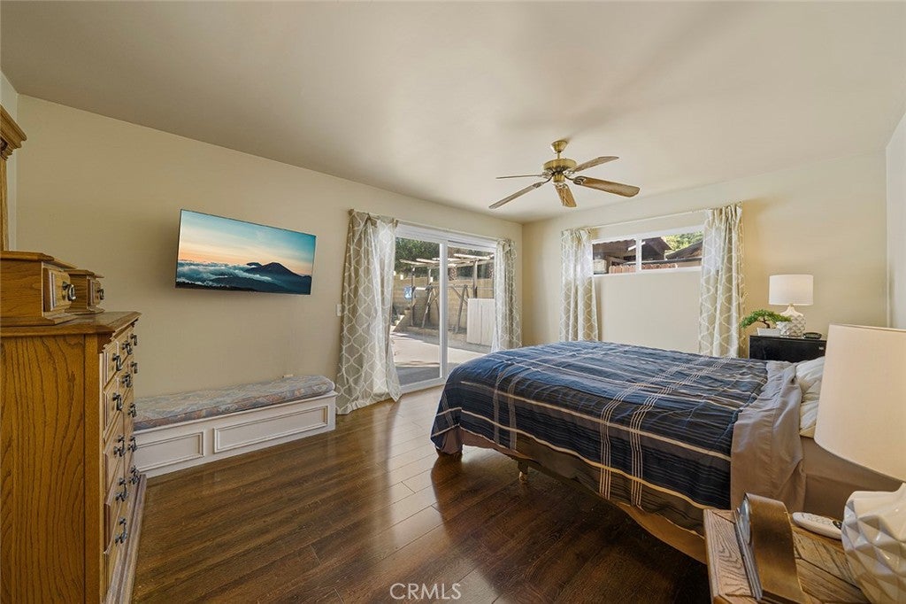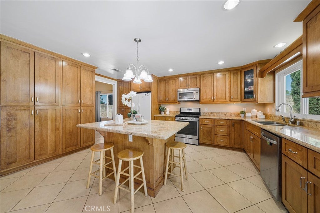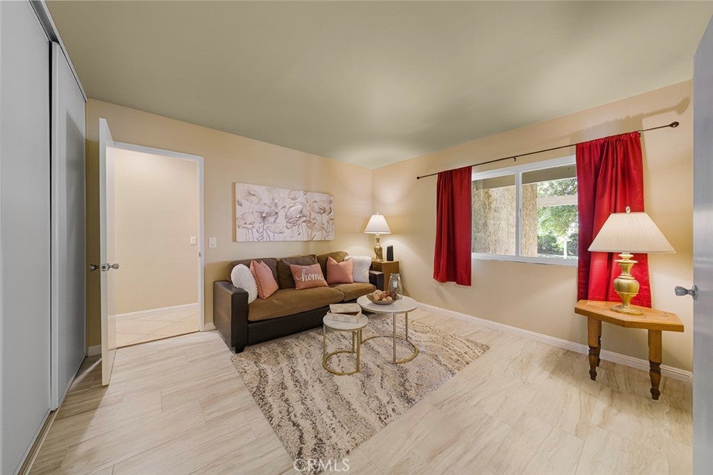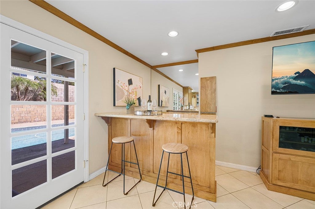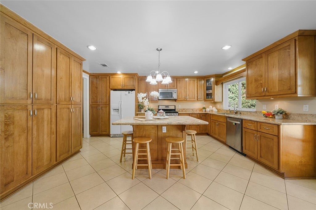 This well-maintained single-level home offers a thoughtful layout designed for both comfortable everyday living & effortless entertaining. A spacious living room welcomes you w/ high ceilings, a cozy fireplace, & a charming built-in bench framed by illuminated shelving; perfect for showcasing favorite décor or treasured books. The dining room, set just one step up, carries the same soaring ceiling line, creating an open yet defined space for gatherings. From the dining area, a convenient pass-through leads to the kitchen & family room, while the long formal entry provides another graceful approach. Immediately off the entry to the right, double doors open to 1 of the 4 bedrooms; an ideal space for a den, office, or guest room w/ an additional door connecting to the main hallway. Just beyond the entry, before the family room, a hallway to the right leads to the remaining bedrooms & bathrooms. 3 of the 4 bedrooms include ceiling fans for added comfort. The primary suite is generously sized w/ a walk in closet & feature sliding doors that open to the backyard, where a sparkling pool w/ hot tub & covered patio create a relaxing retreat to enjoy rain or shine. The kitchen reflects thoughtful updates & years of care, w/ beautiful cabinetry, pull-out storage, & granite countertops. At the center sits a large island; perfect for casual meals, morning coffee, or watching a favorite show while dinner comes together. Note that the stove, microwave, dishwasher & refrigerator remains w/ the home. The inviting family room is designed for entertaining, centered around a stylish wet bar that complements the kitchen’s design; ideal as a coffee bar or a place to serve desserts while celebrating w/ loved ones. Storage is plentiful throughout the home, from generous pantry space to additional cabinets in the 2-car garage. Nearby, the oversized laundry room w/ its bright side window, offers ample wall space for extra shelving, pantry expansion, or a creative workspace. French doors from the family room & kitchen opens to the backyard, inviting you to relax under the covered patio or take a refreshing dip in the pool; perfect for enjoying sunny Southern California living at its best. Now it is time for you to SEE IT! LOVE IT! BUY IT! Added note: 2 yrs ago: water heater, pool filter and tile in garage. Pool grids replaced 80 of them at $80.00 each. 5-6 yrs ago pool heater & motor replaced. 7-8 yrs ago: AC & Furnace. Walk/Ride to shops & restaurants