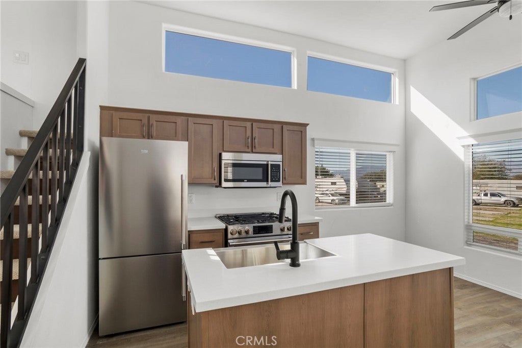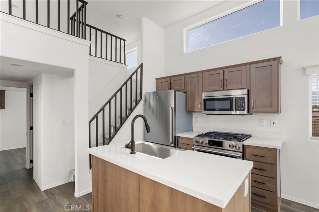 Welcome to this stunning, brand-new construction home offering modern design, elevated living space, and beautiful natural light throughout. This thoughtfully built residence features a unique and highly desirable layout with soaring vaulted ceilings, oversized upper windows, and an open-concept living area that feels bright, airy, and spacious from the moment you enter. The contemporary kitchen is designed to impress, showcasing sleek quartz countertops, stainless steel appliances, modern cabinetry with stylish hardware, and ample counterspace for cooking, entertaining, or everyday use. The kitchen flows seamlessly into the main living area, creating a functional great-room feel perfect for hosting guests or relaxing in comfort. This home offers a versatile floor plan with a private downstairs bedroom and full bathroom-ideal for guests, family, or a home office setup. Upstairs, the loft-style additional room provides flexible space that can be used as a second bedroom, bonus room, office, or hobby space, while still maintaining an open-to-below design that enhances the home's dramatic ceiling height and modern architectural character. Additional highlights include central air conditioning and heating, recessed lighting, dual-pane windows for energy efficiency, modern fixtures throughout, and indoor laundry convenience. With its turnkey condition, contemporary finishes, and efficient layout, this is an excellent opportunity to own a newly built home in Desert Hot Springs close to local shopping, dining, and commuter routes.
