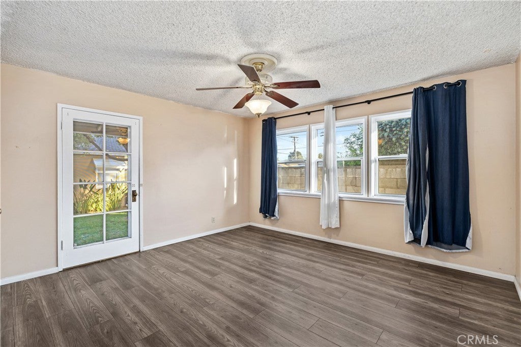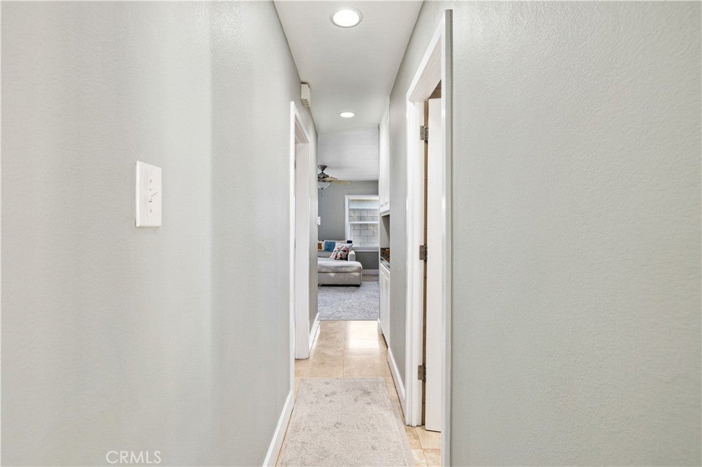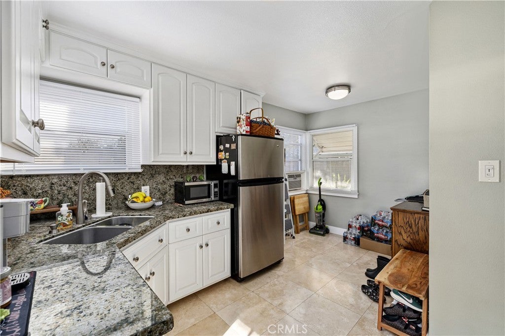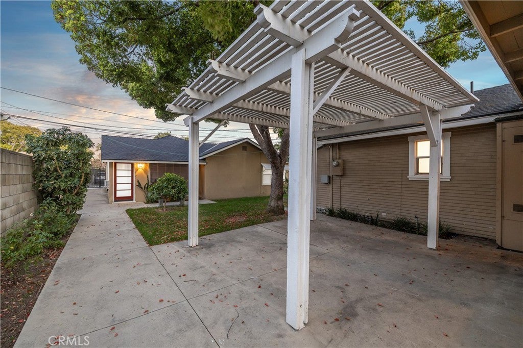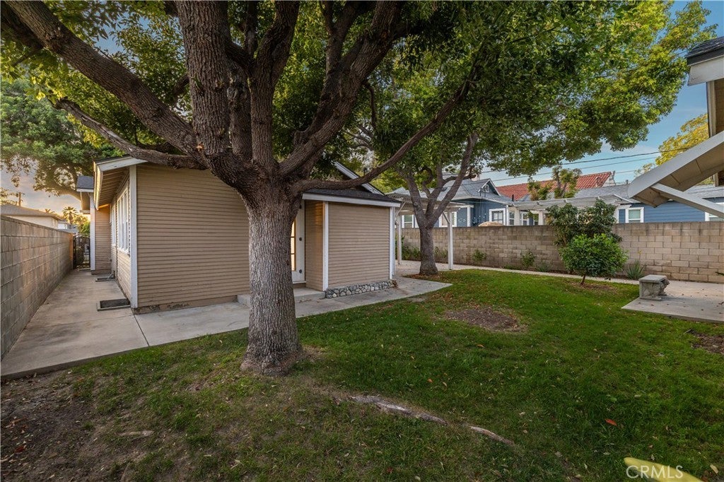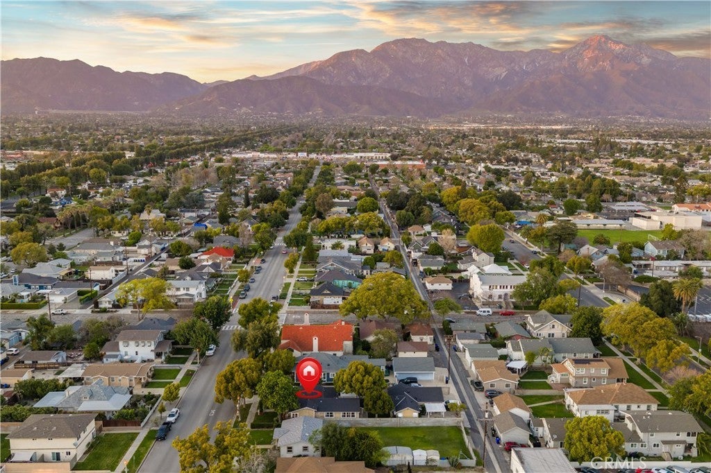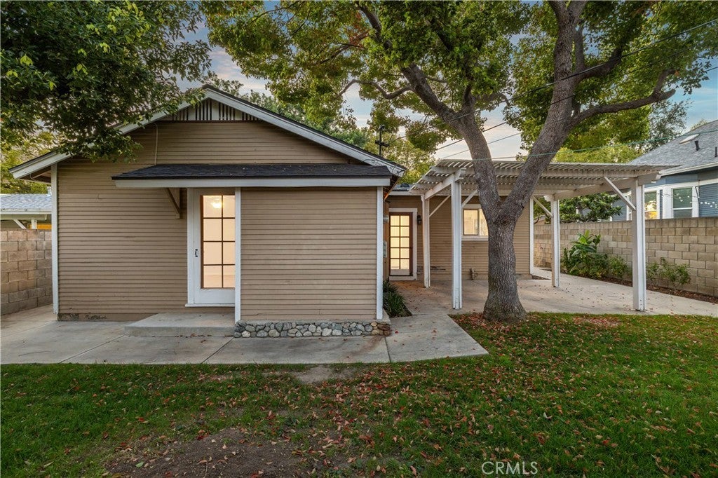 Located within walking distance to historic Downtown Upland and currently benefiting from the Mills Act, this two homes on one lot property at 548 N. 2nd Ave. and 548 1/2 N. 2nd Ave. features a front home with 3 bd, 2 ba, approx 1,488 sq ft plus a separate rear home/ADU with 1 bd, 1 ba, approx 683 sq ft, offering flexibility for rental income, guest house, or multi generational living. Each residence includes its own private garage, separate electric meter and gas, and individual laundry. The front Craftsman style home features a covered porch with stone accented columns, horizontal siding, and multi pane windows. The front yard includes mature shade trees, landscaped beds, lawn area, and a concrete walkway with a decorative garden arch framing the entry path. A long driveway along the side provides access to the rear of the property. The spacious living/family room offers large front facing windows, an original fireplace with wood mantel, and a wood paneled accent wall, plus a connected room ideal for a dining room/office. The layout flows into the kitchen and eating area creating a central living space. The kitchen features wood cabinetry, tile counters/backsplash, and a peninsula with a built in gas cooktop and vent hood. Laminate plank flooring in a parquet pattern extends through the kitchen and dining area. The dining space includes sliding glass doors to the side patio. Stainless steel refrigerator and freestanding gas range are included, with a nearby laundry room and storage. The hallway leads to the primary bedroom with hardwood flooring, corner windows, and an ensuite bath featuring an extended vanity, tile counter, built in storage, and a tub/shower with tiled surround. Two additional bedrooms offer closet storage and natural light. The hall bath includes a single sink vanity, walk-in tiled shower, and built in cabinetry. The backyard features mature trees, grass, and concrete patio areas with pergola covered seating space. The rear home has its own entrance to a living room with multiple windows and ceiling fan. A hallway with built in cabinetry leads to the kitchen featuring granite counters, white cabinetry, and stainless appliances, with a door opening to a private patio with pergola seating. The bedroom includes ceiling fan, large windows, and closet. The bathroom features a pedestal sink and tiled walk in shower. Two garages, one oversized garage for the front home and a standard size garage for the rear unit with laundry and storage.