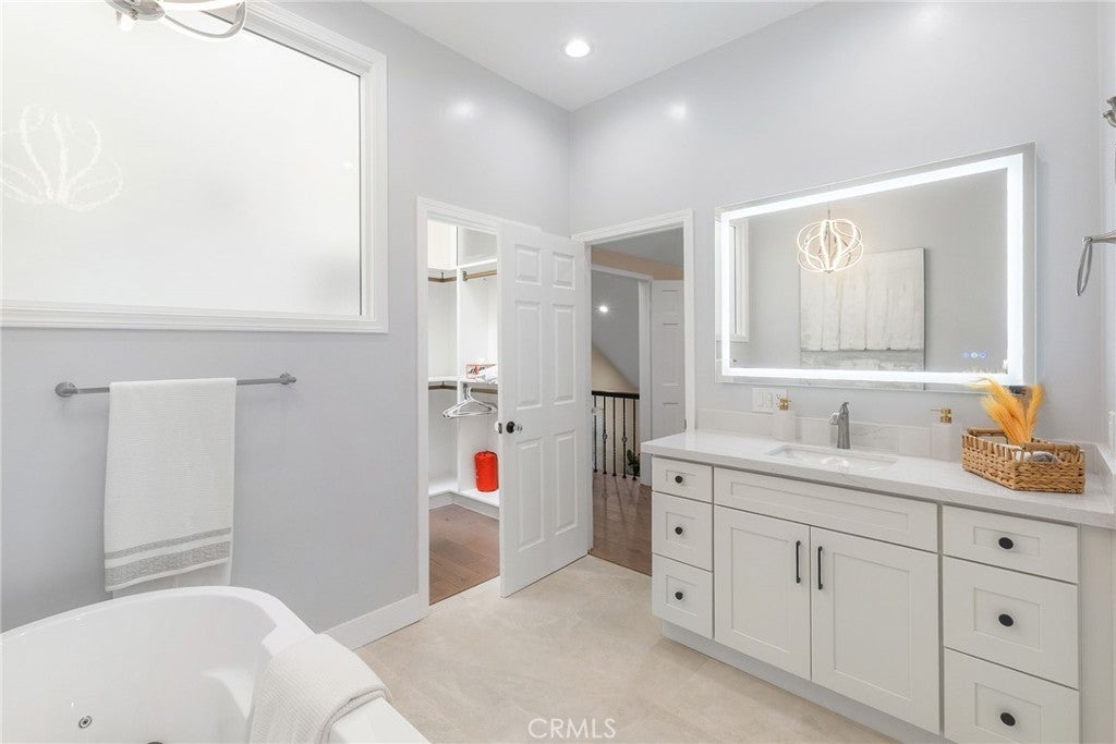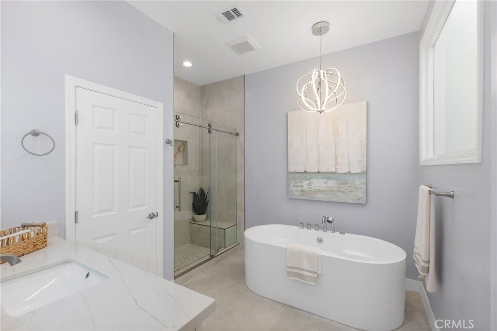 Tucked away on a quiet cul-de-sac in the sought-after Rim Crest Villas community of Anaheim Hills, this beautifully upgraded 2-bedroom, 2.5-bathroom townhouse offers the perfect blend of comfort, style, and privacy. Featuring dual primary suites and light-filled interior with a stunning upgraded kitchen showcasing modern finishes, sleek countertops, and quality cabinetry, seamlessly flowing into the living and dining areas. Enjoy multiple outdoor spaces, including two private balconies—perfect for relaxing with a morning coffee or unwinding in the evening—as well as a small backyard ideal for entertaining, gardening, or simply enjoying the peaceful surroundings.