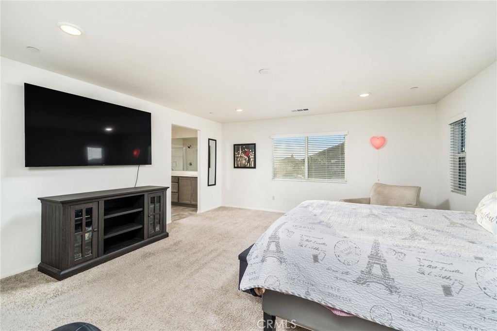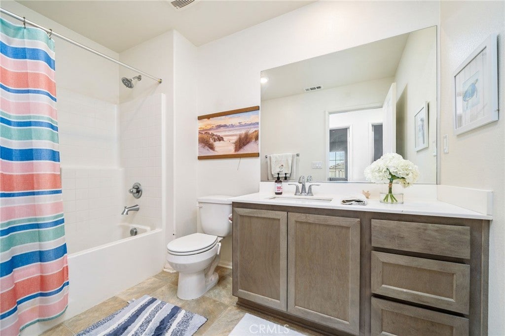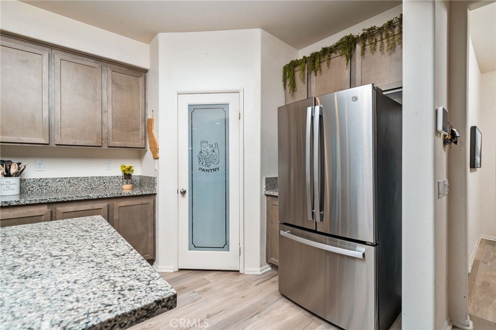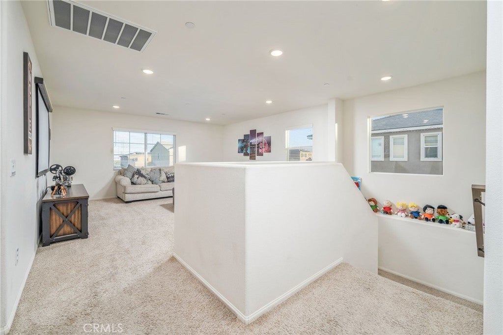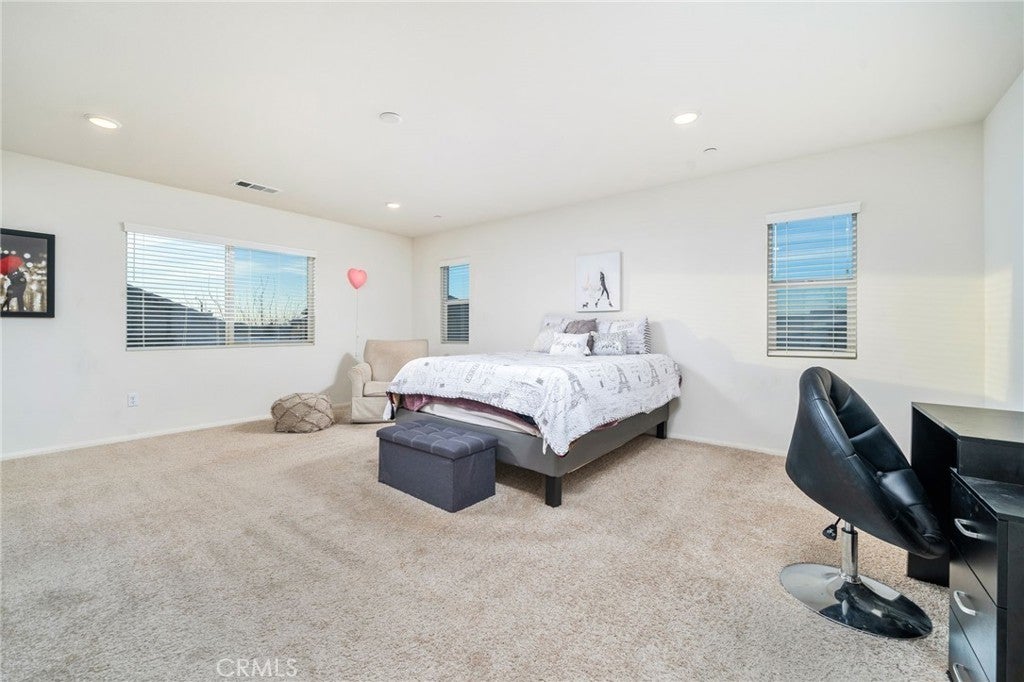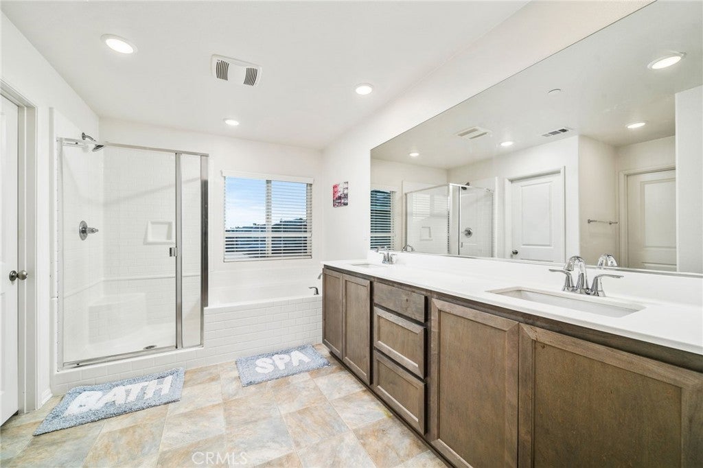 TURN KEY MULTI GENERATIONAL HOME WITH SOLAR IN DIAMOND RIDGE. Built in 2020 by Frontier Homes, this spacious and thoughtfully designed single-family residence offers a blend of modern comfort, functionality, and location. Featuring 5 bedrooms, 4 bathrooms, and approximately 2,915 square feet on a 7,300 square foot lot, this home provides ample room for everyday living and entertaining. A large open-concept great room welcomes you upon entry, seamlessly connecting the kitchen, dining, and living areas. Filled with natural light, this space feels open and inviting. The kitchen features granite countertops, a walk-in pantry, and pendant lighting over a generous island—ideal for meal prep or casual dining. The adjacent dining area makes hosting easy and convenient. Wide plank laminate wood flooring runs throughout the main living areas, offering both style and durability. The home also includes over $11,000 in builder upgrades, including flooring and window coverings. The versatile floorplan includes two downstairs bedrooms—one with an en-suite bathroom—ideal for guests or in-law living. Upstairs, a spacious loft offers flexibility for a media room, workspace, or additional living area. The primary suite features a large walk-in closet and an en-suite bathroom with dual vanities, a separate tub, and shower. Two additional bedrooms and an upstairs laundry room complete the upper level. The backyard is designed for both enjoyment and low maintenance, featuring artificial turf, a large storage shed, and a variety of fruit trees including grapes, pears, figs, peaches, apples, plums, and watermelon. Additional highlights include a two-car attached garage, extended driveway for extra parking, and NO HOA. A solar system at $157 per month helps keep electricity costs low. Ideally located less than one mile from Vista Verde Elementary, under two miles from Silverado High School, and one mile from Mesa Linda Park. Adelanto Marketplace—featuring Stater Bros., Starbucks, Walmart, and more—is just 1.5 miles away.