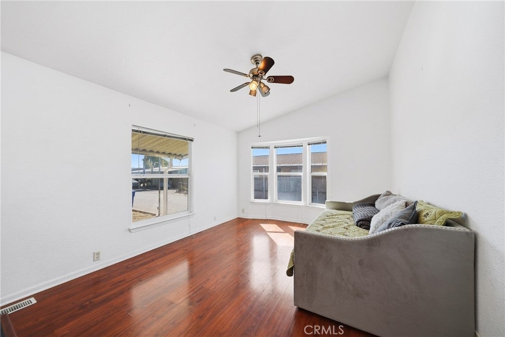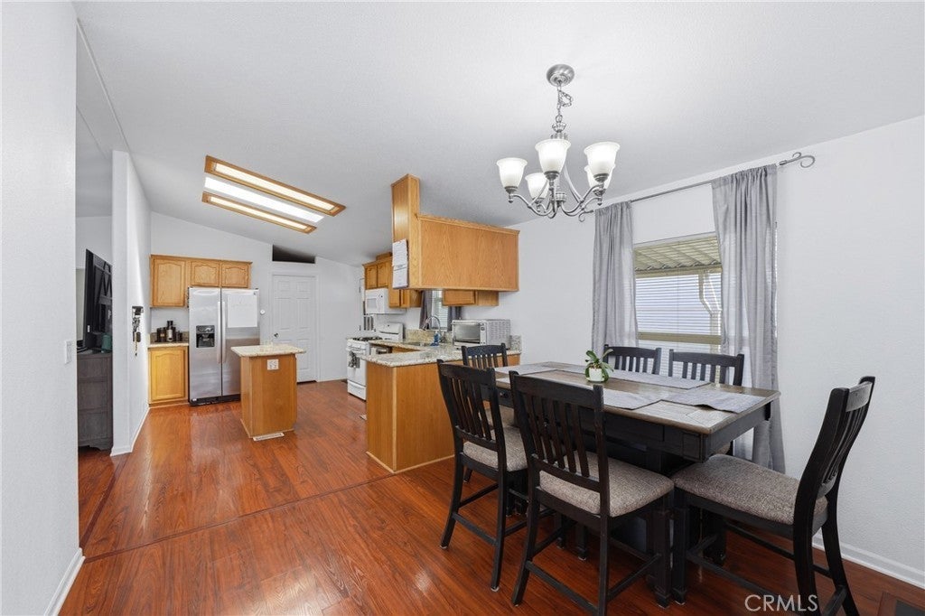 Welcome to this charming manufactured home located in a well-maintained community, offering comfort, space, and an abundance of natural light v . Inside, you’ll find beautiful vaulted ceilings and skylights that fill the home with sunshine, creating a bright and airy atmosphere throughout the main living areas. The cozy two-way fireplace serves as a centerpiece between the living room and dining area, adding warmth and character to both spaces. The spacious primary bedroom features a private en-suite bathroom complete with dual sinks, a relaxing soaking tub, and a separate stand-up shower. Additional highlights include an individual laundry room, central HVAC for year-round comfort, and a covered carport for convenient parking. Step outside to enjoy a rare feature for park living — a large private backyard, perfect for relaxing, gardening, or entertaining. This home offers the ideal blend of comfort, functionality, and outdoor space in a welcoming community setting at a wonderful price!