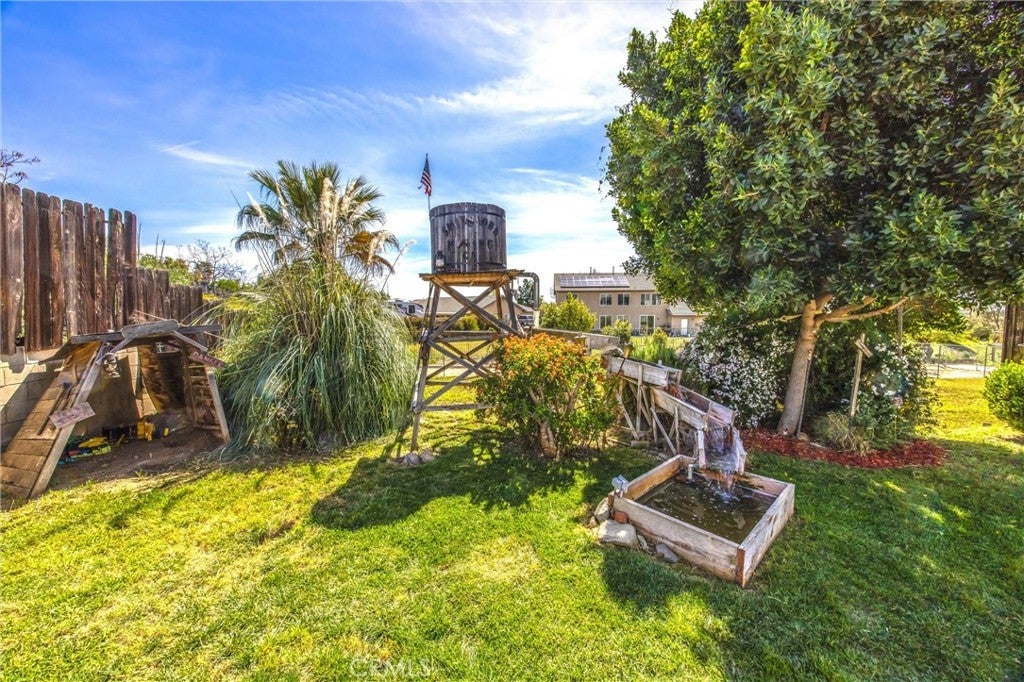 Welcome to your private oasis in one of Yucaipa’s most highly sought-after neighborhoods. Move-in ready this charming 3-bedroom, 1-bathroom home spans 1,436 sq. ft. of living space. You will enter into the formal living room that flows easily into the dining room. The kitchen is thoughtfully accessible from the dining room and also off the living room hall. The primary bedroom is unto itself for quiet relaxation. The real showstopper is the expansive outdoor retreat. Entertain guests on the wooden deck featuring a cozy firepit, which leads down to rolling green grass and a tranquil water feature. Enjoy the fully landscaped front and back yards designed for ultimate relaxation. The oversized lot features mature trees providing natural shade and a sense of seclusion. . Looking for extra space? This property is fully fenced and gated for maximum privacy and security. It offers dedicated RV parking and boasts a massive backyard with plenty of room for an ADU (Accessory Dwelling Unit)—perfect for multi-generational living or rental income potential. Recent upgrades include 50 gallon water heater, quiet open garage door opener, 2019 garage door. New exterior lighting, door hardware and hinges. The home will undergo the installation of a brand new roof starting March 23rd! This hidden gem offers the perfect blend of tranquility and potential. Don’t miss your chance to own a piece of Yucaipa’s finest real estate. Schedule your private showing today! Please note: Title shows 908 sq ft. There is an unpermitted dining rm and bedroom at back of home.