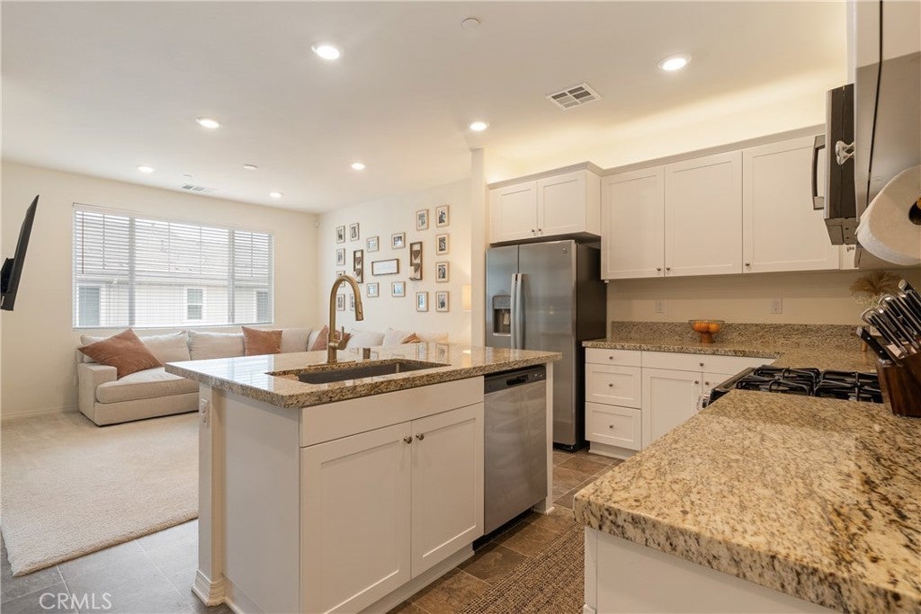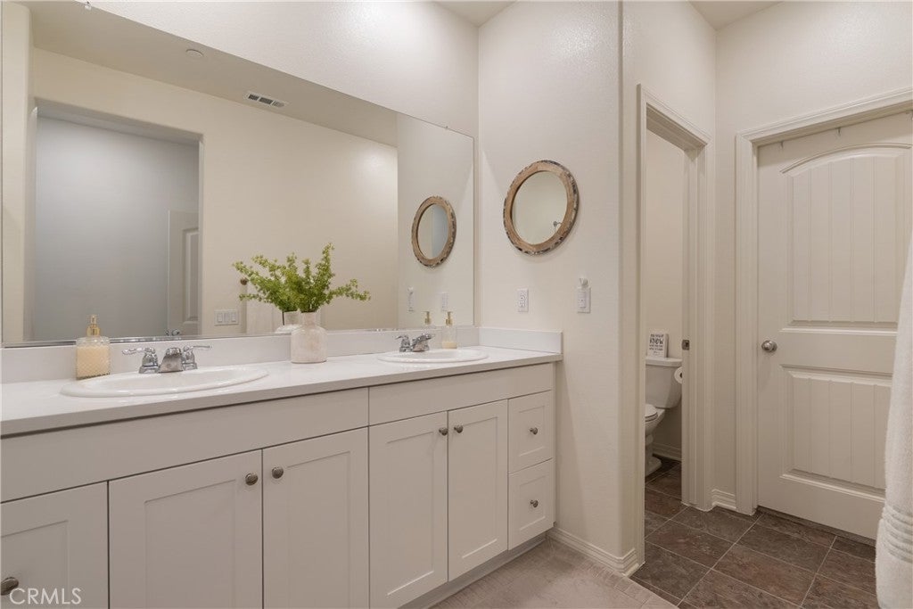 Located in the growing Lennar community of Gabion Ranch, this home offers modern living with access to a wide range of neighborhood amenities. Residents enjoy community features including multiple pools and spas, a large fire pit, barbecue area, dog parks, and playgrounds, creating spaces to relax and spend time outdoors. As you approach the home, a welcoming front patio greets you before stepping inside. The first level features a private primary suite with a wet bar and primary bathroom, along with a laundry room and convenient access to the attached two-car bowling-alley style garage. Upstairs, the main living area offers a bright open-concept layout. The kitchen features white cabinetry, granite countertops, and stainless steel appliances, and opens directly to the living and dining areas. From both the living room and the private balcony, you can enjoy beautiful views of the San Gabriel Mountains, creating a great space for morning coffee or relaxing outdoors. The second floor also includes a half bathroom in the hallway, along with a second primary suite featuring a walk-in closet and a full bathroom with dual sinks. With low-maintenance living and access to the amenities throughout Gabion Ranch, this home offers a great opportunity to own in one of Fontana’s growing communities. Conveniently located between the 210 and 15 freeways, the home provides quick access to Victoria Gardens, outdoor recreation, and nearby walking trails. Do not miss the opportunity to make this your new home! Located in building #16
