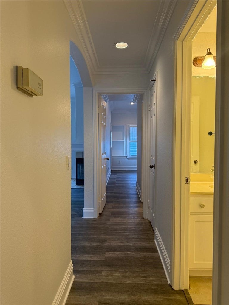 Upgraded Upstairs End Unit in Prime Location! Beautiful 2-bedroom, 2-bath upstairs end unit featuring a functional and open layout. This home includes a detached 1-car garage plus one additional assigned parking space. Interior upgrades include granite countertops, newer appliances, crown molding, recessed lighting, and central A/C. Spacious living room with a cozy double-sided fireplace. Convenient inside laundry area. Located in a highly desirable central location close to shopping, dining, and major transportation routes. A must-see!