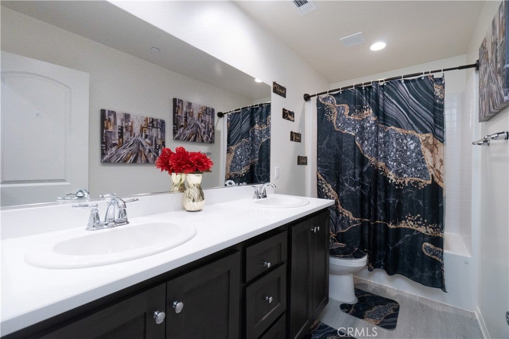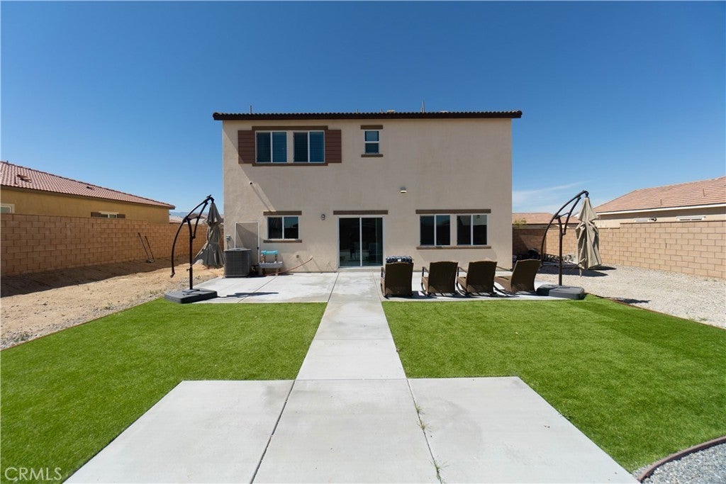Welcome to 11347 Quail Hollow St. in Victorville, CA 92392—a stunning opportunity to own a beautifully positioned home featuring $50,000 in upgrades and a fully paid-off solar system for maximum energy efficiency. This impressive residence offers 2,308 square feet of thoughtfully designed living space, including five spacious bedrooms and three well-appointed bathrooms. The interior features an open-concept floor plan with soaring ceilings and abundant natural light. Highlights include a downstairs bedroom, a versatile upstairs loft, and a kitchen equipped with generous counter space, a complete back-splash, and ample cabinetry. The primary suite serves as a private retreat with a spacious design and an en-suite bathroom. Outside, you will find a versatile yard with custom cement work, artificial turf, and an outdoor fire pit—perfect for enjoying the Southern California sunshine. The exterior also boasts fresh new paint and excellent curb appeal. Conveniently located near shopping, dining, parks, and commuter routes, this property perfectly combines style, comfort, and location.