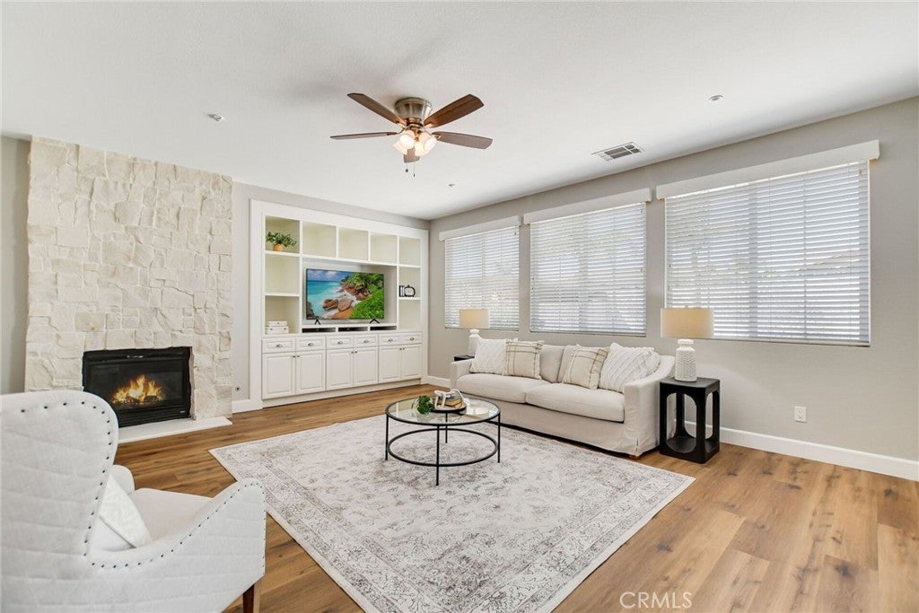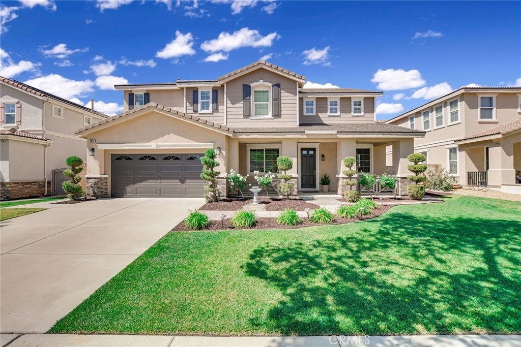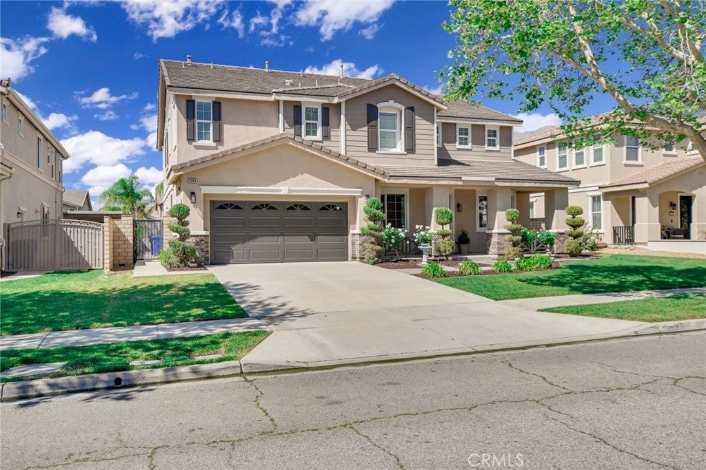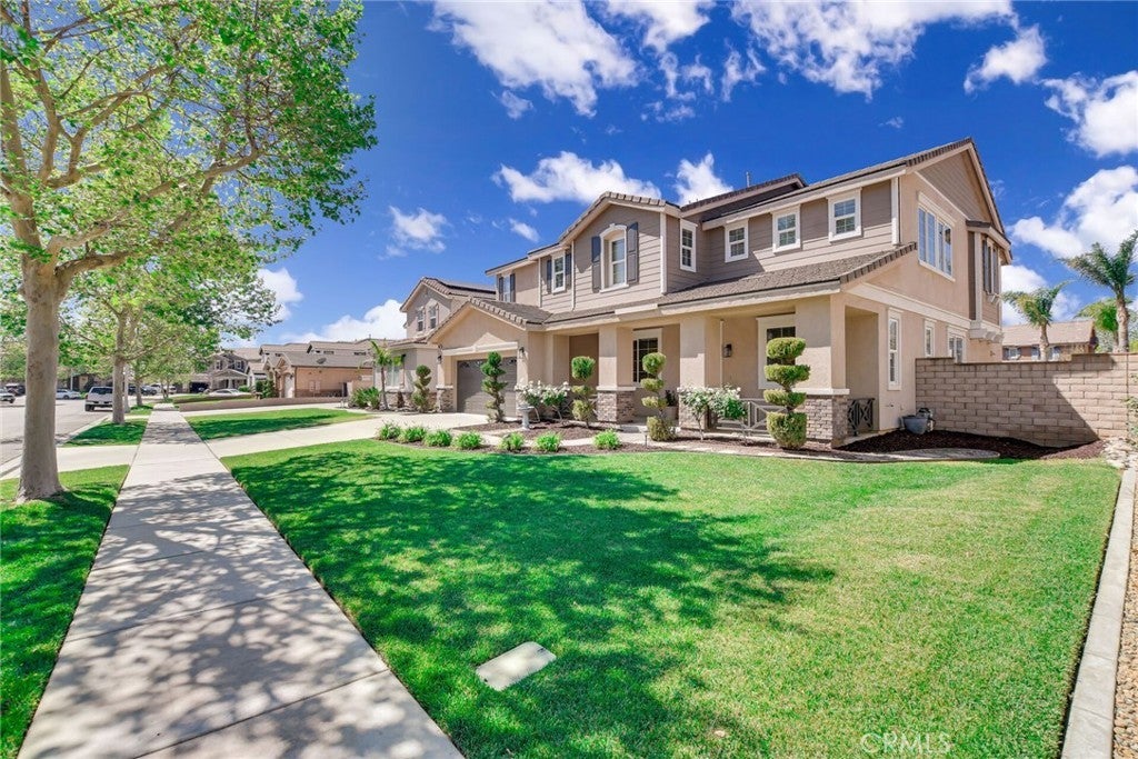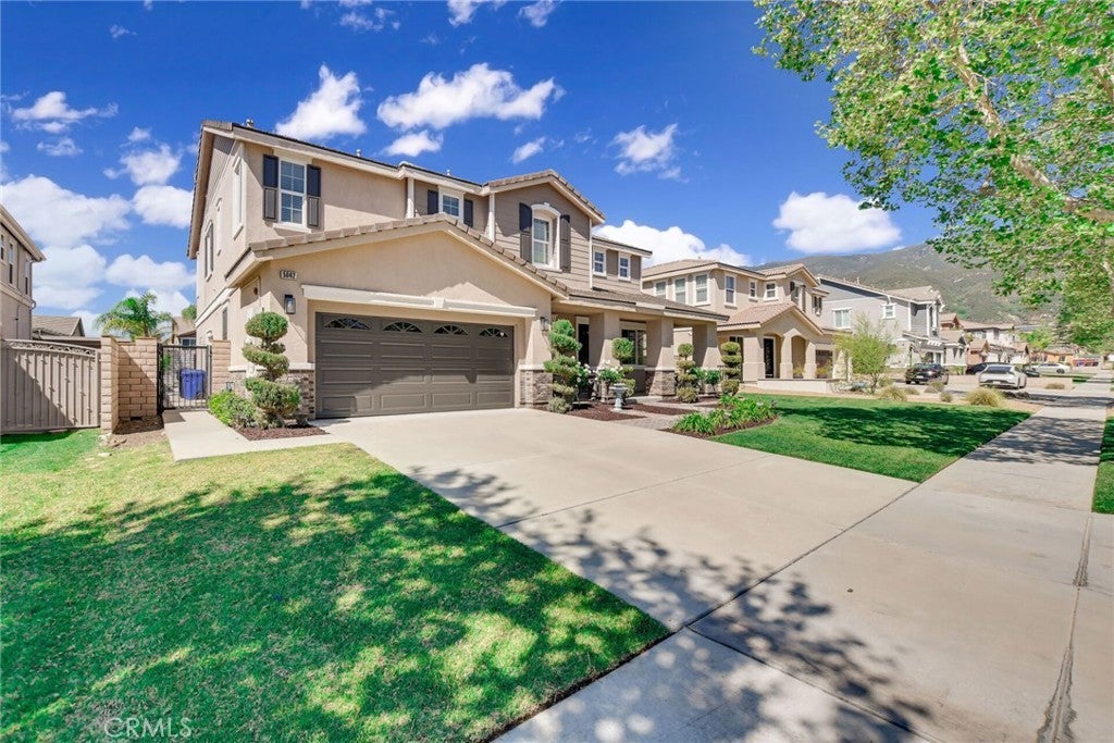 WELCOME HOME to this beautifully upgraded 3,808 sq ft home located in one of the most highly desirable neighborhoods of Fontana. This home offers 5 bedrooms and 3.75 bathrooms and also has a large loft area, all of which offers a versatile and functional floor plan. From the moment you enter, you’ll appreciate the custom woodwork, built-ins, and thoughtful design elements that create a warm and inviting atmosphere. Your spacious chef’s kitchen features an oversized quartz island, abundant cabinetry, and opens seamlessly to your family room and secondary dining area; ideal for both everyday living and entertaining. A cozy fireplace enhances the main living space, creating a comfortable setting for gatherings. Your main level includes a bedroom and a bathroom with a walk in shower, perfect for guests, multi-generational living, or a home office. Upstairs offers a large loft that can serve as a media room, playroom, or additional living space. Your primary suite includes dual walk-in closets and a well-appointed bathroom designed for relaxation. Additional bedrooms include a Jack & Jill configuration and a private en-suite, along with an oversized laundry room for added convenience. Your backyard has been beautifully updated and offers stunning mountain views, providing a great space for outdoor entertaining or quiet evenings. Additional features include a 4-car tandem garage and solar panels for improved energy efficiency and long-term savings. Conveniently located near major freeways, you’ll enjoy all that Southern California has to offer—from beaches to mountains, shopping to dining, parks to entertainment. Located in Fontana, a vibrant city known for its family-friendly community and access to over 40 parks, sports facilities, and community centers. Enjoy the benefits of a connected lifestyle with NO HOA. This home is truly a must see!