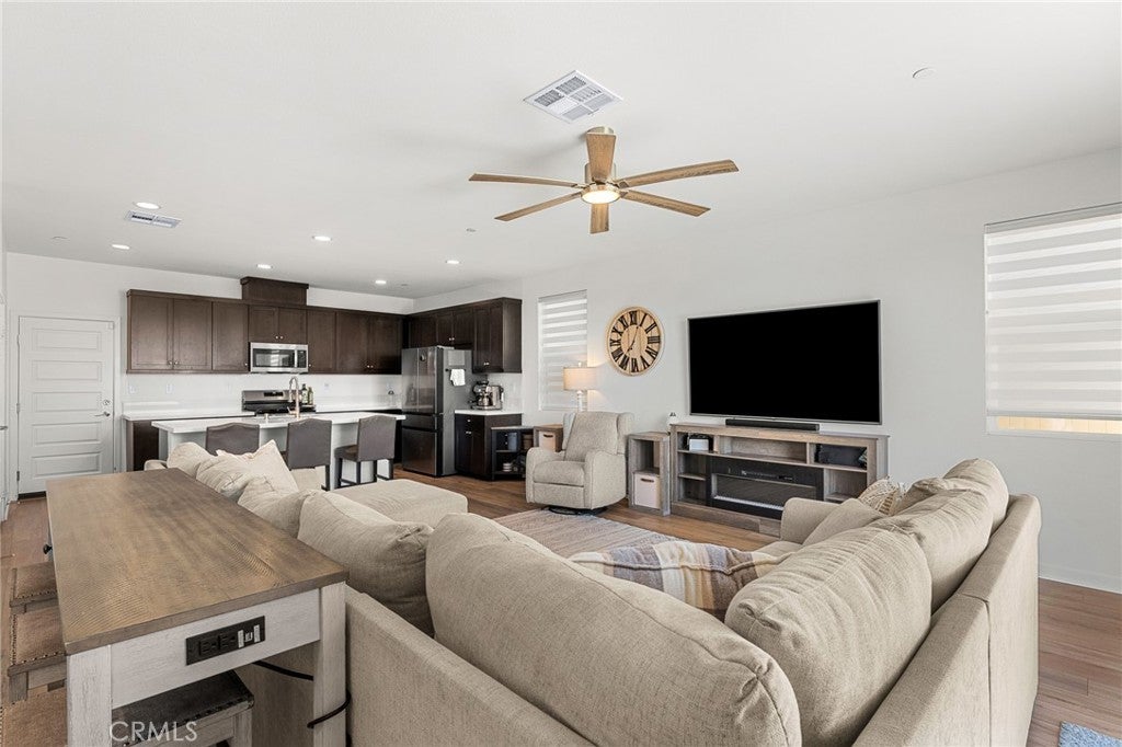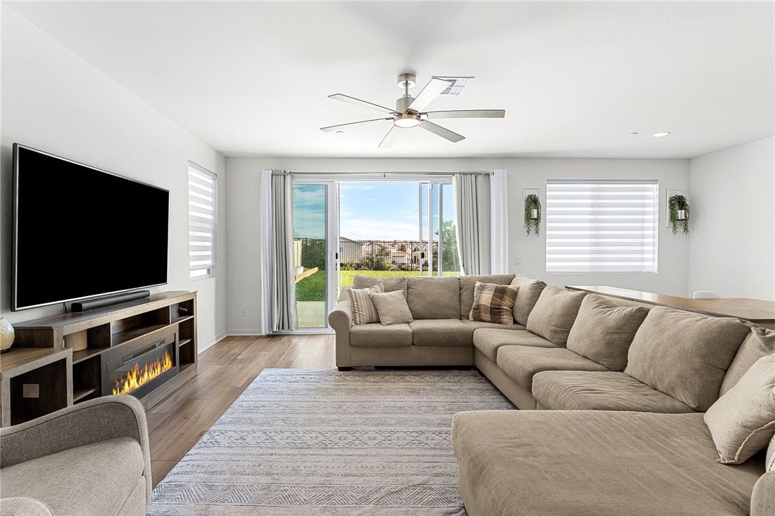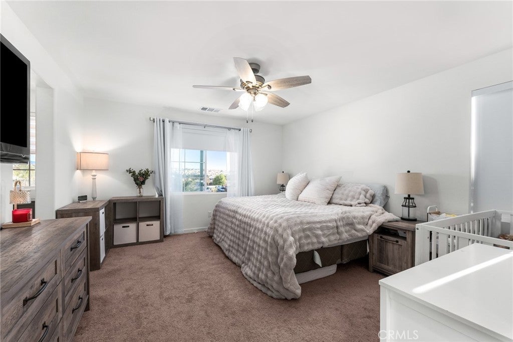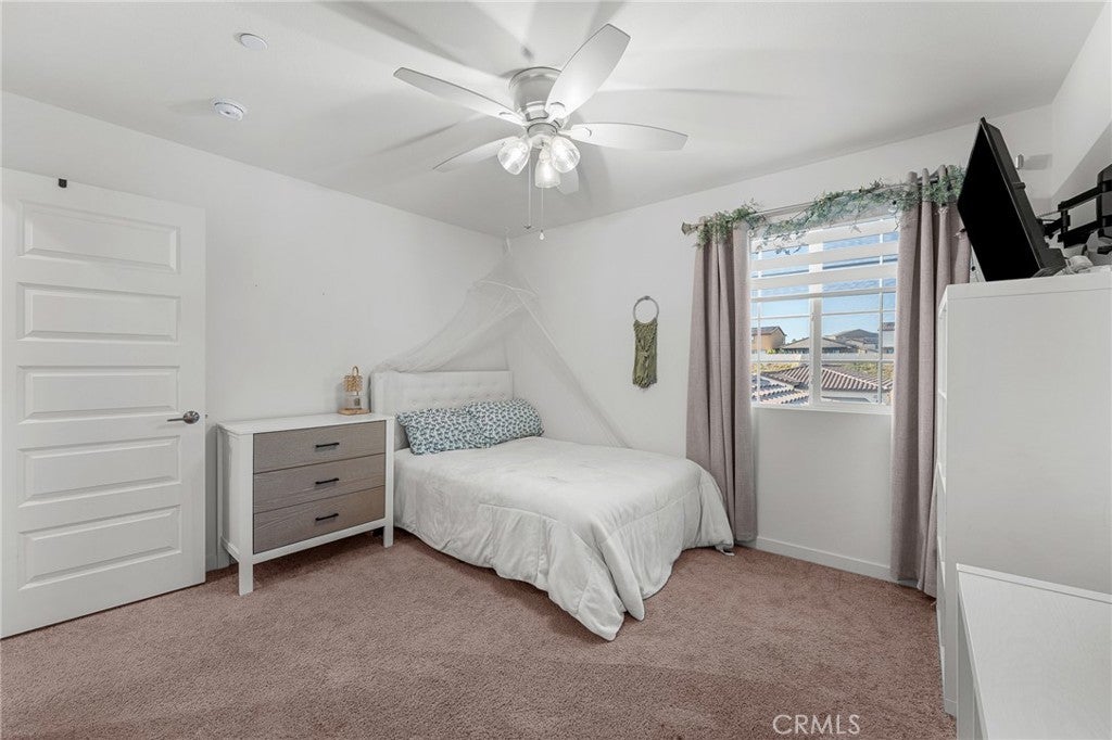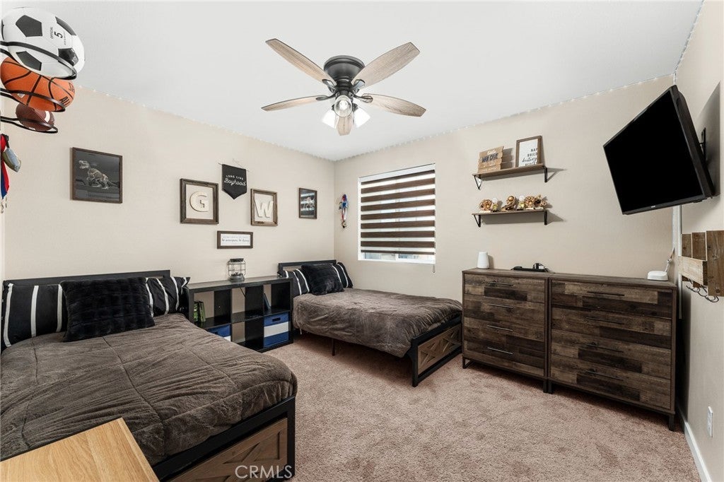 Welcome to this beautifully upgraded home situated in the gated community of Tournament Hills in Beaumont. This move in ready home features a spacious open concept layout filled with natural light, creating a warm and inviting atmosphere perfect for everyday living and entertaining. The kitchen offers a large island, ample cabinetry, and a double door pantry, seamlessly connecting to the dining and living areas. A stunning 12 foot center opening sliding glass door enhances the space, creating seamless indoor outdoor living and leading to the fully finished backyard. One bedroom and one full bathroom are conveniently located downstairs, ideal for guests, multi generational living, or a home office setup. Upstairs, you will find generously sized bedrooms, a private primary suite with a walk in closet and ensuite bathroom, and a convenient upstairs laundry room. The home offers a well designed floor plan focused on comfort and functionality. The home is equipped with solar panels, offering energy efficiency and potential cost savings. Set within the highly desirable Tournament Hills community, residents enjoy resort style amenities including a pool, spa, playground, picnic areas, barbecue areas, scenic lake, and walking paths. Conveniently close to parks, schools, shopping, and easy freeway access. Do not miss the opportunity to make this move in ready home yours.