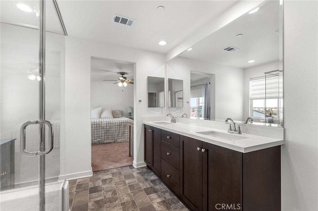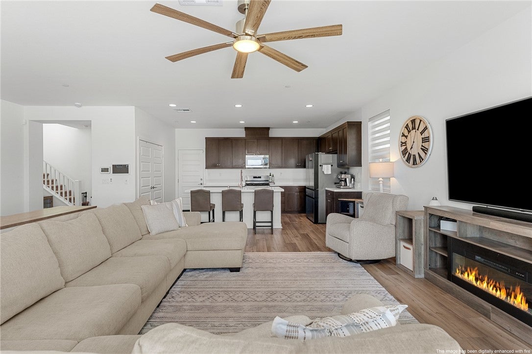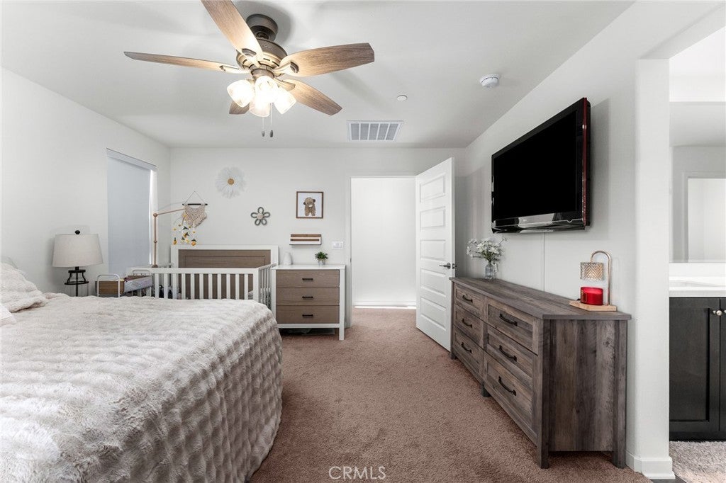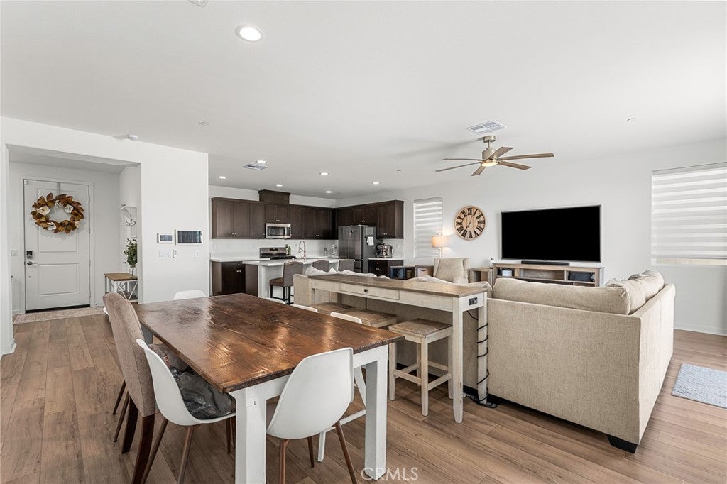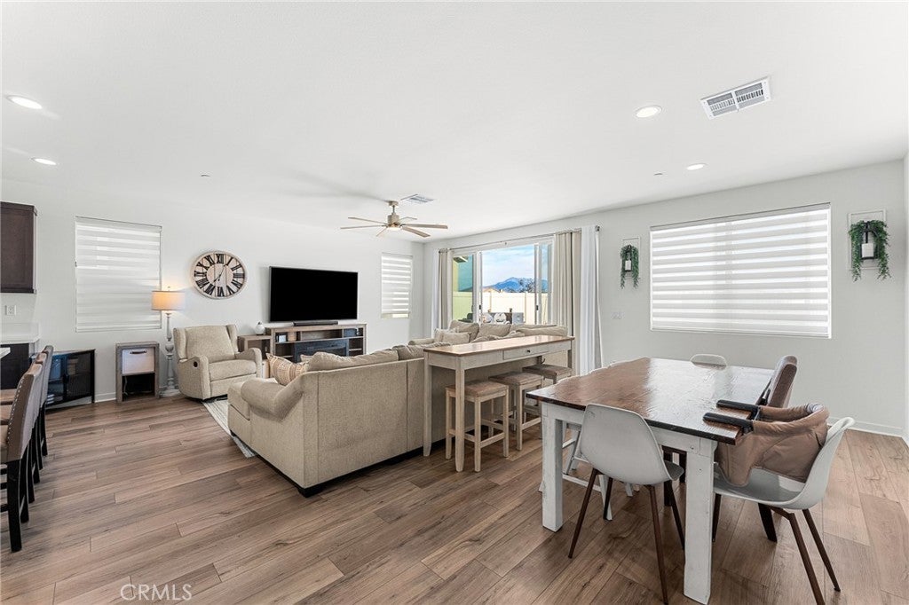 Welcome to this beautifully upgraded home situated in the gated community of Tournament Hills in Beaumont. This move in ready home features a spacious open concept layout filled with natural light, creating a warm and inviting atmosphere perfect for everyday living and entertaining. The kitchen offers a large island, ample cabinetry, and a double door pantry, seamlessly connecting to the dining and living areas. A stunning 12 foot center opening sliding glass door enhances the space, creating seamless indoor outdoor living and leading to the fully finished backyard. One bedroom and one full bathroom are conveniently located downstairs, ideal for guests, multi generational living, or a home office setup. Upstairs, you will find generously sized bedrooms, a private primary suite with a walk in closet and ensuite bathroom, and a convenient upstairs laundry room. The home offers a well designed floor plan focused on comfort and functionality. The home is equipped with solar panels, offering energy efficiency and potential cost savings. Set within the highly desirable Tournament Hills community, residents enjoy resort style amenities including a pool, spa, playground, picnic areas, barbecue areas, scenic lake, and walking paths. Conveniently close to parks, schools, shopping, and easy freeway access. Do not miss the opportunity to make this move in ready home yours.