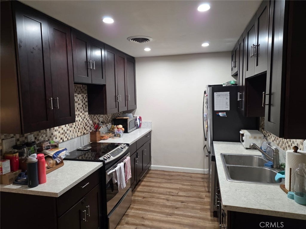 The home features a renovated kitchen and bathrooms, recessed lighting, and a Nest controlled Wi-Fi AC/Heat unit. A functional two-story floor plan that separates the living areas (downstairs) from the private bedrooms (upstairs). Being an end unit, it offers extra privacy and includes a large private patio with fruit trees. Includes two assigned covered parking spots with additional storage space above. Residents have access to swimming pools, a dog park, a clubhouse, a kids' park, and on-site laundry facilities. Located near the 55 and 5 freeways, providing easy access to the rest of Orange County. Situated within the Tustin Unified School District, which is highly regarded in the area.