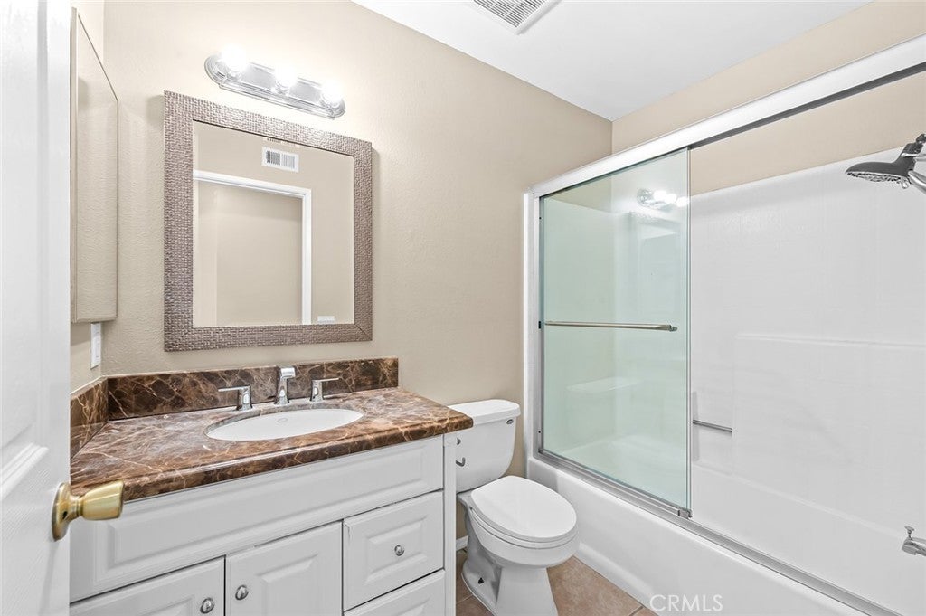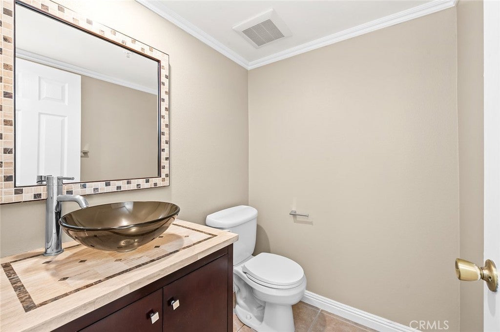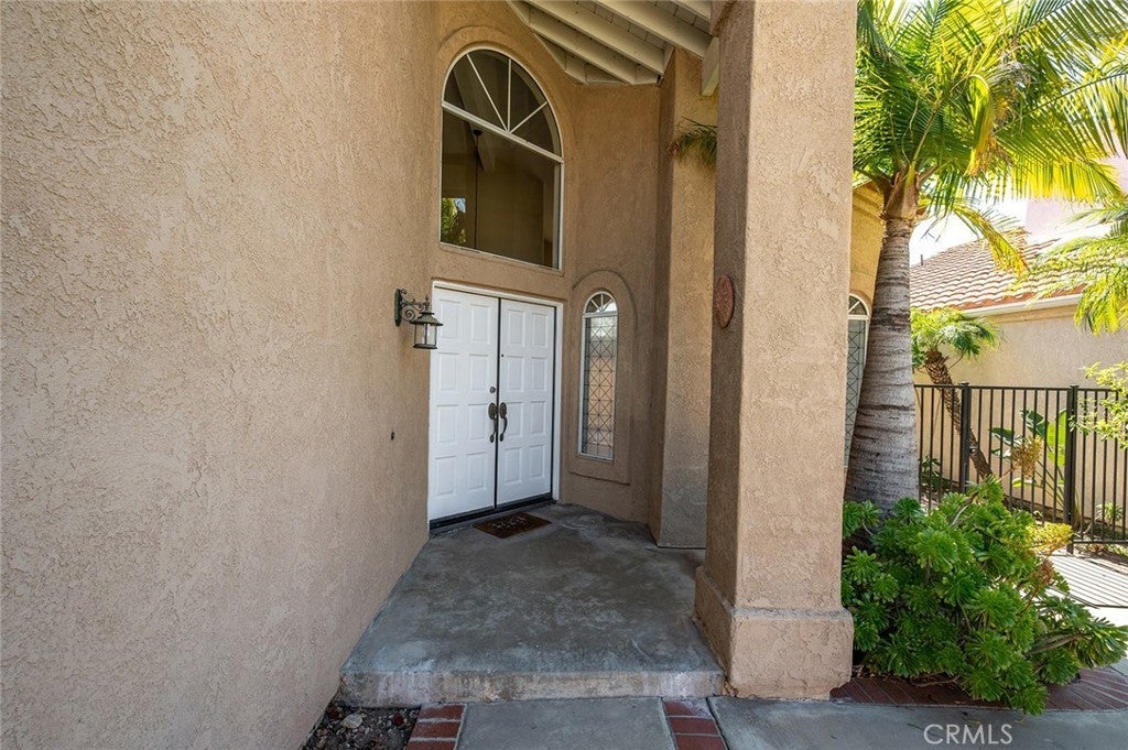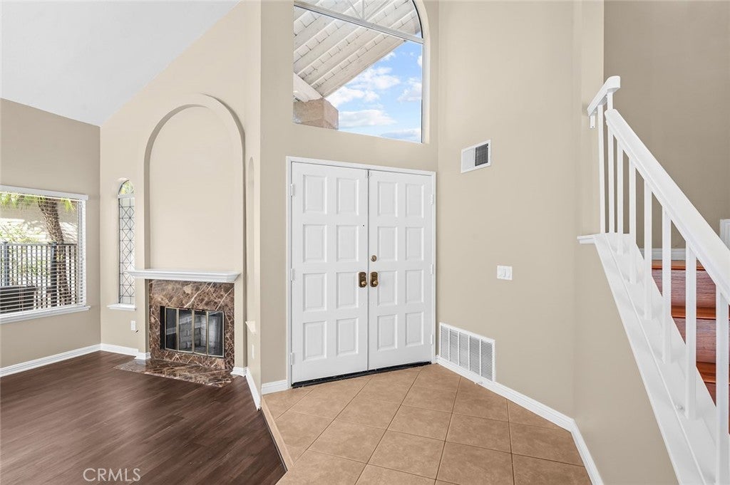 Located off the 91 Freeway, with NEW two toned interior paint, NEW quartz countertops and stainless steel sink in the kitchen, this two-story home welcomes you to a private entry courtyard/patio area. There are a total of 3 bedrooms and 2.5 baths, and the home features a formal double door entry to a step-down living/dining room combination with NEW luxury vinyl plank flooring and a cozy fireplace. The separate family room is open to the breakfast nook and kitchen with easy access to the rear yard. Downstairs is also a 1/2 bath and laundry area. Upstairs are two secondary bedrooms sharing a hall bath and the primary bedroom with ensuite bath with double sinks, separate walk-in shower & toilet and a walk-in closet. There is a combination of wood laminate, luxury vinyl plank and neutral tile flooring. The kitchen and baths were updated with beautiful travertine walls. Additional updates include crown moldings, upgraded baseboards. Low maintenance rear yard with fire pit and plenty of outdoor space for family gatherings and outdoor dining. Two car garage with built in cabinets. Located in Villa del Rio HOA with low monthly dues of $157 paid quarterly. Located in the award-winning Bryant Ranch Elementary School, Travis Ranch Middle and Yorba Linda High School! Brush Canyon Park is walking distance with picnic tables, playing fields, tennis & pickle ball courts, and basketball courts. The Santa Ana River trail is great for walking, running, and cycling!
