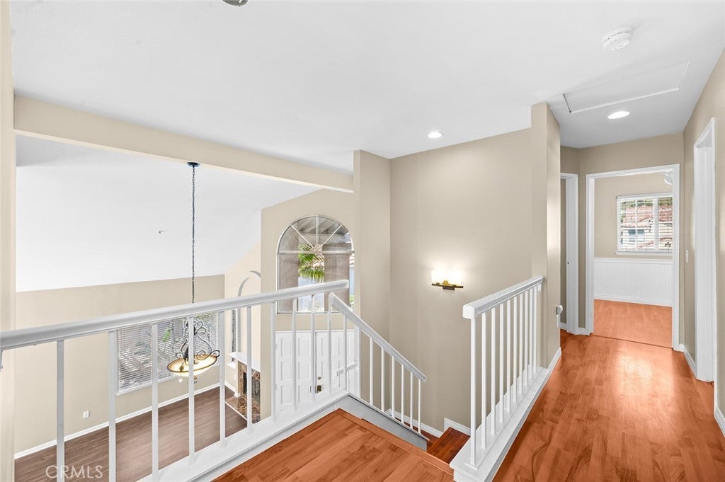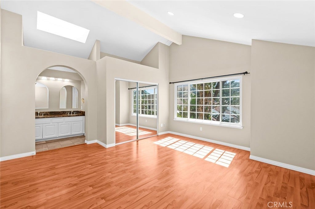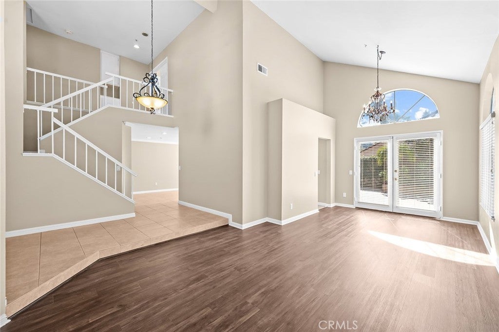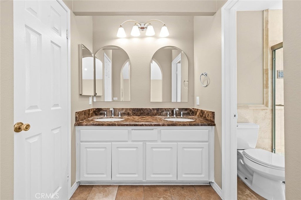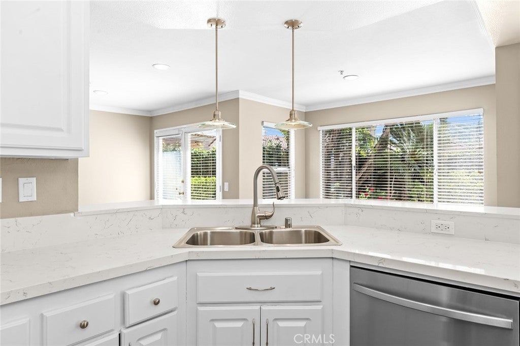 Located off the 91 Freeway, with NEW two toned interior paint, NEW quartz countertops and stainless steel sink in the kitchen, this two-story home welcomes you to a private entry courtyard/patio area. There are a total of 3 bedrooms and 2.5 baths, and the home features a formal double door entry to a step-down living/dining room combination with NEW luxury vinyl plank flooring and a cozy fireplace. The separate family room is open to the breakfast nook and kitchen with easy access to the rear yard. Downstairs is also a 1/2 bath and laundry area. Upstairs are two secondary bedrooms sharing a hall bath and the primary bedroom with ensuite bath with double sinks, separate walk-in shower & toilet and a walk-in closet. There is a combination of wood laminate, luxury vinyl plank and neutral tile flooring. The kitchen and baths were updated with beautiful travertine walls. Additional updates include crown moldings, upgraded baseboards. Low maintenance rear yard with fire pit and plenty of outdoor space for family gatherings and outdoor dining. Two car garage with built in cabinets. Located in Villa del Rio HOA with low monthly dues of $157 paid quarterly. Located in the award-winning Bryant Ranch Elementary School, Travis Ranch Middle and Yorba Linda High School! Brush Canyon Park is walking distance with picnic tables, playing fields, tennis & pickle ball courts, and basketball courts. The Santa Ana River trail is great for walking, running, and cycling!