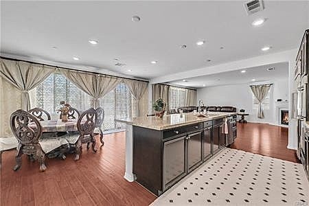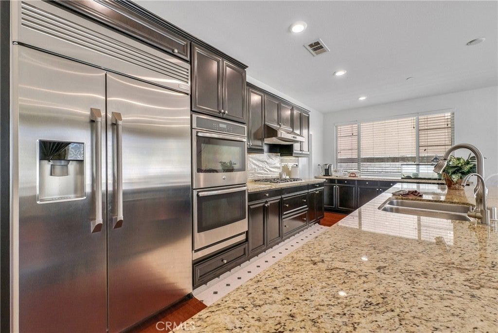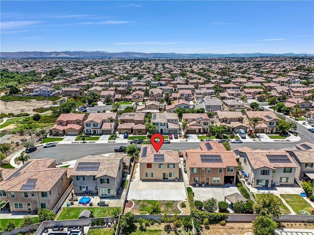 Experience luxury and tranquility in this sophisticated residence located within the prestigious Estancia Community of Eastvale. Built in 2015, this home is perfectly positioned at the secluded end of a quiet cul-de-sac, offering an elevated sense of privacy and curb appeal. Expansive Living: An open-concept floor plan spanning two stories of light-filled space. Flexible Layout: Features 4 spacious bedrooms, a massive upstairs loft, and a versatile downstairs bonus room/office (easily convertible into a 5th bedroom). Refined Finishes: Sleek laminate wood flooring flows through the main level, complemented by recessed lighting and custom drapery. Chef’s Dream: A massive granite center island serves as the heart of the home. Premium Appliances: Fully equipped with built-in stainless steel appliances, including a double oven and integrated refrigerator. Luxury Details: Designer full-height granite backsplash, extensive cabinetry, and a generous walk-in pantry for effortless organization. A sprawling master sanctuary featuring a private sitting retreat. Spa-Like Bath: Dual vanities, a deep soaking tub, and a separate glass-enclosed shower. An oversized walk-in closet designed for the fashion enthusiast. Energy Efficiency: Equipped with a leased solar system to drastically reduce utility costs. Modern Comfort: Dual-zone AC, a tankless water heater, and energy-efficient double-pane windows. Outdoor Living: A 7,405 sq. ft. lot featuring a low-maintenance backyard with professional concrete work and secure block-wall fencing—perfect for entertaining. Top-Tier Education: Walking distance to award-winning schools including Eleanor Roosevelt High. Ultimate Convenience: Moments away from local parks, premier shopping centers, and central access to the 15, 60, 10, and 91 freeways.