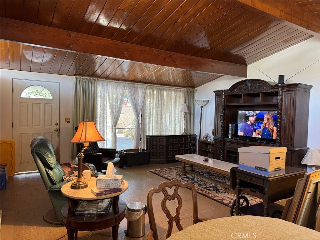 Attention Investors and Handy-Homeowners looking for good bones. This may be just what you’re looking for. Original Mid-Century Modern home with the same owners since 1964 sitting on a large cul-de-sac lot. You enter into the open floor plan which encompasses the Living Room, Dining area, and Kitchen, all under the vaulted ceiling with exposed wood beams and tongue-and-grooved boards which still retain their natural finish. Down the hallway you’ll find the Primary Bedroom and attached Bathroom featuring the original pedestal sink and a shower stall with the original tile. There are two additional bedrooms and another bathroom. The expansive backyard is a raw canvas, possibly large enough to add a pool and an ADU. The two-car garage and wide driveway are suitable for parking several cars with room for your RV as well. The house has had some deferred maintenance, most likely going to need a roof and some fascia board repair but the bones are good and the cul-de-sac location and large lot are worth the effort.