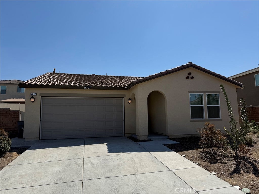 Beautiful Single-Story Spanish-Style KB Home with Modern Upgrades! Welcome to this beautifully designed single-story Spanish-style home offering an open and inviting floor plan. The entrance leads into a spacious great room that seamlessly connects the living, dining, and kitchen areas—perfect for both everyday living and entertaining. This home features numerous upgrades, including 9-foot ceilings, elegant quartz kitchen countertops, and durable vinyl plank flooring throughout the main living areas. The kitchen is a true centerpiece, complete with a large island. The primary suite offers a private retreat with a generous walk-in closet and an en-suite bathroom featuring dual sinks, an added linen closet, and a walk-in shower. Step outside to a fully landscaped front yard designed with drought-tolerant materials and equipped with an automatic drip irrigation system, providing both beauty and efficiency. The backyard patio has new a newly installed covered patio with fans and lights. The side yard has been fully hard-scaped with a built-in walk way with pavers and gravel which lead to a shed. The front yard driveway has also been extended for ample parking. This home is Energy Star® rated, and solar is available for purchase or lease to maximize energy savings. Conveniently situated near Loma Linda University Medical Center, top-rated schools, and University of California, Riverside. This home combines style, efficiency, and location—an exceptional opportunity you don’t want to miss.