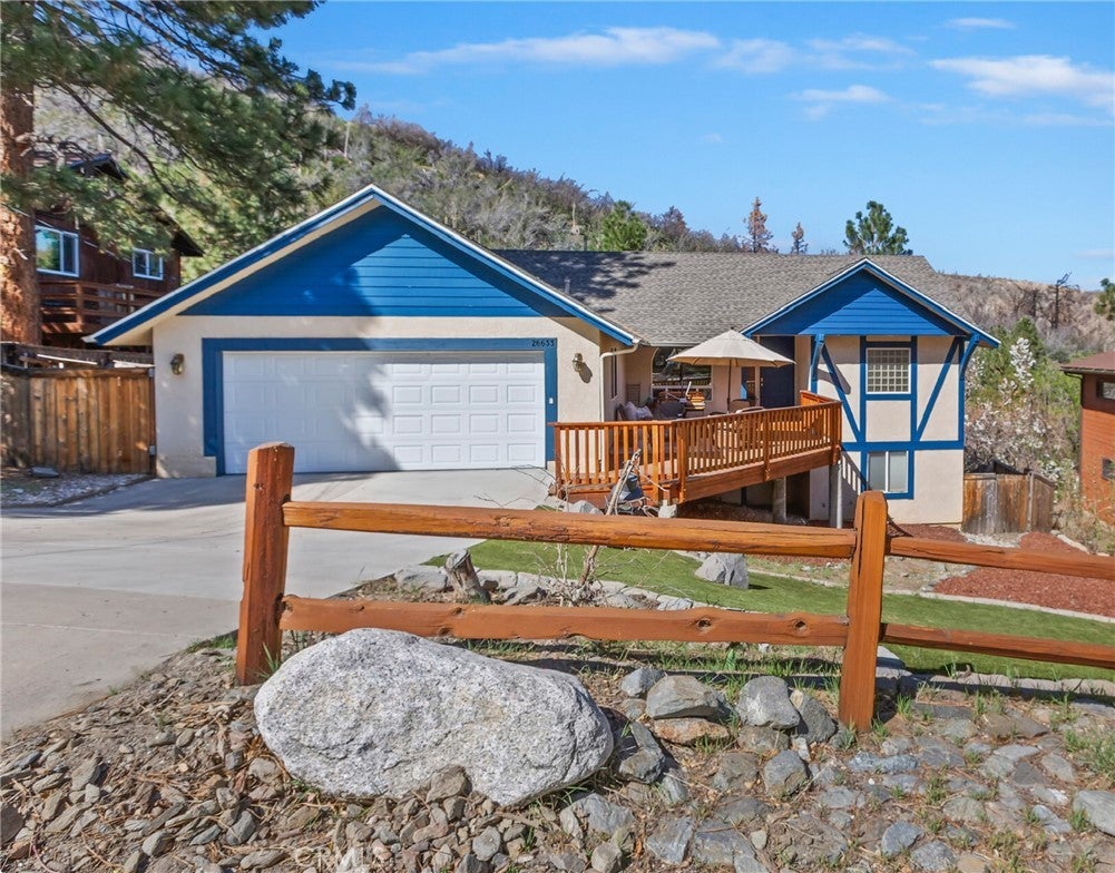 Nestled in the charming mountain town of Wrightwood, this uniquely beautiful 4 bedroom, 3 bathroom home offers the perfect blend of comfort, space and outdoor lifestyle. Built in 1999, this home features 2,423 sq ft. of living space situated on a generous 9804 sq. ft. lot. A large nicely appointed upgraded kitchen is designed for both cooking and entertaining, the property boasts three outdoor decks to enjoy the scenery and serenity of living in the mountains. The large entry deck is ideal for enjoying fresh mountain air, a beautiful view of the trees and all round peaceful surroundings. The back of the home offers two separate decks for 2 additional views, downstairs is a patio. Inside you'll find a well-appointed layout with ample living space, cozy areas for gathering and plenty of natural light throughout. The 2 car attached garage provides convenient easy access directly into the home with ample storage. An additional large storage room is located on the lower floor. You'll enjoy 3 Different living spaces plus a pool table room for fun times spent at home. Located just minutes from local ski resorts offering a wide range of year round mountain activities including Skiing, hiking, camping, snow boarding and so much more. The welcoming town of Wrightwood offers a cozy, small town feel with a variety of dining options and frequent live music, adding to its unique charm. Whether you're looking for a full time residence, vacation getaway or investment opportunity, this mountain retreat is a must see.
