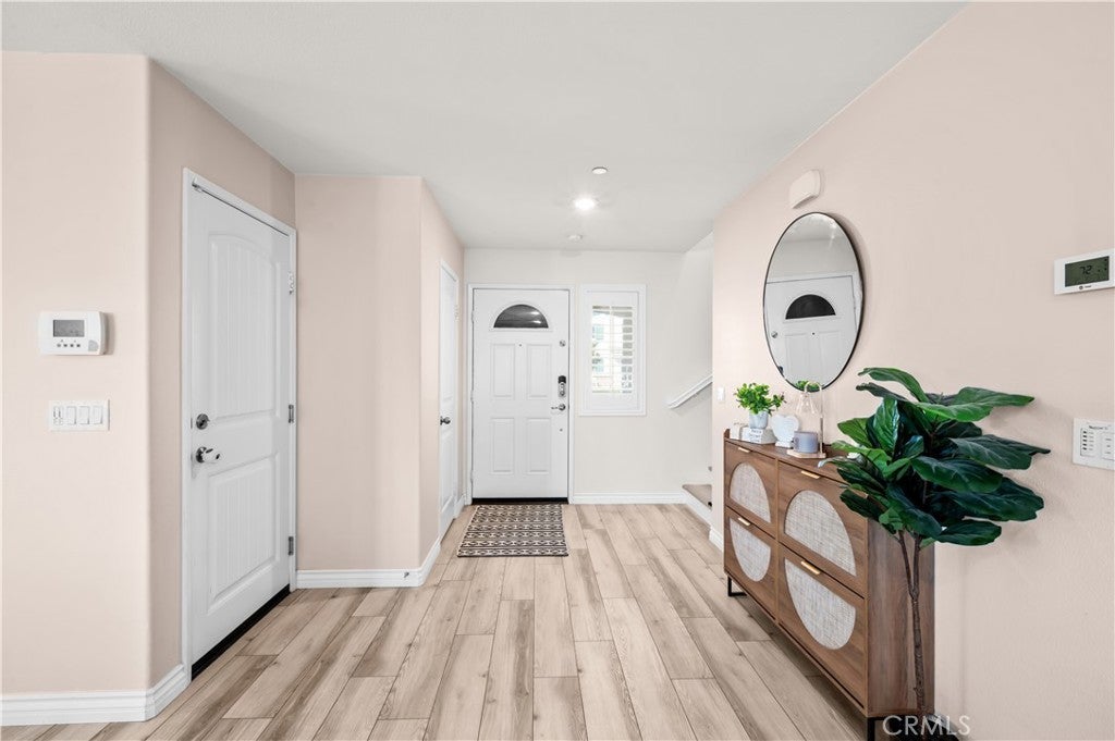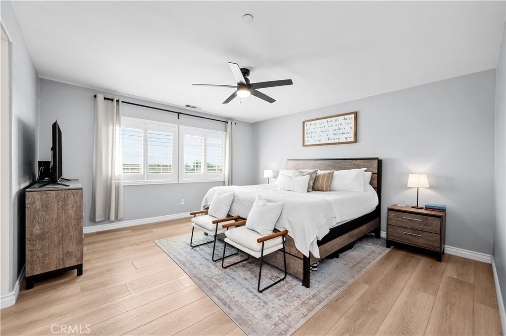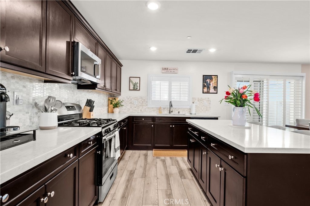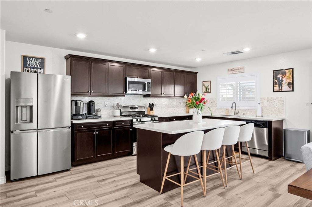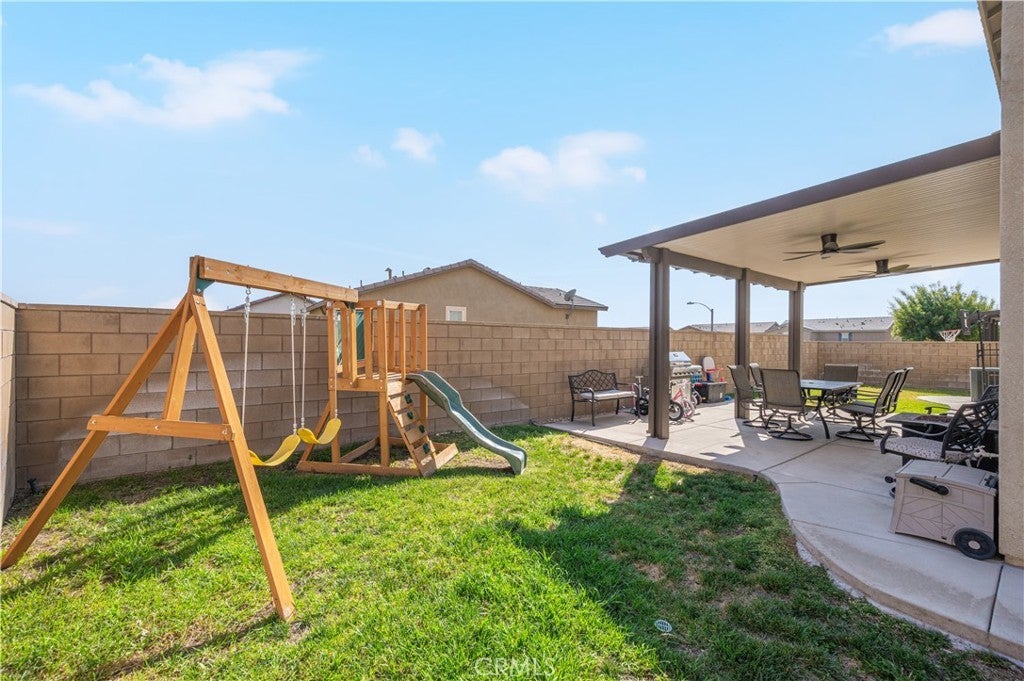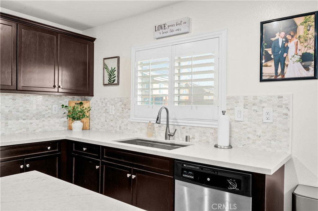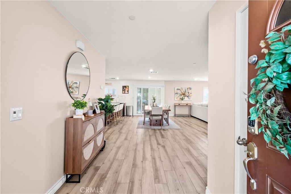 Welcome to this beautifully upgraded 3-bedroom, 2.5-bath home built in 2017, where modern design meets everyday comfort. From the moment you step inside, you’ll notice the stylish finishes and thoughtful upgrades throughout. The heart of the home is the stunning kitchen, featuring sleek quartz countertops, a designer backsplash, and an ideal layout for both entertaining and daily living. Elegant luxury vinyl flooring runs throughout, complemented by upgraded 5-inch baseboards for a clean, modern look. Windows finished with classic boxwood shutters bring in natural light while adding timeless charm. Step outside to your private backyard retreat, complete with a covered Alumawood patio, LED lighting, and ceiling fans—perfect for year-round entertaining. A gated dog run with low-maintenance turf makes this home as functional as it is inviting. Additional highlights include solar panels, a whole house fan for energy efficiency, and a high-end security screen door designed for superior durability and peace of mind. The garage is equipped with convenient overhead storage racks, providing ample space to keep everything organized. Modern, efficient, and move-in ready—this home offers the perfect blend of comfort, style, and practicality. Don’t miss this incredible opportunity!