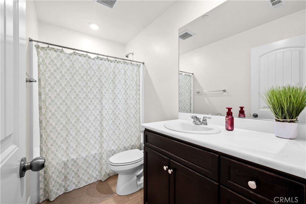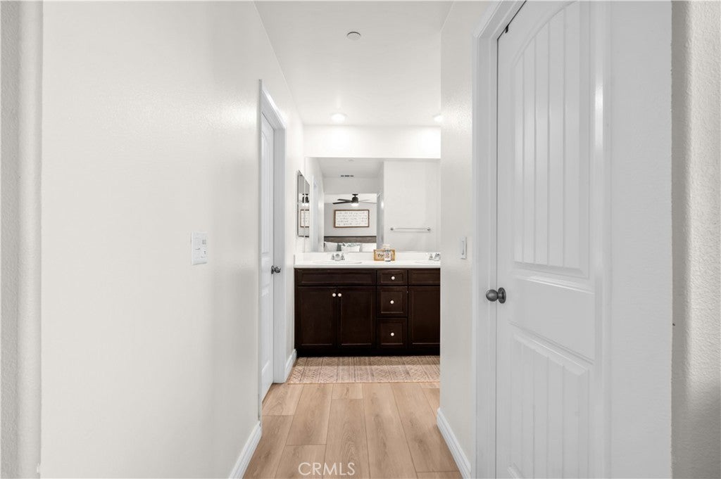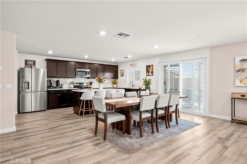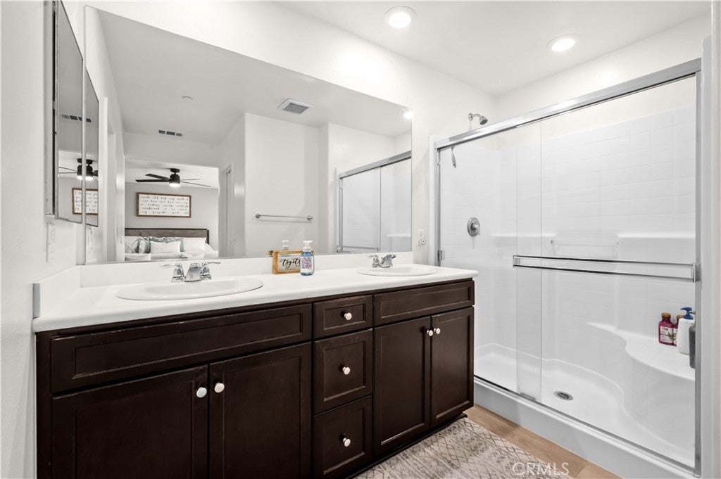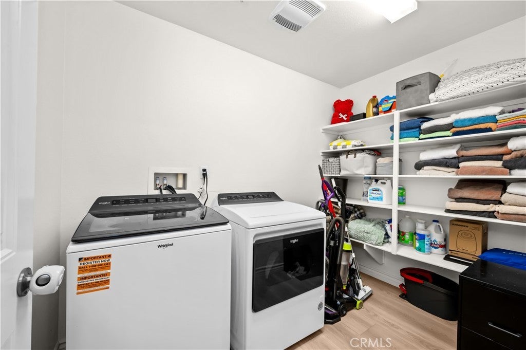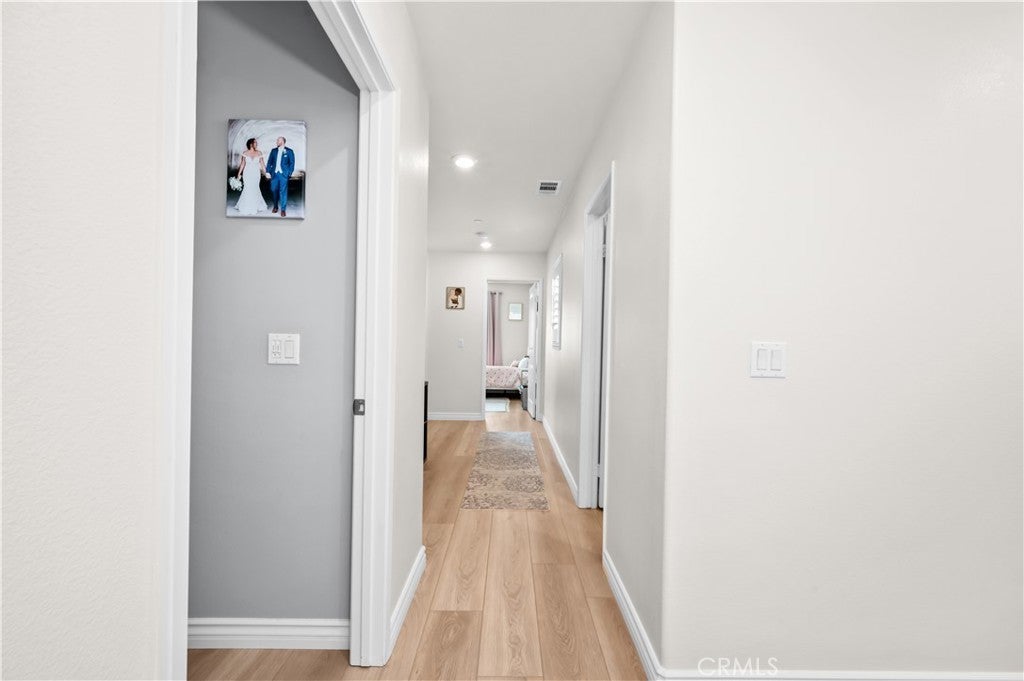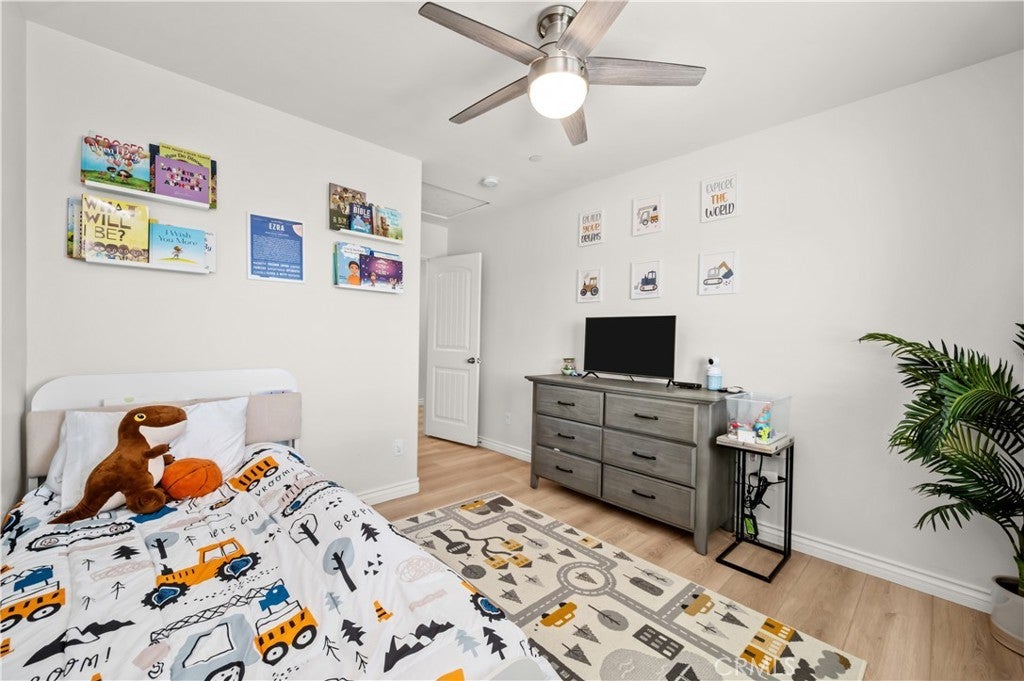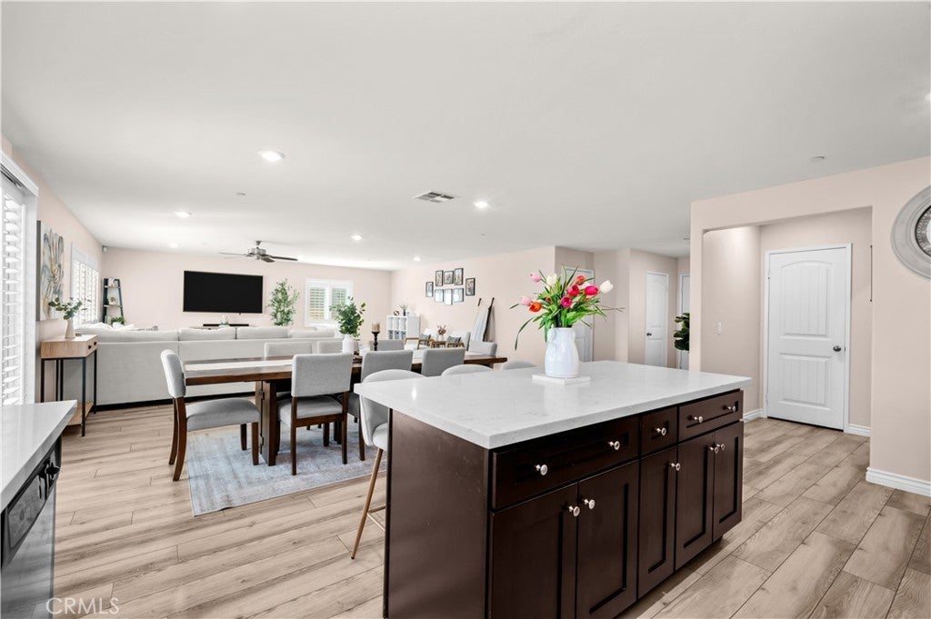 Welcome to this beautifully upgraded 3-bedroom, 2.5-bath home built in 2017, where modern design meets everyday comfort. From the moment you step inside, you’ll notice the stylish finishes and thoughtful upgrades throughout. The heart of the home is the stunning kitchen, featuring sleek quartz countertops, a designer backsplash, and an ideal layout for both entertaining and daily living. Elegant luxury vinyl flooring runs throughout, complemented by upgraded 5-inch baseboards for a clean, modern look. Windows finished with classic boxwood shutters bring in natural light while adding timeless charm. Step outside to your private backyard retreat, complete with a covered Alumawood patio, LED lighting, and ceiling fans—perfect for year-round entertaining. A gated dog run with low-maintenance turf makes this home as functional as it is inviting. Additional highlights include solar panels, a whole house fan for energy efficiency, and a high-end security screen door designed for superior durability and peace of mind. The garage is equipped with convenient overhead storage racks, providing ample space to keep everything organized. Modern, efficient, and move-in ready—this home offers the perfect blend of comfort, style, and practicality. Don’t miss this incredible opportunity!