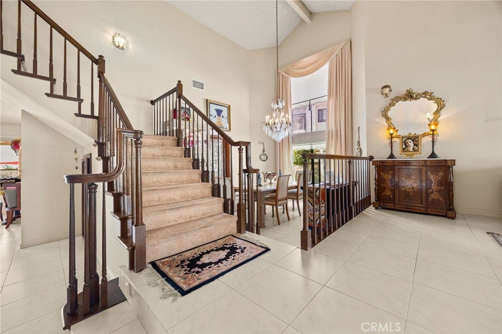 Don’t miss this beautiful property located in a desirable area of North Upland, centrally situated near the 210 freeway, schools, and shopping centers. This property offers 4 bedrooms and 3 full baths. 3 bedrooms and 2 baths are located in the 2nd level, the 4th bedroom has a custom fold Murphy bed. This 4th bedroom can be used as an office or guest room, which is located in the 1st floor with a third full bath. The master bedroom is located in the 2nd floor, which has a full bath /shower and a big vanity with dual sink and a walk- in closet. The other 2 bedrooms share a full jack and jill bathroom. This home holds a beautiful staircase overlooking the formal dining area with high ceilings and a spectacular chandelier. The formal living room is very spacious and offers a lot of daylight with big windows and a nice kitchen with plenty of cabinets, and an island overseeing the family room and the cozy fireplace. The back yard is a paradise to entertain all your guests, the pool is summer- ready with a big patio that is great for bbqs and parties with ceiling fans. The backyard contains plenty of fruit trees as well as R/V parking which is more than enough room for all your toys. This property holds a 3- car garage. This garage is currently used as an office.