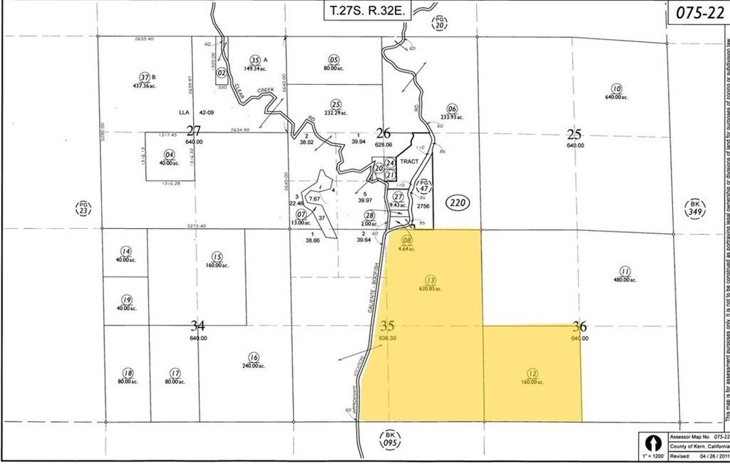 This expansive 1,113-acre property is located in the scenic western Sierra region, just six miles from Lake Isabella and approximately two and a half hours from Los Angeles. The land features a diverse topography that includes valleys, meadows, wooded areas, and elevations reaching over 4,000 feet, creating a unique and visually striking setting. The property consists of two legal parcels zoned A-1 (Residential/Agricultural), offering significant development potential. Based on county requirements of 2.5 acres per single-family home, the site could be subdivided into approximately 445 parcels, subject to compliance with local subdivision regulations and tract mapping. This presents a substantial opportunity for developers or investors seeking large-scale residential or mixed-use projects. The site includes multiple water wells and substantial water storage capacity, supporting agricultural or residential development. With its proximity to Lake Isabella, the property offers access to outdoor recreation, while nearby highways provide connectivity to Bakersfield and the greater Southern California region