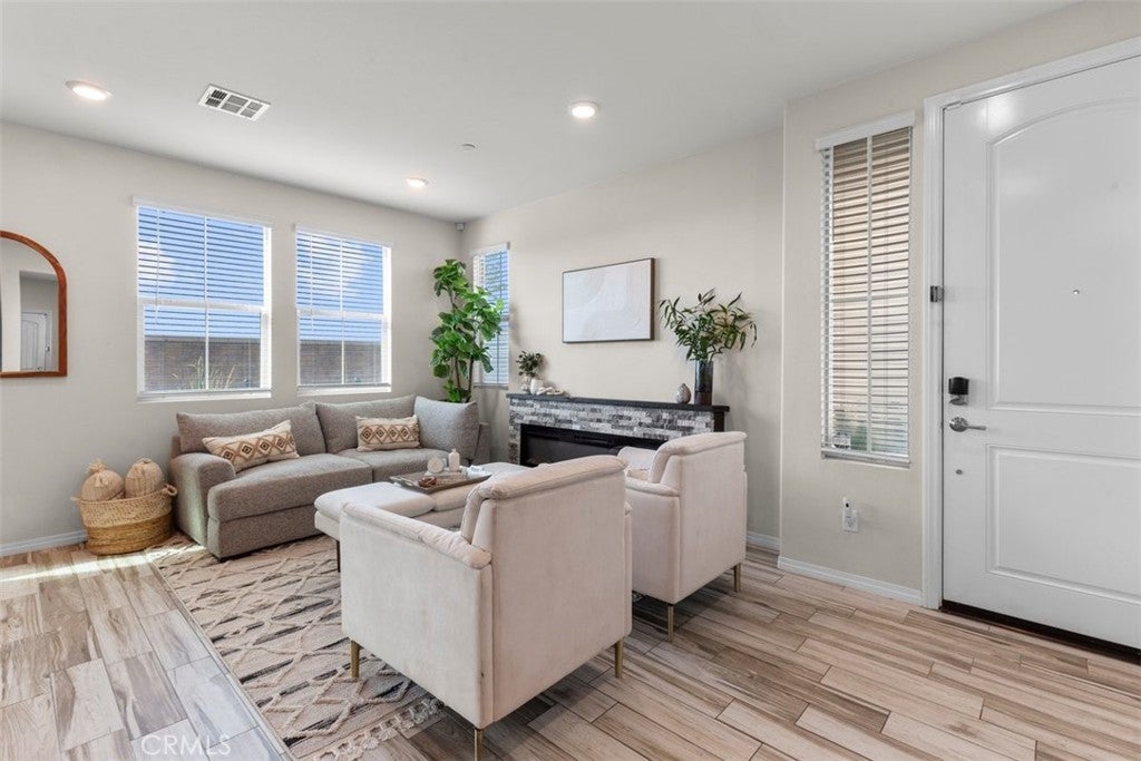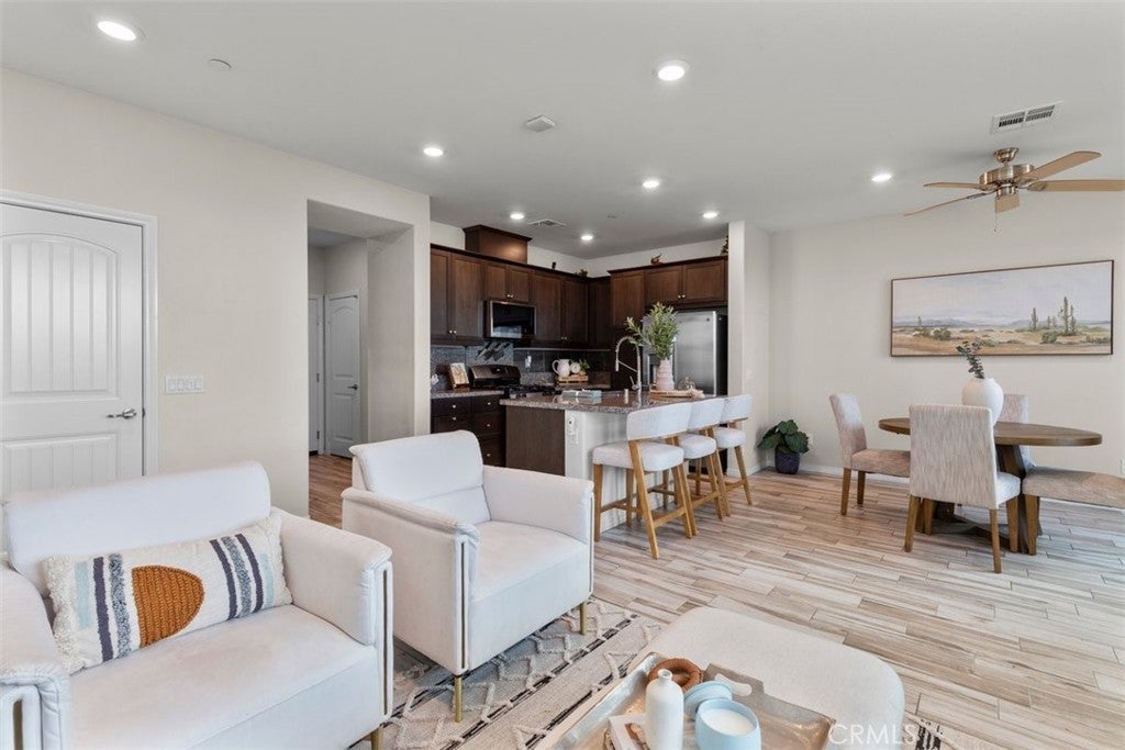 Not all end units are created equal. This one in Gabion Ranch comes with natural light on multiple sides, Inland Empire views you will wake up to every morning, and easy access to the 210 when the week calls for it. The main floor is where mornings happen at the island, where the fireplace makes a quiet night in feel intentional, where the layout opens up wide enough to have people over without anyone feeling crowded, and where the sliding door off the dining area invites you outside when the weather is right. The patio is your spot to fire up the grill and actually decompress. This is a home that works for a quiet Tuesday just as well as it works for a full house on a Saturday. Upstairs, the loft is ready for whatever your life needs it to be right now. The bedrooms have room to actually breathe. And the primary suite delivers on every bit of the view. The Inland Empire is stretched out in front of you before the day even starts, and when it ends, the ensuite garden tub is waiting. The walk-in closet fits your life, not just your clothes. Multiple pools and beautiful parks come with the community, so the lifestyle does not stop at your front door. Some homes you tour and forget. This one stays with you.