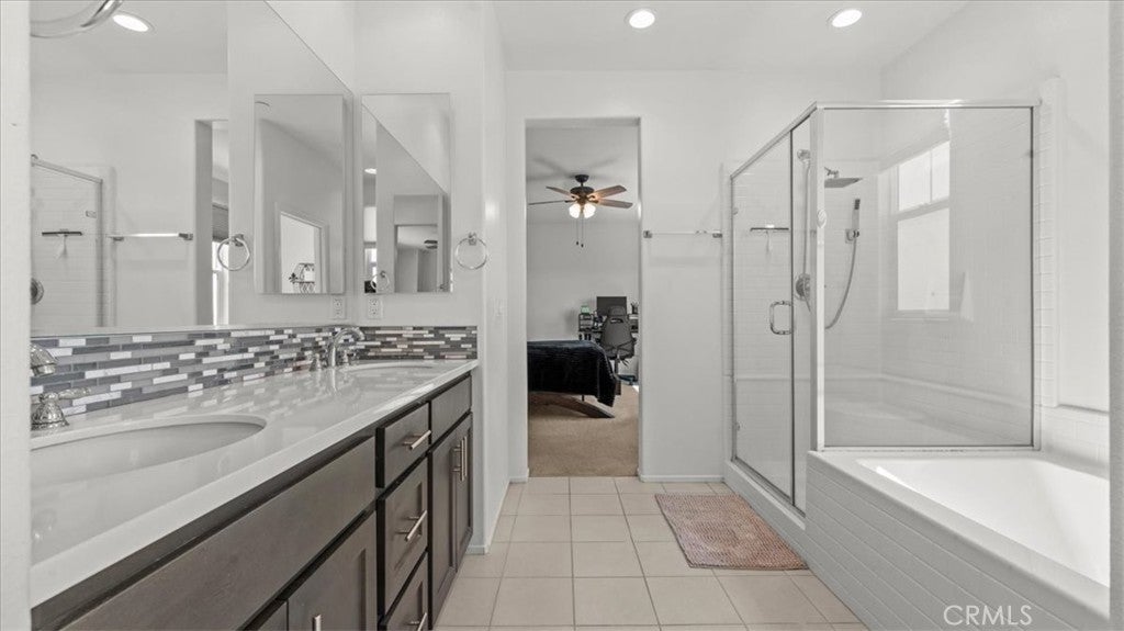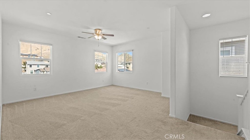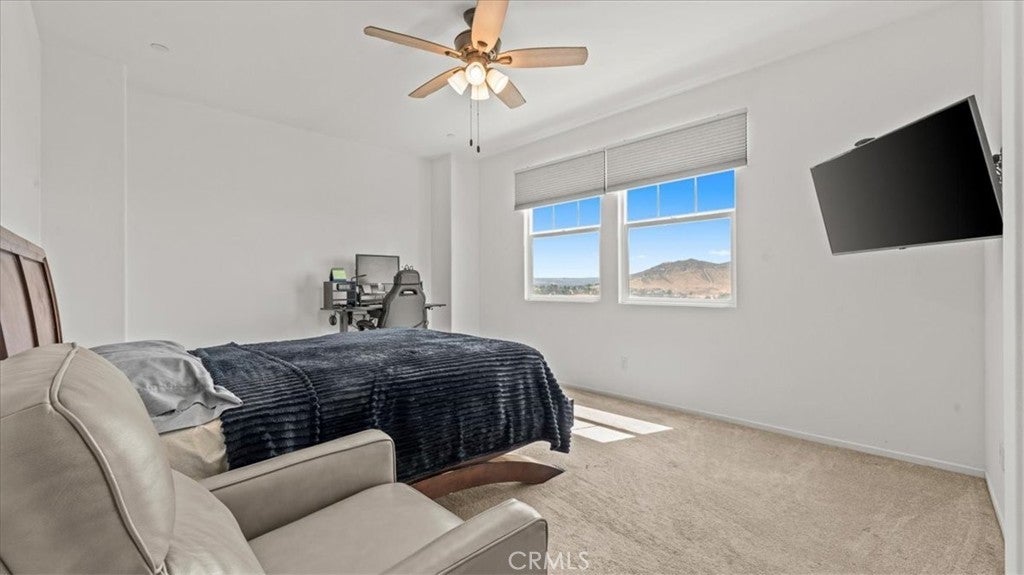 Built by Far West Industries in 2018 this 4 bedroom and 3.5 bath home is located in the highly sought after gated community of Granite Ridge with breathtaking canyon views of Jurupa Valley. Thoughtfully upgraded, the home blends modern finishes with functional design, highlighted by a light-filled, open layout, high ceilings, and recessed lighting. The main level showcases upgraded flooring and a seamless flow from the living area into a beautifully upgraded kitchen with granite countertops, stainless steel appliances, and a walk-in pantry. Offering exceptional versatility, the home includes two primary suites. On the second level, you’ll find the first of 2 master bedrooms sharing a dual-vanity bath, along with a spacious primary suite complete with an upgraded bathroom featuring dual sinks, a soaking tub, walk-in shower, and spacious walk-in closet. The top level functions as a private retreat, featuring a second master suite with its own full bath and an adjoining loft—ideal for a home office, gym, or lounge area. Upgrades extend throughout the home plus energy-efficient features such as a tankless water heater, whole house fan and water filtration system, and Sunrun Solar lease comes with Tesla battery to increase efficiency of power production, all to help support everyday efficiency. Outdoor living is equally impressive, with a finished backyard that is designed for easy maintenance and entertaining. The property also includes a 2-car attached garage with direct access plus multiple balconies. Located in a desirable community with sweeping canyon views, this home offers convenient access to major freeways, nearby parks, shopping, dining, and local attractions—providing a well-balanced blend of comfort, privacy, and accessibility, just minutes away from The Cove Waterpark, Oak Quarry Golf Club, Sunnyslope Elementary and Patriot High School plus the newly opened The Shops anchored by Target.