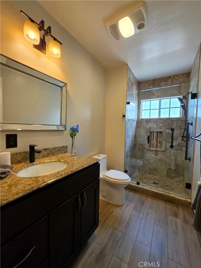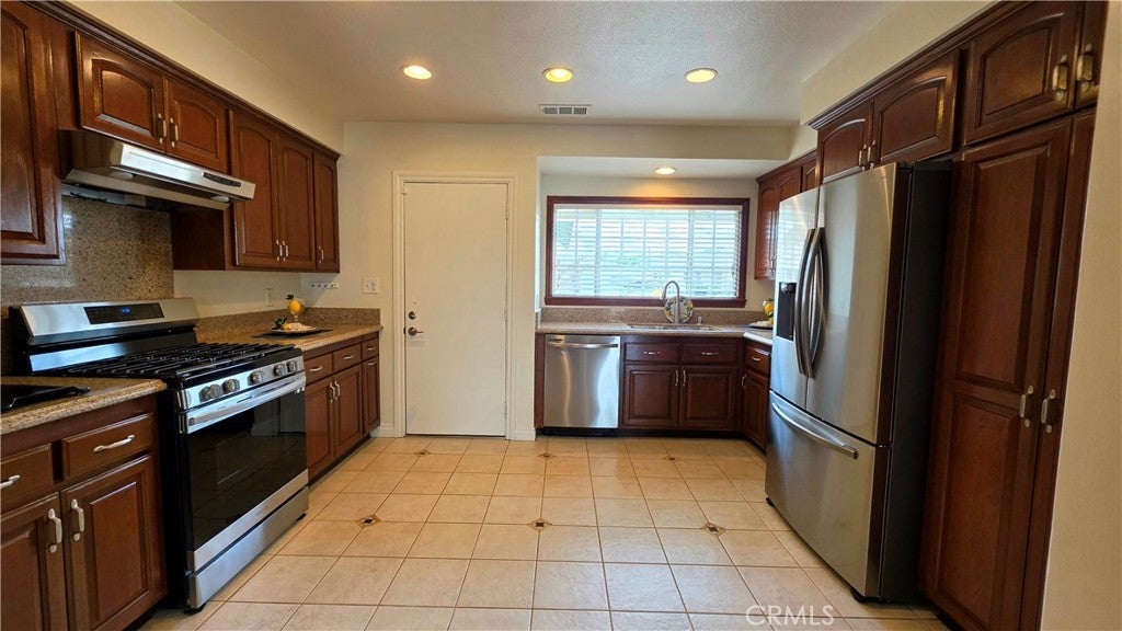 Fantastic Single Level Home with Double Attached Garage Curved Concrete Driveway with Plenty of Off Street Parking. 4 Bedrooms 1.75 Baths (Both Remodeled with Newer Decor Tile Vanity Cabinets Granite Counters Glass Shower Enclosures) Spacious Kitchen with Natural Wood Cabinets - Stainless Steel Sinks Built Stove and Hood - Stainless Steel Refrigerator and Dishwasher - Granite Counter - Beautifully Refinished Hardwood Flooring in Living Room and Bedrooms Brick Fireplace in Living Room Private Backyard with Concrete Patio Built in Bar B Que Hearth in Fireplace System Sectioned Laundry area off with private entry from Garage to Home. Beautiful Landscaped Front Yard. Newer HVAC and Heater System. Newer Canned Lighting in Bedrooms Living Room and Kitchen