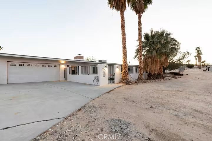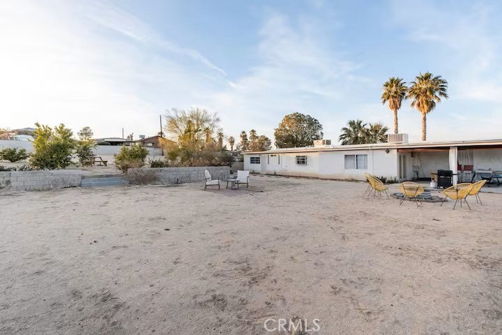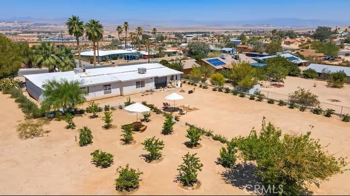 If you are looking for a turnkey property, your dream home awaits on a premier street in 29 Palms. Upon entering, you will immediately notice the grand entryway and high ceilings. The open-floor concept seamlessly connects the kitchen, living, and dining areas, making it perfect for gatherings and entertaining. The home features three spacious, light-filled bedrooms and two bathrooms. Notably, two of the rooms are primary suites, one of which includes a private entrance. The backyard is designed for relaxation and entertainment, featuring a large covered patio, a fire pit, and a spa. The grounds include an established orchard with six navel orange trees, five lime trees, four lemon trees, and two Palo Verde trees, all surrounded by jasmine and Hollywood hedges and maintained by an irrigation system. There is also ample room to build an addition or add a pool and jacuzzi. For those interested in investment opportunities, the property includes a Short-Term Rental (STR) permit, making it fully legal and ready for guests. FUN FACT: The house was built and owned by Academy Award-winning Hollywood composer Allie Wrubel, known for "Zip-A-Dee-Doo-Dah."