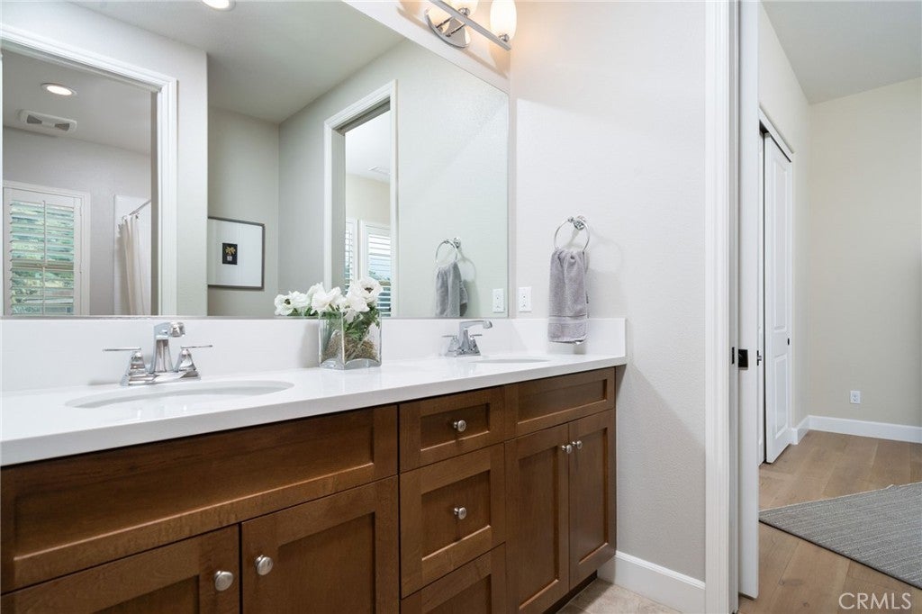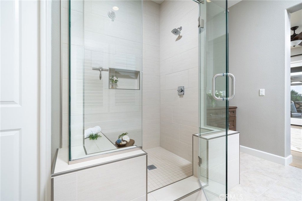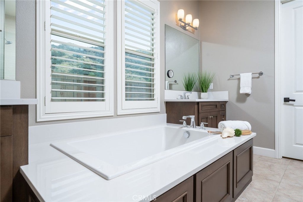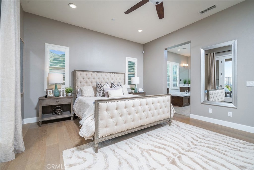 Panoramic city lights and mountain views await in this exceptional Aster Heights home, situated at the end of a quiet cul-de-sac in the desirable Rosedale community. This stunning residence offers 5,147 square feet of refined living space on an expansive 11,099 SF premium view lot, capturing breathtaking vistas of downtown Los Angeles and the San Gabriel foothills. Upon entry, you are greeted by a dramatic 21-foot foyer ceiling, an elegant staircase, and an abundance of natural light. The formal living room showcases a beautiful fireplace and soaring ceilings that frame the scenic surroundings. The expansive great room seamlessly blends indoor and outdoor living through bi-fold sliding doors that open to the backyard oasis. The gourmet kitchen is a chef’s dream, with a large center island, quartz countertops, Kitchen Aid stainless steel appliances, an oversized walk-in pantry with potential for a secondary prep kitchen, and a spacious formal dining area. The main level offers a highly sought-after secondary primary suite complete with a luxurious bathroom, walk-in closet, and a private covered patio, perfect for multi-generational living or guest accommodations. The main level also offers a mudroom, powder room, and direct access to the oversized garage with custom cabinetry and storage. Upstairs, enjoy a versatile loft and a spacious bonus room with access to a private balcony. The luxurious primary suite offers its own private balcony, walk-in closet, and a spa-inspired bathroom with dual vanities, soaking tub, and oversized shower. Additional upstairs features include an en-suite bedroom, two additional bedrooms connected by a Jack-and-Jill bathroom, and a well-appointed laundry room with ample storage and sink. Upgrades include new upstairs hardwood flooring, fully paid solar, dual Tesla Powerwalls, two tankless water heaters, a whole-house automation system, and an integrated audio system for both indoor and outdoor entertaining. Step outside to your private backyard retreat, complete with a sparkling pool and spa with rock waterfall, built-in BBQ with refrigerator and sink, covered patio, spacious deck, and a pergola with ambient lighting, all set against stunning panoramic views. The Rosedale community offers resort-style amenities including a junior Olympic-size pool and spa, fitness center, recreation center, BBQs, basketball court, scenic walking trails, & parks. Conveniently located near the Gold Line, Citrus College,& Azusa Pacific University.