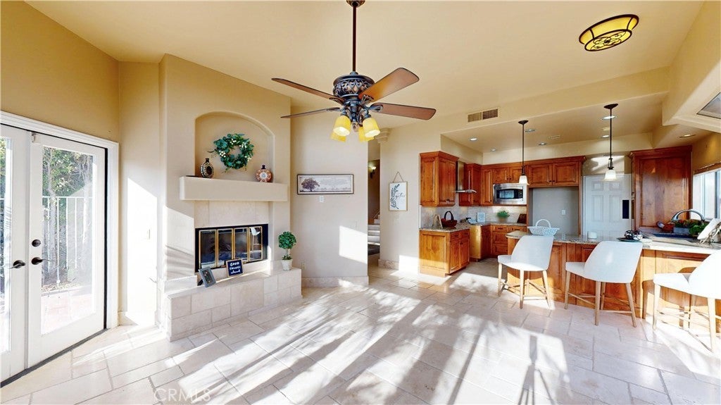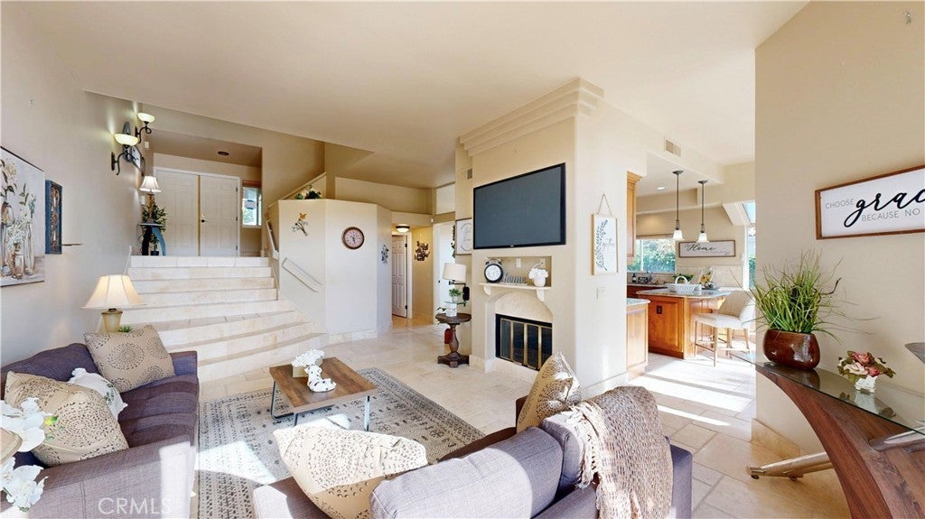 Welcome to Ventana! Experience refined coastal living in this beautifully appointed La Jolla townhome, where ocean views, timeless finishes, and thoughtfully designed spaces come together in perfect harmony. Bathed in natural light, the main living area features soaring ceilings, skylights, and expansive windows that create an open, airy ambiance. A stunning double-sided fireplace anchors both the living and family rooms, adding warmth and architectural charm. The home also offers a formal dining room, perfect for entertaining, and a well-designed layout that blends comfort with functionality. The kitchen is in excellent condition, showcasing custom cabinetry, granite countertops, and stainless steel appliances, including a dishwasher and microwave—ideal for both everyday living and hosting. Upstairs, all three bedrooms provide privacy and comfort. The luxurious primary suite is a true retreat, complete with its own double-sided fireplace and a versatile en suite loft—perfect for a home office or private lounge. Step out through elegant double doors onto your private balcony and enjoy ocean views along with glimpses of the vibrant surrounding area. The spa-inspired primary bathroom features exquisite wood and tumbled travertine finishes, dual vanities, a deep soaking tub, a separate walk-in shower, and a private water closet. A spacious walk-in closet with custom organizers completes the suite. Two additional generously sized bedrooms offer flexibility and comfort, enhanced by ceiling fans and easy-care tumbled travertine flooring. The upstairs hall bath includes a dual vanity and a shower/tub combination. Additional highlights include tumbled travertine flooring throughout both levels, a convenient downstairs powder room, and a separate laundry room with sink. The attached garage offers abundant storage space. Step outside to your private, bricked, multi-level patio—beautifully refreshed with new wood chips—creating the perfect space for relaxing or entertaining. Residents of the desirable Ventana community enjoy resort-style amenities, including three pools, a clubhouse with library and meeting spaces, and multiple tennis and pickleball courts. This exceptional home offers the perfect blend of elegance, comfort, and coastal lifestyle in one of La Jolla’s most sought-after communities.