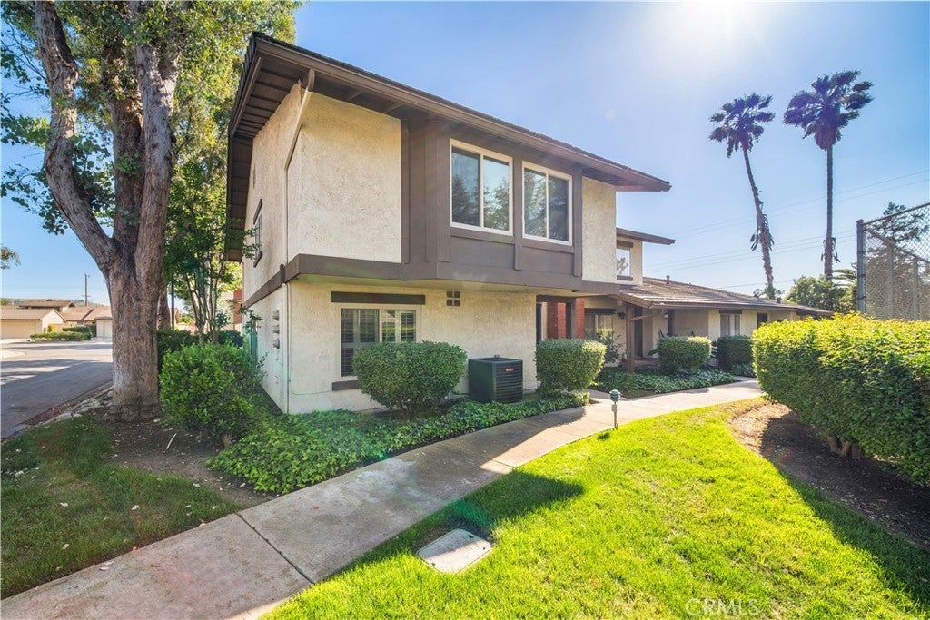 Amazing opportunity to own a meticulously maintained, spacious end unit. This is the largest floor-plan in Aspen Village featuring 3BD/2.5 BA in 1,652 square feet. This gorgeous townhome is an END UNIT, located toward the back of the community and adjacent to the tennis courts. As you enter the spacious floor plan, you are greeted by a large living room with vaulted ceilings and fireplace. The first floor also features a kitchen with a large garden window looking out on to the spacious, private patio and a formal dining room, with built-in cabinets and utility closet. There is also a large den (which could be converted to a 4th bedroom), a laundry room and a half bathroom. The second floor features a large primary suite with remodeled bathroom and ample closet space. Upstairs there are also two additional bedrooms and full bathroom. This home is well maintained, complete with a new HVAC system, dual pane windows and several rooms with plantation shutters. There are two patios, one off the dining room, and one large, covered patio off the living room. The back patio leads to a 2-car garage for private access. The garage also features built-in cabinets for ample storage. This fantastic community boasts well-landscaped common grounds with streams, mature trees, and walking paths winding throughout. Additional community features include: pool, spa, clubhouse, sauna, exercise room/gym and tennis courts. Homes like this are a fabulous opportunity! Located close to everything, including schools, shopping, freeways and parks. This home is a wonderful opportunity! This wonderful home is a MUST SEE!