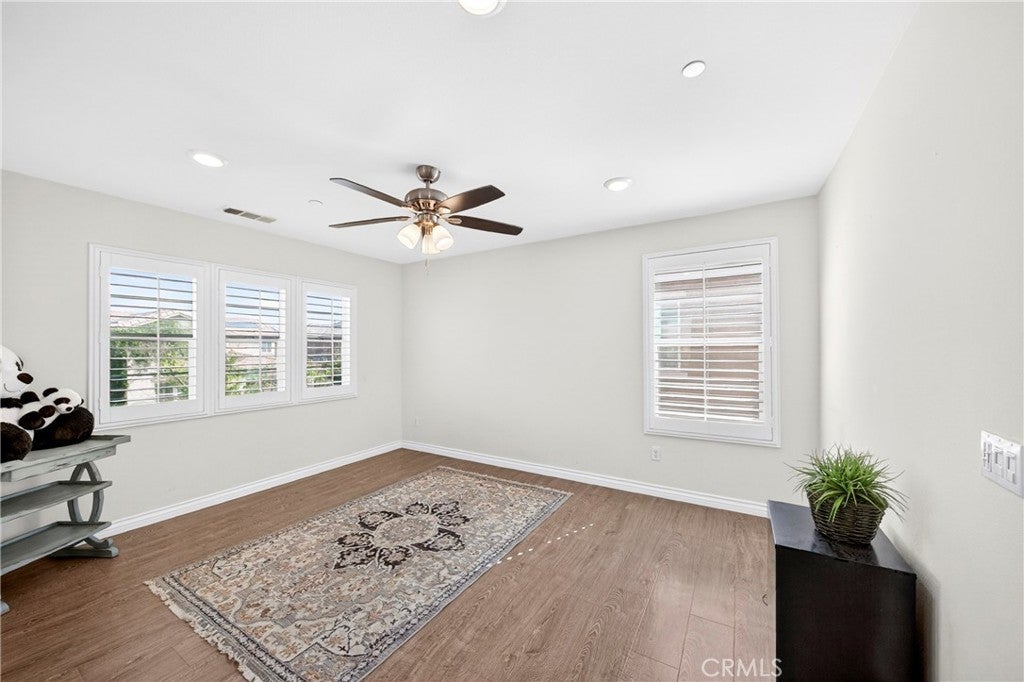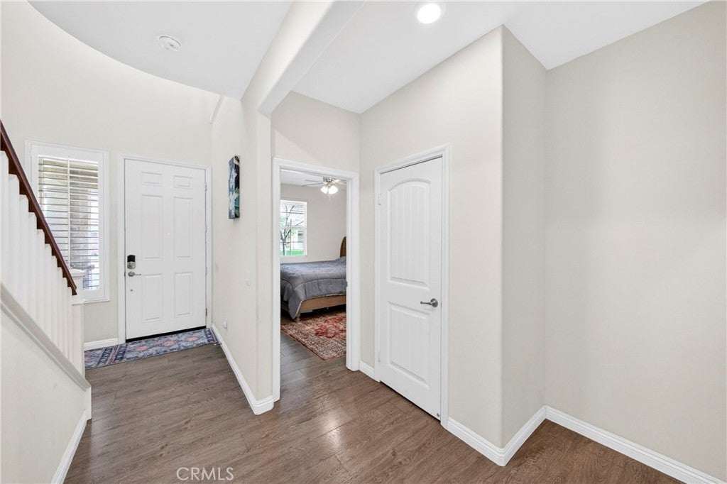 Beautiful Newer Home in a Desirable Community. Located in a sought-after newer housing development close to the freeway, schools, and shopping centers for convenient living. The community offers resort-style amenities, including a swimming pool, clubhouse, and picnic area, all with a low HOA fee. The home features wood flooring throughout, with one bedroom and a full bathroom on the main floor. Upstairs, there are three additional bedrooms, a spacious loft, and a master suite with a walk-in closet. The upgraded kitchen includes modern finishes and appliances. The laundry room is conveniently located on the upper level. Upgraded tankless water heater system. Enjoy a low-maintenance backyard beautifully finished with brick pavers. This property includes a solar system installed by the builder, which will transfer to the buyer upon purchase.