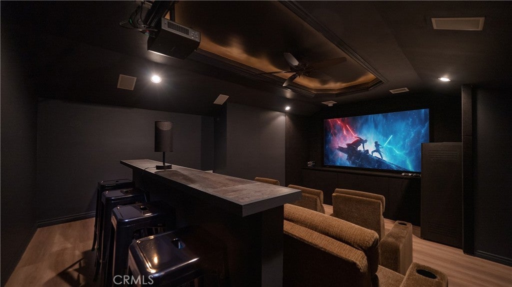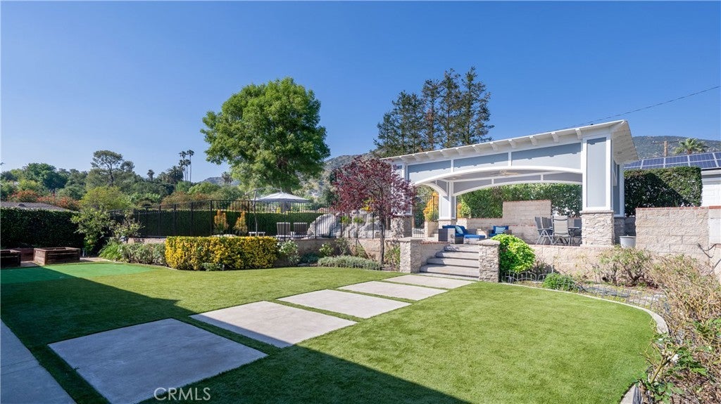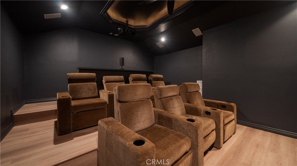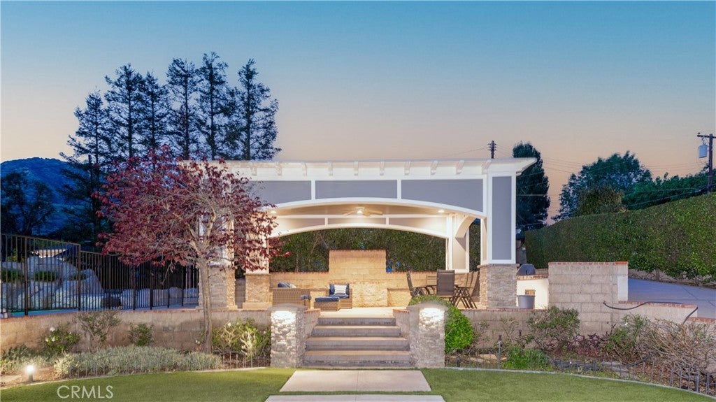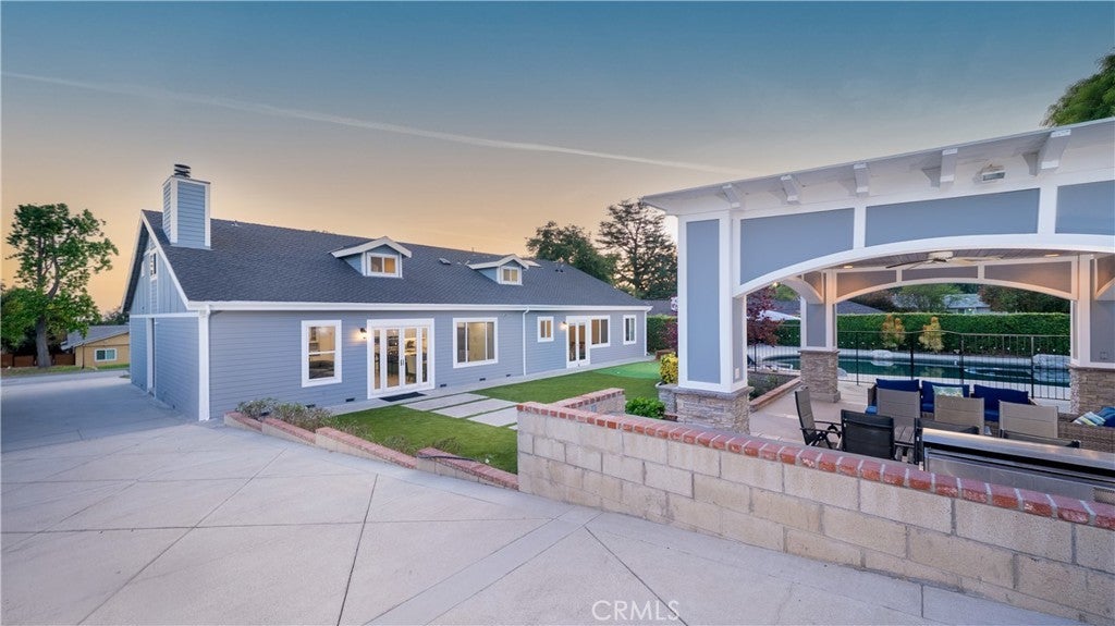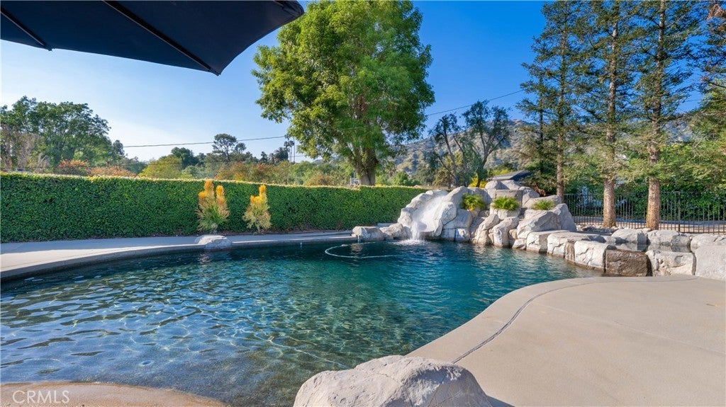 Meticulously custom-built ranch-style home in the foothills of North Glendora. Tucked away on a quiet cul-de-sac, this private and spacious residence offers 4 bedrooms, 5 bathrooms, and the option for a 5th bedroom. Set on a generous 1/2 acre lot, the property combines comfort, functionality, and scenic mountain views in a secure, upscale setting. Designed for both everyday living and entertaining, the home centers around an expansive chef's kitchen that opens seamlessly to the family room. High ceilings and a beautiful fireplace create a warm, inviting space for gatherings. The kitchen features an oversized island, granite countertops with full backsplash, abundant white cabinetry, Thermador high-end appliances, including a 6-burner cooktop with pot filler, and a professional-grade hood. The primary suite offers direct backyard access and includes a spa-like bathroom with dual vanities, a large jacuzzi tub, a walk-in shower with rain showerhead, and a large walk-in closet. All secondary bedrooms feature walk-in closets, a convenient Jack-and-Jill bathroom, and frosted-glass doors. Entertainment options are everywhere. Inside, you will find a private movie theater with a projector, screen, built-in speakers, 7 theater-style seats, and a small bar seating area. A spacious game room offers space for billiards or air hockey, while outdoors, you can enjoy a basketball court, in-ground trampoline, and your own putting green. Additional highlights include natural wood flooring, crown molding & recessed lighting throughout, 5.1 surround sound in the family room, and a media niche with custom cabinetry. Step outside to a north-facing backyard retreat. Enjoy a large covered patio, built-in BBQ, glass rock fire pit, and sweeping mountain views. The resort-style pool with a baja shelf and spa is crafted with natural rock, complete with a waterfall and slide, and pebble-tech coating. Curb appeal stands out with a freshly painted exterior, a large covered front porch with a hanging swing, lighting, & security cameras add both convenience and peace of mind on beautifully landscaped grounds featuring custom brickwork. This is a home built for comfort, connection, and everyday enjoyment, offering a rare blend of space, privacy, and high-end amenities in one of Glendora's most desirable neighborhoods. House was rebuilt in 2004 by previous owner. This home is complete w/5.6KW owned solar system, whole house lighting system, & 400AMP underground electric system.