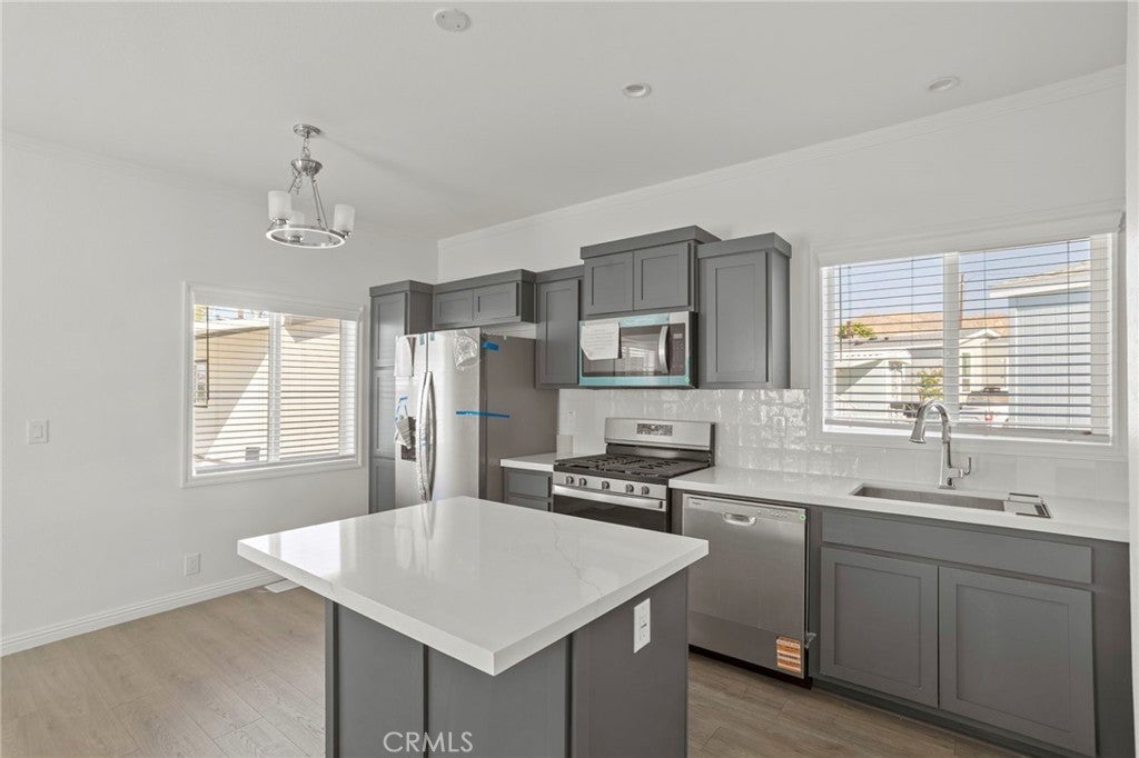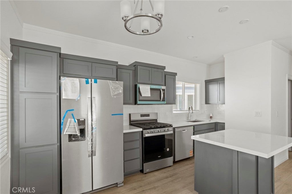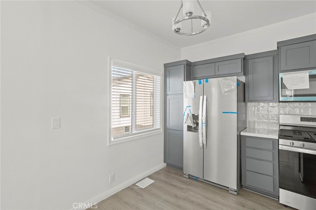 This charming 2026 Silvercrest home features Two bedrooms and two bathrooms, offering approximately 800 square feet of living space. Situated in the all-age, land-leased community of Jurupa Hills, this residence boasts a spacious floor plan with 9-foot sidewalls and a flat ceiling. The kitchen is equipped with Whirlpool appliances, quartz countertops, a subway-tile backsplash, a Kohler stainless-steel sink, and Glazed Granite cabinets. Laminate flooring runs throughout the home, adding to its appeal. Jurupa Hills is conveniently located near various shops, restaurants, and entertainment options. Don't miss out on this opportunity! For more details, please get in touch with the property manager regarding the monthly space rent.