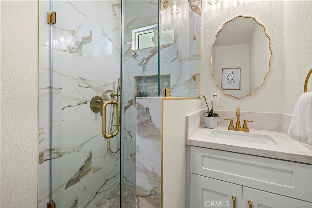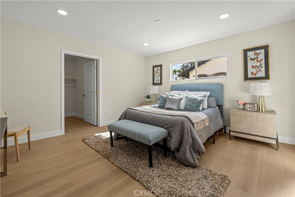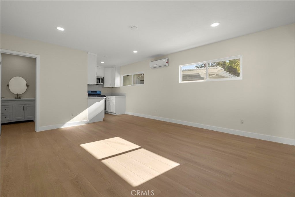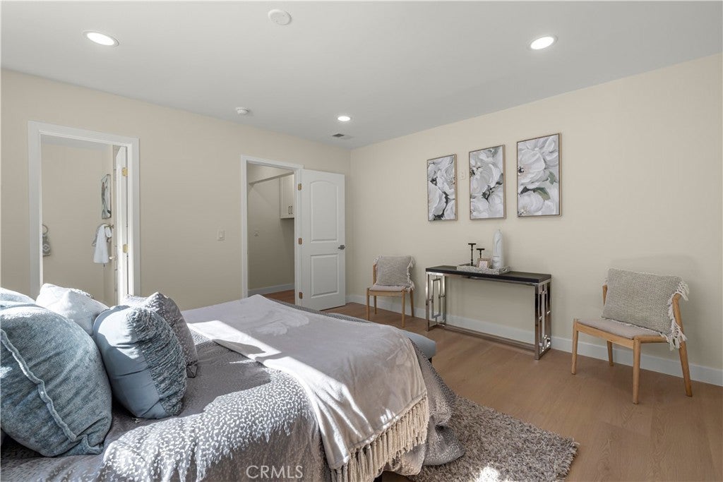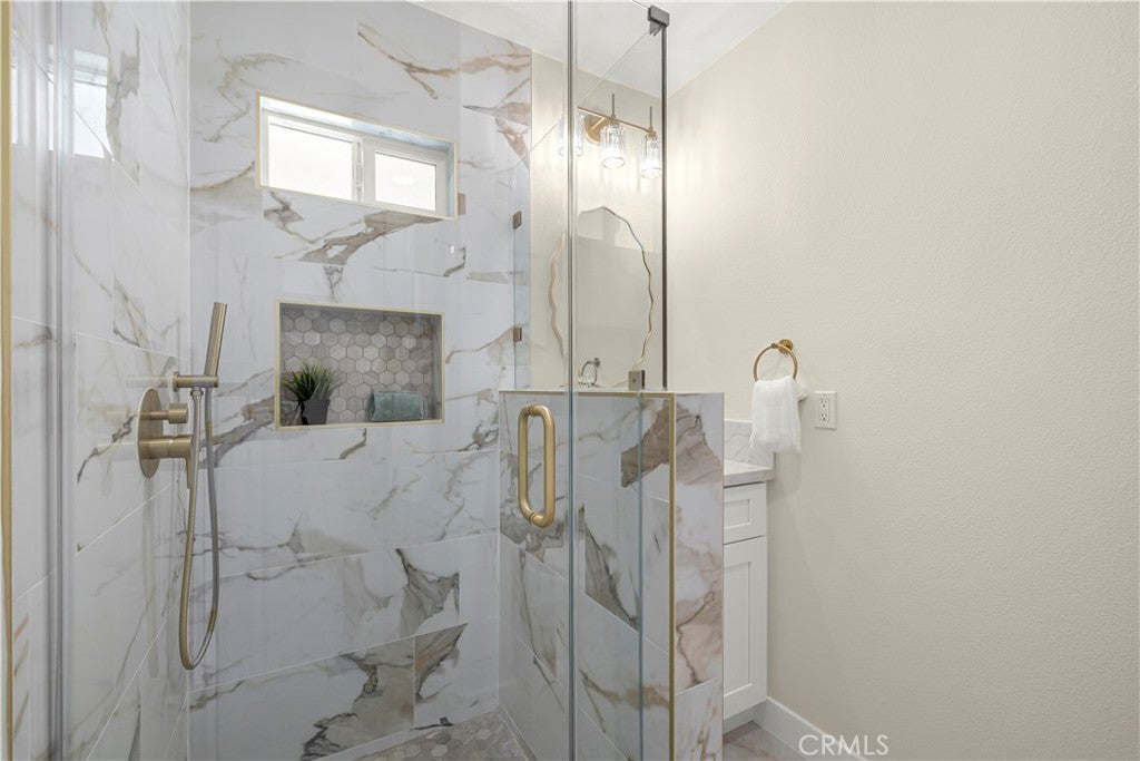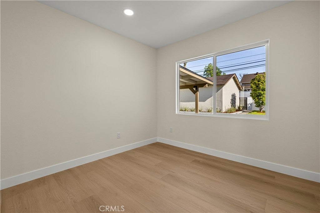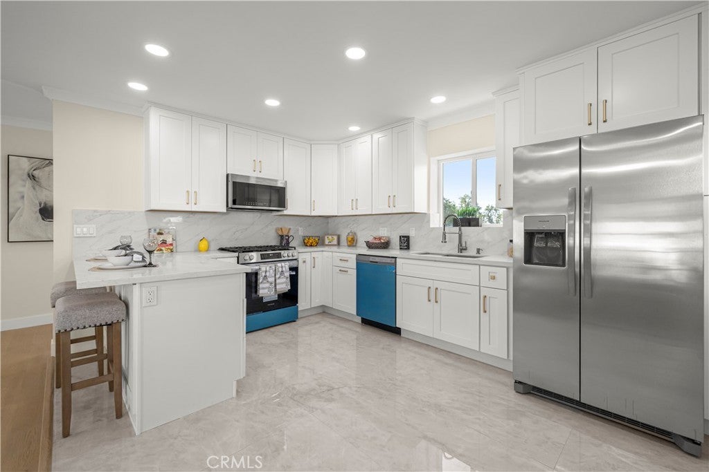 Elegant Reimagined Single-Story Estate with Private ADU in Prime Granada Hills – North of the 118 Freeway. Completely renovated down to the studs, no stone left unturned. The main residence offers approximately 1,700± sq. ft. of refined living space featuring 4 bedrooms and 2 bathrooms, all thoughtfully redesigned with quality materials and attention to detail. The home features a complete electrical overhaul with two new electrical panels. Also included is copper plumbing, central air and heat, and new double-pane vinyl windows for comfort and efficiency. Inside, you’ll find new interior paint, crown molding, new doors throughout the home, custom door hardware, new recessed LED lighting, and high-end luxury vinyl plank flooring. The beautifully redesigned chef’s kitchen showcases all new shaker cabinetry, a large stainless steel farmhouse sink, porcelain tile flooring, and convenient side-entry access, while the fully remodeled bathrooms feature elegant porcelain tile finishes and modern fixtures. The primary suite features a huge walk-in closet, while additional bedrooms include mirrored wardrobe closets. A welcoming fireplace anchors the living space, creating warmth and character. Seamless indoor-outdoor living is highlighted by a dramatic 10-foot sliding glass door to the backyard and double French doors from the dining room leading to the covered patio, perfect for entertaining or relaxing. The exterior has been thoughtfully upgraded with custom two-tone exterior paint, attractive front-yard hardscaping, automatic sprinklers with drip irrigation for planters, and custom designer metal gates at the front, sides, and rear of the property. The backyard is enclosed with durable block walls on the sides and rear, offering added privacy and a clean, finished look. A lush backyard orchard with mature citrus, apple, and fig trees creates a tranquil outdoor setting. A 2-car garage offers potential for a future Jr. ADU conversion. Adding incredible versatility is the private approximately 400 sq. ft. permitted ADU/studio, beautifully finished with its own private entrance, split-unit A/C, full kitchen, full bathroom, walk-in closet, and designer finishes—ideal for guests, extended family, a home office, creative studio, or potential rental income. This turnkey Granada Hills property blends modern elegance, exceptional craftsmanship, and flexible living options, offering a rare opportunity in one of the Valley’s most desirable neighborhoods.