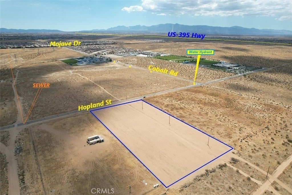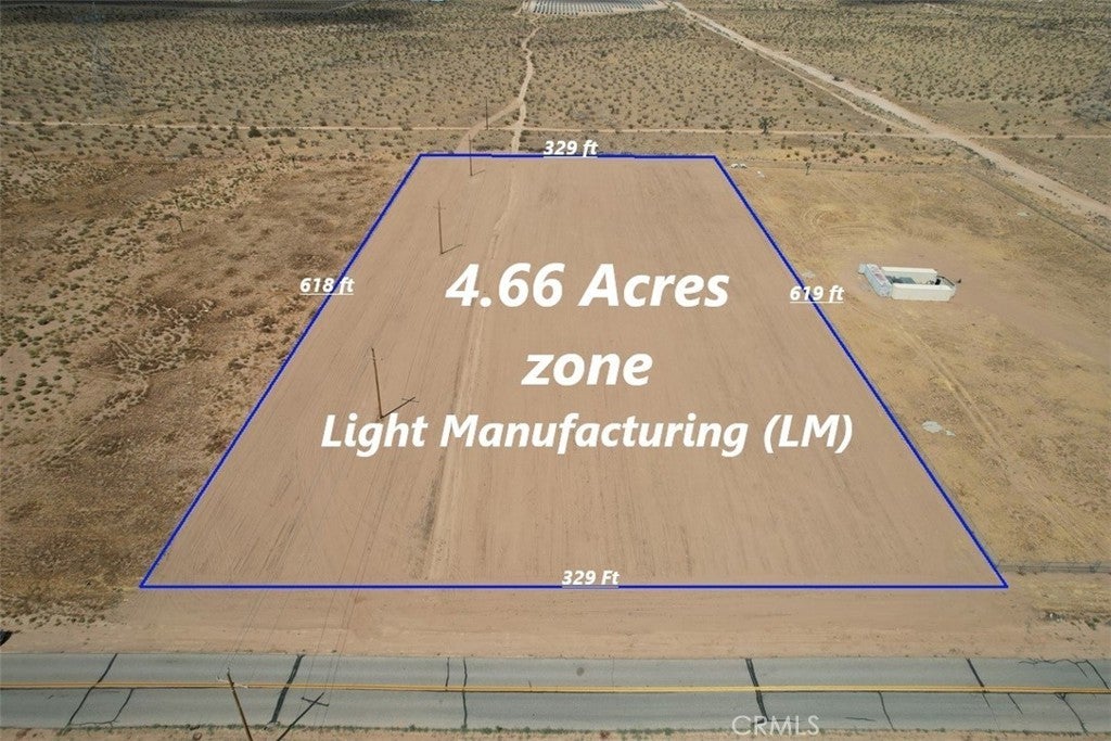 Take a look at these 4.67 acre parcel of flat land, (APN 0455-052-61-0000), located in a prime location projected for growth, currently zoned Light Manufacturing (LM) in Adelanto, CA, utilities Adjacent to Site: electricity, property could have sewage connection about 300ft east from property at the corner of Hopland St and Brucite Rd, Water hydrant is about 600 ft west from property at the corner of Holand St and Cobalt Rd (buyer and buyer’s agent to verify utilities for availability connections) 329 feet frontage and paved road x 618 feet deep rectangular lot, located just 1.65mi. East from US-395 Hwy, about 3+/-miles south of the Southern California Logistics Airport (SCLA) close proximity to Northwest Pipe Company, one of the largest manufacturing companies in North America. Bring your offer today.