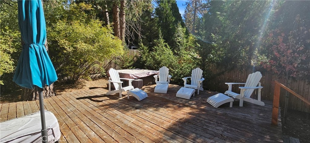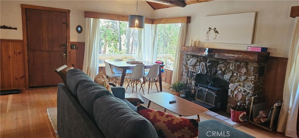 Fully Furnished two bedroom, two bathroom home centrally located in Idyllwild. Hardwood and tile flooring throughout. The living room offers high ceilings with ample natural light, a river stone fireplace, and pull-out couch bed. Master en suite with full bathroom. The second bedroom and master are separated by a hall .75 bathroom. You can find access to the sun room via the kitchen and master en suite. Large front and back decks with a hot tub located on the back deck. There is a season stream that runs through the yard with a bridge with access to a picnic table for those nice meals outdoor after a long day. Central heat and A/C throughout. ***Available April 1, 2025 for medium term rentals only (>30 Days)*** $150 cleaning fee. $500 refundable deposit. $250 refundable pet deposit (if applicable).