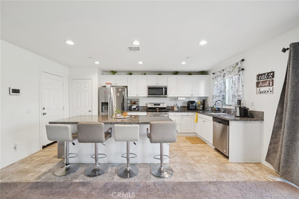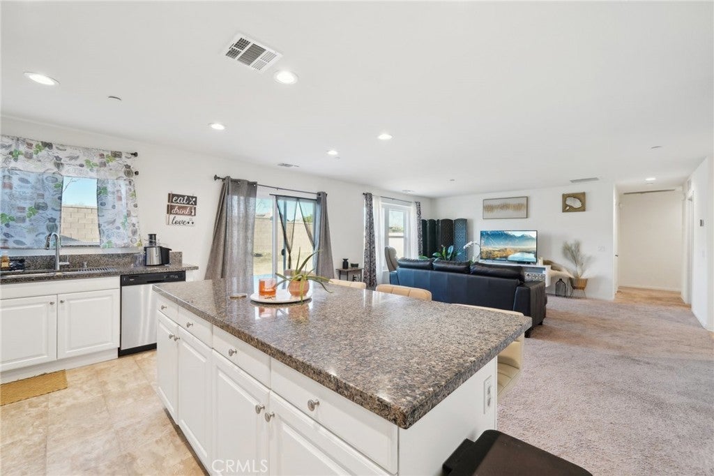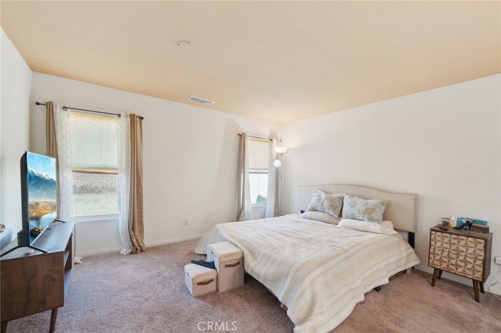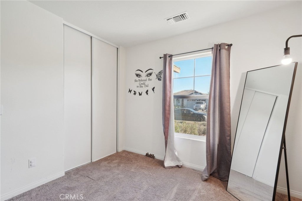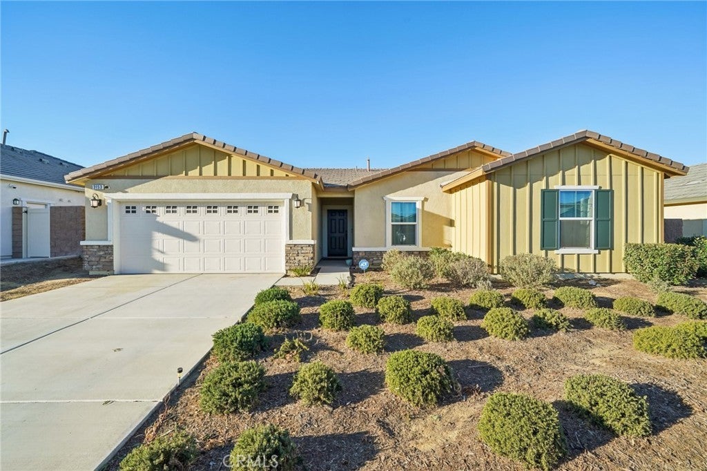 $10,000 FOREGIVABLE GRANT Experience the comfortable, laid-back living you want in this delightful 3-bedroom, 2-bath single-story home in a beautiful Hemet neighborhood! Past the foyer, continue to the open-concept main gathering areas filled with natural light, illuminating a crisp white palette, textured tiles, and plush carpeting underfoot. Glass sliders off the dining alcove beckon you to enjoy scenic alfresco celebrations. Steps away, the bright kitchen makes cooking a breeze with its stainless steel appliances, abundant cabinetry, and granite countertops that extend to the eat-at island. Three well-sized private quarters accommodate you and overnight guests, two of which share a tiled bath. Outshining the others, the primary retreat features a large walk-in closet and a refreshing ensuite with a separate shower and soaking tub. Outside, a versatile fenced-in yard presents plenty of potential for fun and leisure activities. Additionally, there’s a laundry room, an attached 2-car garage, and solar panels for energy efficiency. Notable perks include access to incredible community amenities like the pool, recreational areas, and picnic parks, full gym in the club house. Come for a tour while this great opportunity is still available!