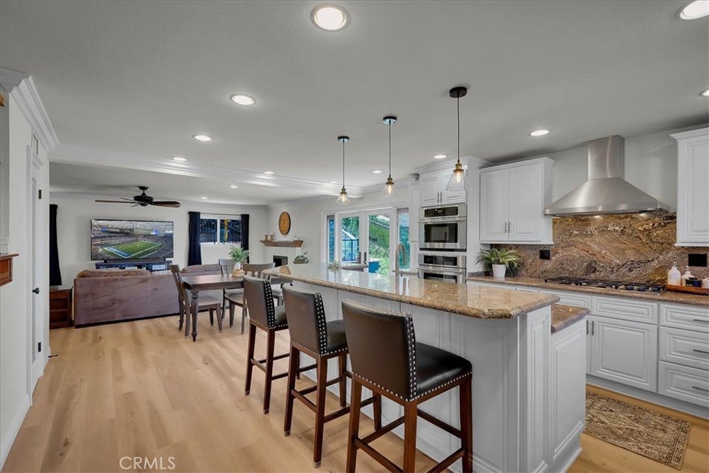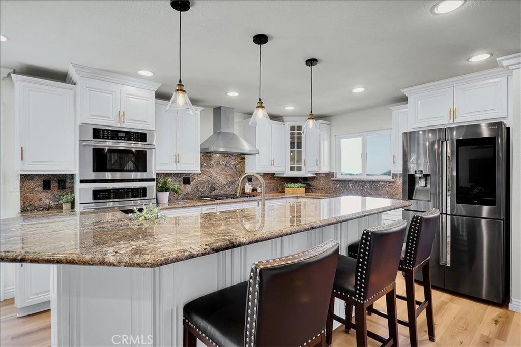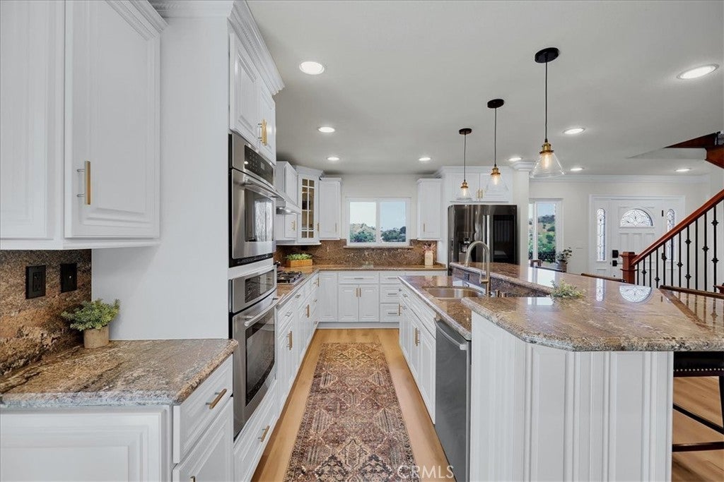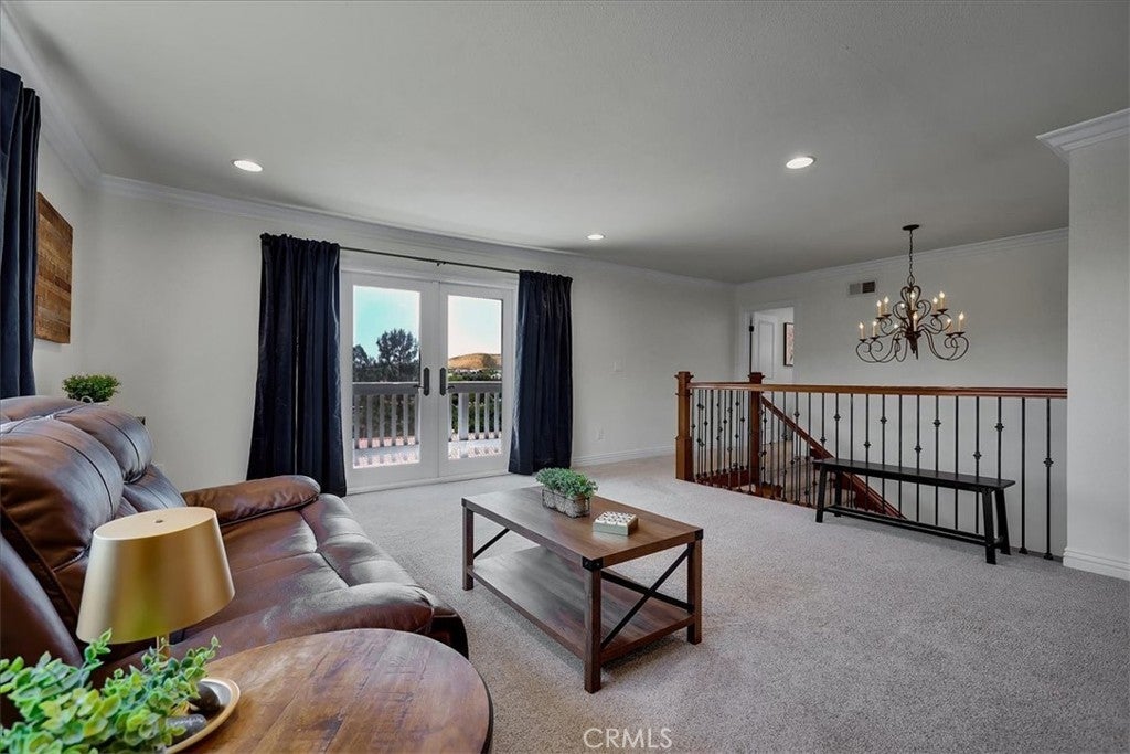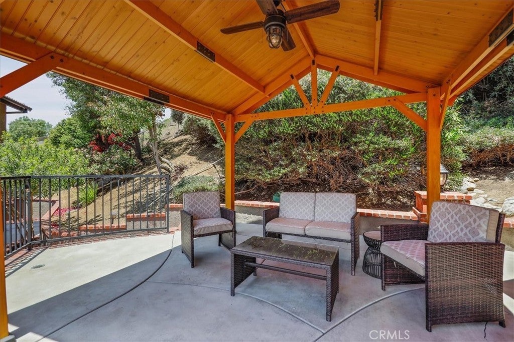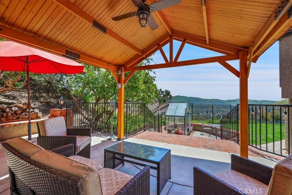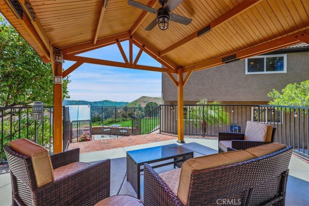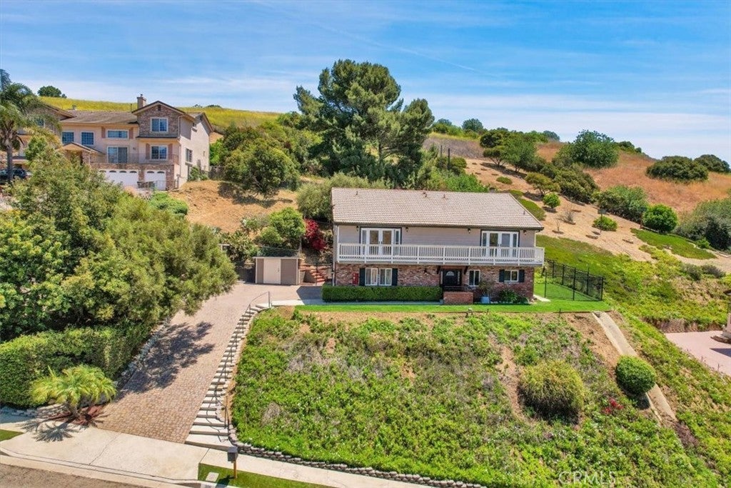 Views! Views! Views! Located in the scenic hillside community of Olinda Village, this stunning 4 bedroom, 2.5 bathroom home boasts panoramic views of Carbon Canyon and tranquil surroundings; on a clear day giving way to see Catalina Island. The first floor features an open-concept layout that seamlessly connects the kitchen, dining area, and living room. The kitchen is a standout with its bright white cabinetry, tan and black granite countertops, built-in double ovens, range cooktop, dishwasher, center island, and pantry for ample storage. The adjoining living room includes a cozy fireplace and access to the backyard, creating a warm and welcoming space to gather. A laundry room on the main floor adds convenience with built-in cabinetry, a utility sink, and countertop space for folding. The powder room also features direct access to the backyard — ideal for guests during outdoor gatherings. Upstairs, you’ll find a versatile loft complete with a wet bar, built-in wine fridge, and balcony access to amazing views; the loft offers endless potential as a game room, office, or lounge. All four bedrooms are located on the second floor for added privacy, along with a stylish hall bathroom featuring an oversized wood vanity, granite countertops, glass shower doors, and gray tile flooring. The primary suite is spacious and serene, with balcony access to vast views in the peaceful hilltop, a walk-in closet featuring custom built-in cabinetry, and a beautifully appointed ensuite bathroom. The primary bath boasts dual vanities, a dedicated makeup vanity, a walk-in frameless glass shower with subway tile and mosaic rock accents, and ample storage cabinetry. The backyard is a true extension of the home, offering a blend of grassy areas, concrete and brick hardscaping, and a large, shaded gazebo to enjoy the most stunning views in the neighborhood. The generous lot offers the potential to build an ADU. This home is equipped with smart home features, including a Lutron lighting control system that allows you to manage lighting right from your phone. A 12-kilowatt solar system with a 10-kilowatt backup battery is fully paid to help reduce energy costs. The 16-zone Ring sprinkler system ensures your landscaping stays lush with minimal effort. This home is a rare combination of natural beauty, modern functionality, and flexible living space, all in a peaceful and sought-after hillside community while only minutes away from Downtown Brea! **Check out the virtual tour!**