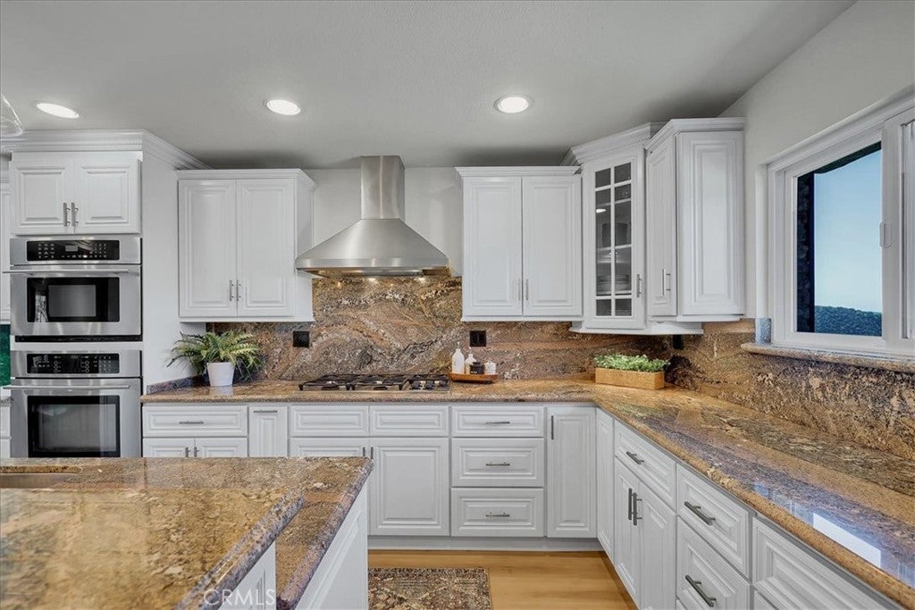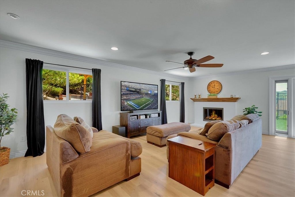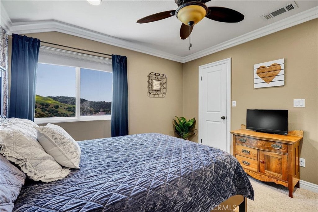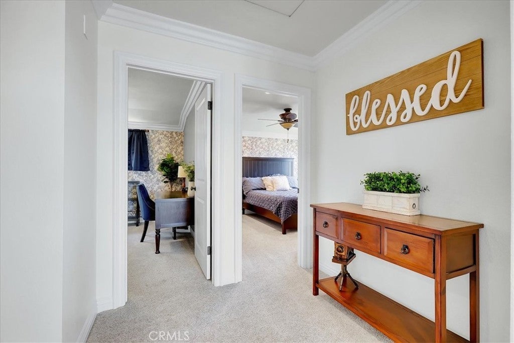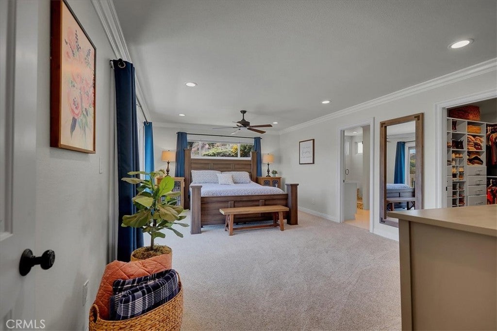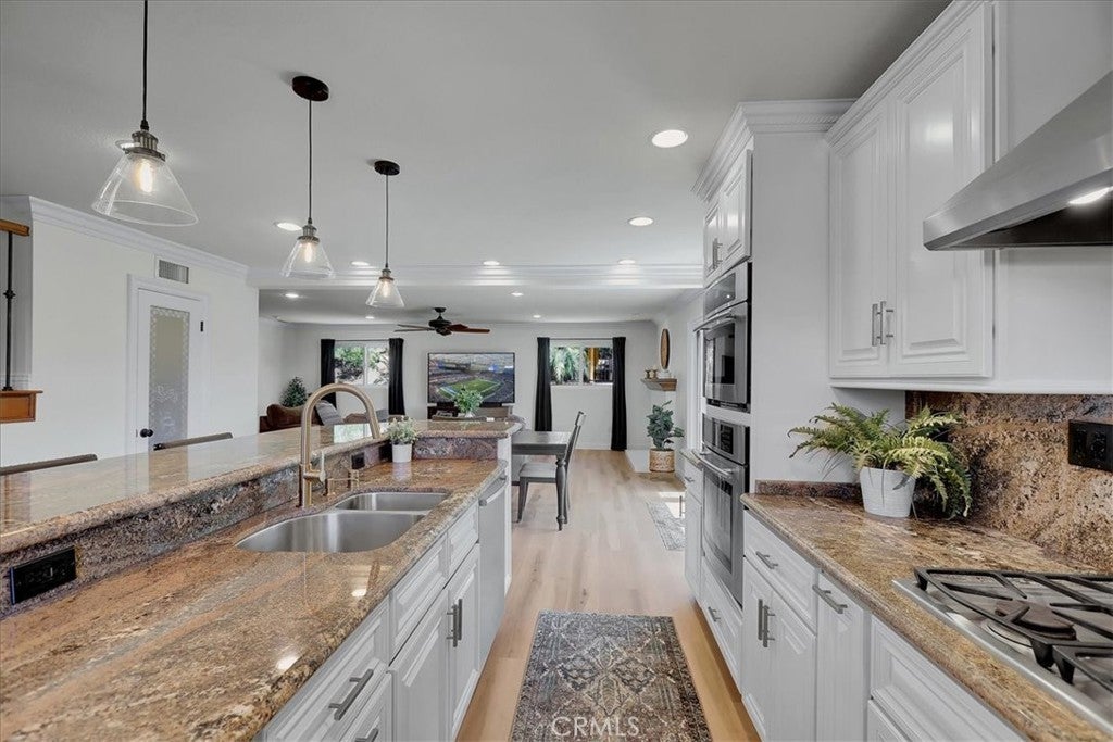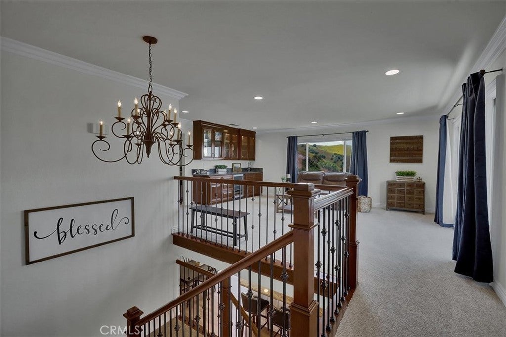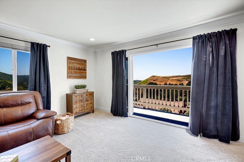 Views! Views! Views! Located in the scenic hillside community of Olinda Village, this stunning 4 bedroom, 2.5 bathroom home boasts panoramic views of Carbon Canyon and tranquil surroundings; on a clear day giving way to see Catalina Island. The first floor features an open-concept layout that seamlessly connects the kitchen, dining area, and living room. The kitchen is a standout with its bright white cabinetry, tan and black granite countertops, built-in double ovens, range cooktop, dishwasher, center island, and pantry for ample storage. The adjoining living room includes a cozy fireplace and access to the backyard, creating a warm and welcoming space to gather. A laundry room on the main floor adds convenience with built-in cabinetry, a utility sink, and countertop space for folding. The powder room also features direct access to the backyard — ideal for guests during outdoor gatherings. Upstairs, you’ll find a versatile loft complete with a wet bar, built-in wine fridge, and balcony access to amazing views; the loft offers endless potential as a game room, office, or lounge. All four bedrooms are located on the second floor for added privacy, along with a stylish hall bathroom featuring an oversized wood vanity, granite countertops, glass shower doors, and gray tile flooring. The primary suite is spacious and serene, with balcony access to vast views in the peaceful hilltop, a walk-in closet featuring custom built-in cabinetry, and a beautifully appointed ensuite bathroom. The primary bath boasts dual vanities, a dedicated makeup vanity, a walk-in frameless glass shower with subway tile and mosaic rock accents, and ample storage cabinetry. The backyard is a true extension of the home, offering a blend of grassy areas, concrete and brick hardscaping, and a large, shaded gazebo to enjoy the most stunning views in the neighborhood. The generous lot offers the potential to build an ADU. This home is equipped with smart home features, including a Lutron lighting control system that allows you to manage lighting right from your phone. A 12-kilowatt solar system with a 10-kilowatt backup battery is fully paid to help reduce energy costs. The 16-zone Ring sprinkler system ensures your landscaping stays lush with minimal effort. This home is a rare combination of natural beauty, modern functionality, and flexible living space, all in a peaceful and sought-after hillside community while only minutes away from Downtown Brea! **Check out the virtual tour!**