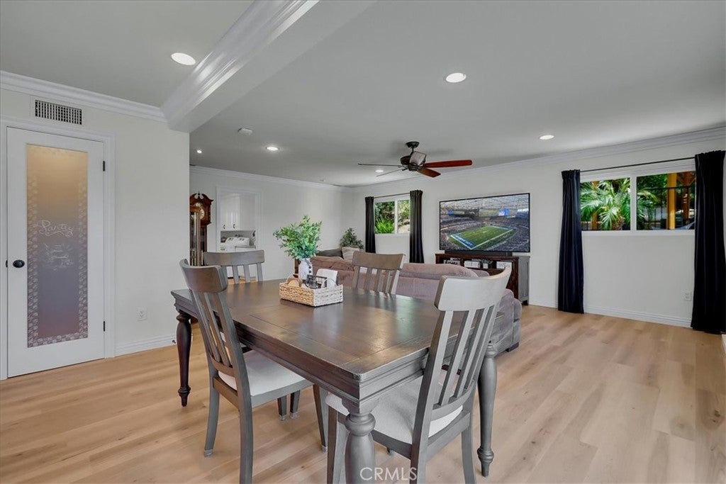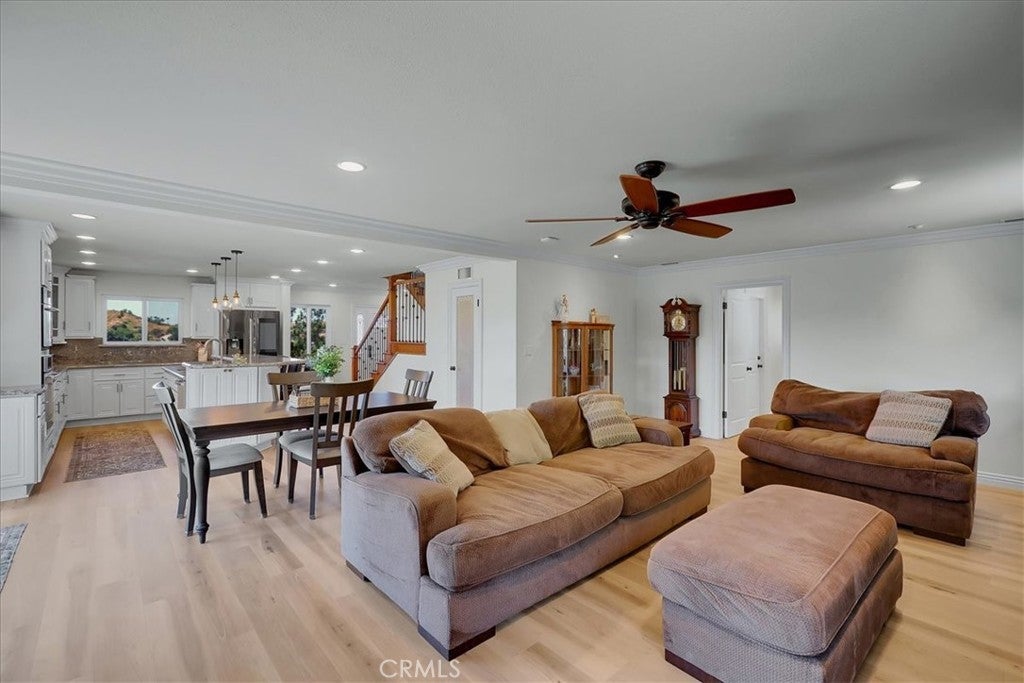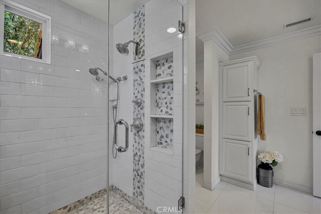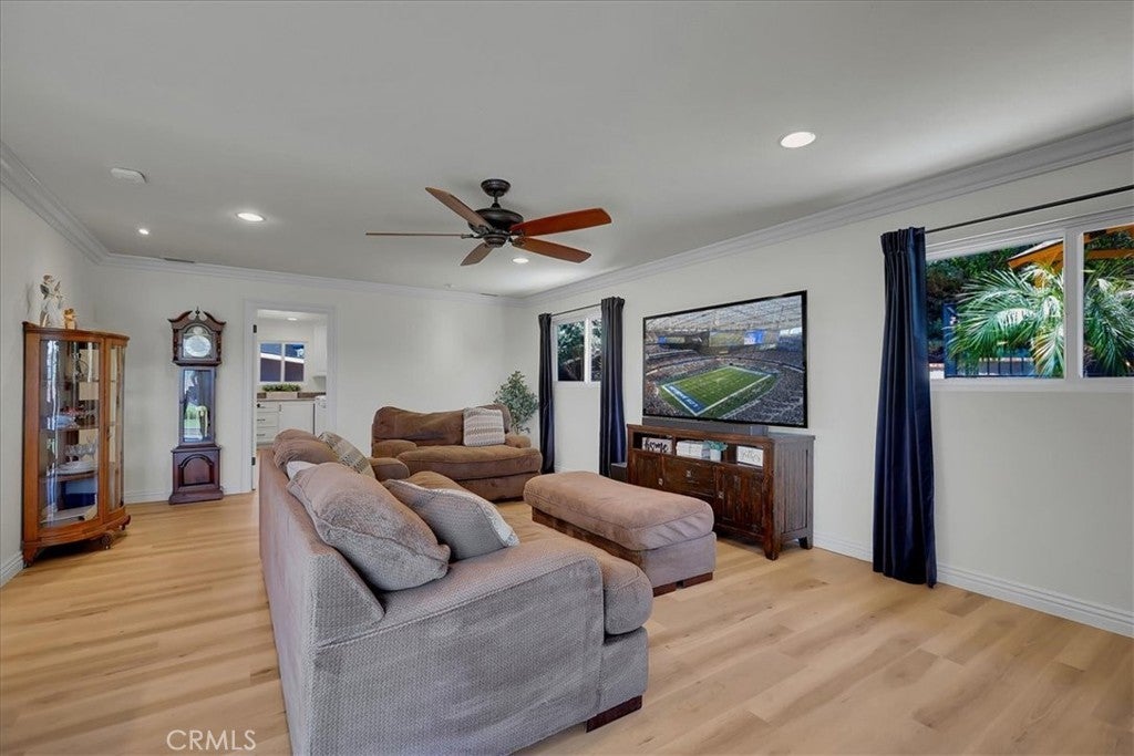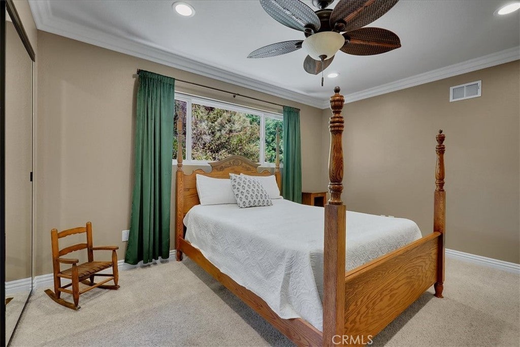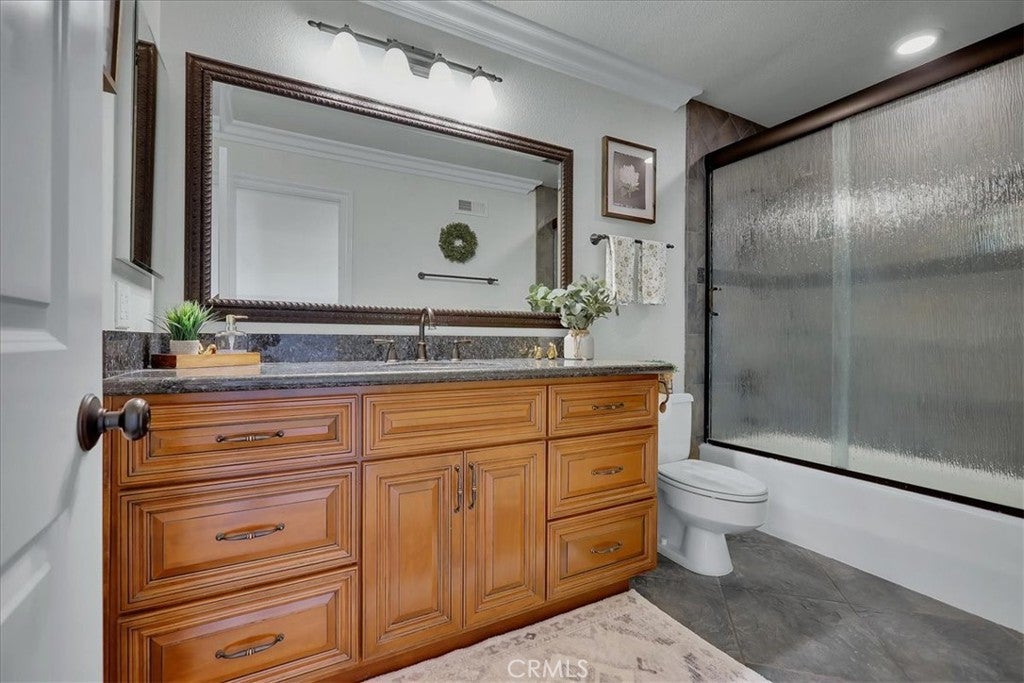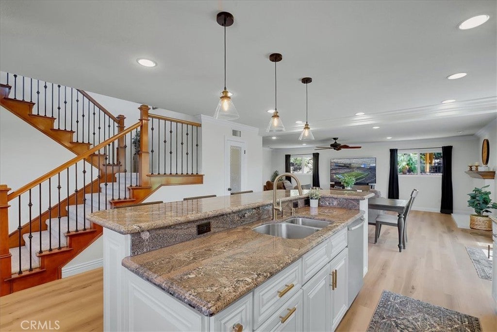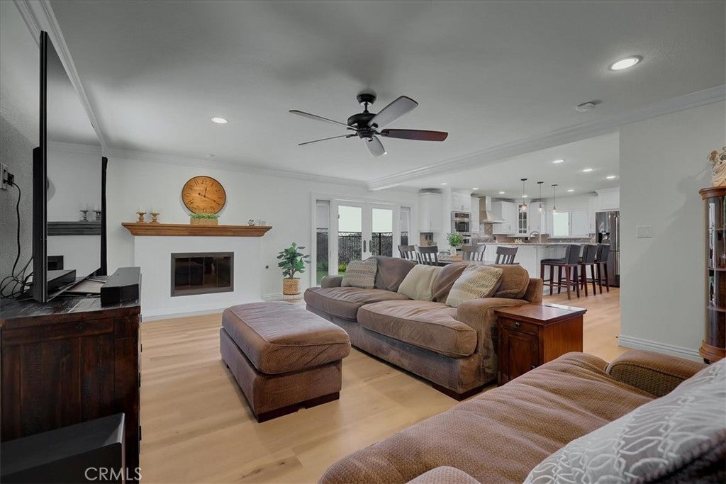 Views! Views! Views! Located in the scenic hillside community of Olinda Village, this stunning 4 bedroom, 2.5 bathroom home boasts panoramic views of Carbon Canyon and tranquil surroundings; on a clear day giving way to see Catalina Island. The first floor features an open-concept layout that seamlessly connects the kitchen, dining area, and living room. The kitchen is a standout with its bright white cabinetry, tan and black granite countertops, built-in double ovens, range cooktop, dishwasher, center island, and pantry for ample storage. The adjoining living room includes a cozy fireplace and access to the backyard, creating a warm and welcoming space to gather. A laundry room on the main floor adds convenience with built-in cabinetry, a utility sink, and countertop space for folding. The powder room also features direct access to the backyard — ideal for guests during outdoor gatherings. Upstairs, you’ll find a versatile loft complete with a wet bar, built-in wine fridge, and balcony access to amazing views; the loft offers endless potential as a game room, office, or lounge. All four bedrooms are located on the second floor for added privacy, along with a stylish hall bathroom featuring an oversized wood vanity, granite countertops, glass shower doors, and gray tile flooring. The primary suite is spacious and serene, with balcony access to vast views in the peaceful hilltop, a walk-in closet featuring custom built-in cabinetry, and a beautifully appointed ensuite bathroom. The primary bath boasts dual vanities, a dedicated makeup vanity, a walk-in frameless glass shower with subway tile and mosaic rock accents, and ample storage cabinetry. The backyard is a true extension of the home, offering a blend of grassy areas, concrete and brick hardscaping, and a large, shaded gazebo to enjoy the most stunning views in the neighborhood. The generous lot offers the potential to build an ADU. This home is equipped with smart home features, including a Lutron lighting control system that allows you to manage lighting right from your phone. A 12-kilowatt solar system with a 10-kilowatt backup battery is fully paid to help reduce energy costs. The 16-zone Ring sprinkler system ensures your landscaping stays lush with minimal effort. This home is a rare combination of natural beauty, modern functionality, and flexible living space, all in a peaceful and sought-after hillside community while only minutes away from Downtown Brea! **Check out the virtual tour!**