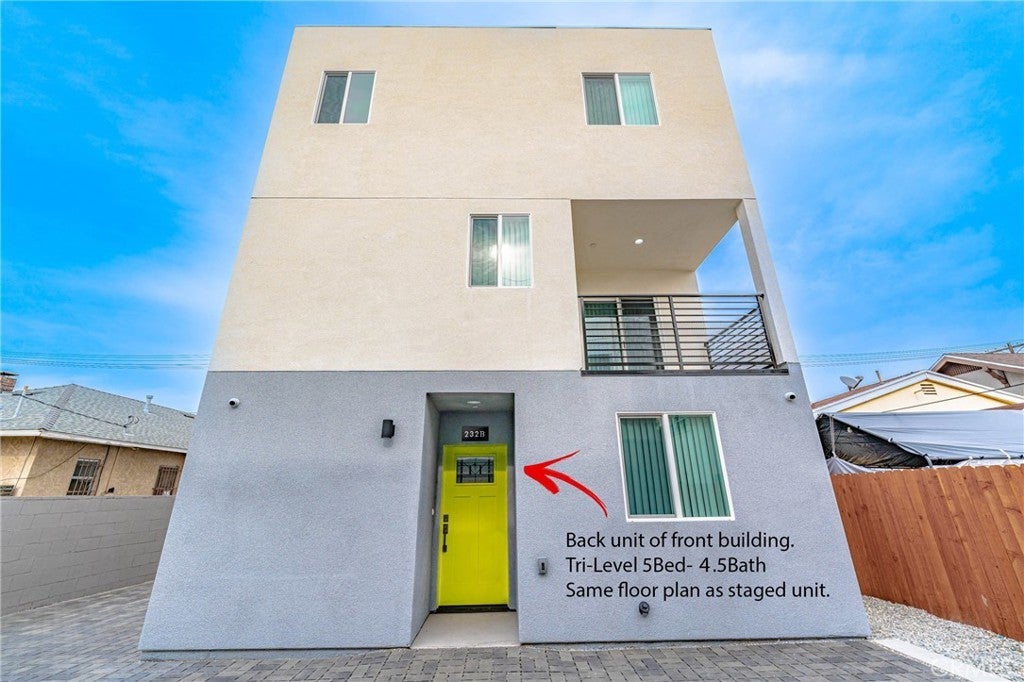BUILT BY LAJOMA PROPERTIES IN 2023. THIS LUXURIOUS AND CONTEMPORARY, NEW CONSTRUCTION DUPLEX AND ADU. THIS PROPERTY IS CENTRALLY LOCATED TO THE 110 FREEWAY, BMO STADIUM, LA MEMORIAL COLISEUM, USC, SOFI STADIUM, CRYPTO.COM ARENA AND MORE! TOTAL OF 3 UNITS, FRONT BUILDING IS A THREE STORY DUPLEX: 5 BEDROOM, 4.5 BATH EACH; REAR BUILDING IS A TWO STORY 3 BEDROOM 2 BATH ADU. THESE UNITS HAVE ONE OF LA's BEST FLOOR PLAN LAYOUT WITH MASSIVE TOWNHOME STYLE UNITS. SPACIOUS BEDROOMS IN ALL UNITS WITH CUSTOM CLOSETS, QUARTS COUNTERTOPS IN KITCHENS AND BATHROOMS, CUSTOM WINDOW SHADES, BRAND NEW SAMSUNG STAINLESS STEEL APPLIANCES, CUSTOM SHAKER CABINETS, TWO TONED INTERIOR PAINTING, CENTRAL HVAC SYSTEM IN EACH UNIT, LOW VOLTAGE LED RECESSED LIGHTING THROUGHOUT EACH UNIT, LAUNDRY ROOMS IN EACH UNIT WITH BRAND NEW SAMSUNG WASHER & DRYER, TANKLESS WATER HEATERS, GREEN CERTIFIED, DROUGHT TOLERANT LANDSCAPING, AUTOMATIC FIRE SPRINKLER SYSTEM THROUGHOUT ALL UNITS, AUTOMATIC FRONT GATE, DECORATIVE WOOD FENCE AND BLOCK WALL. 1-TWO CAR ATTACHED GARAGE, PROPERTY WELL SECURED, PLENTY OF PARKING ON SITE WITH DECORATIVE PAVERS THROUGHOUT DRIVEWAY. THERE ARE 2 WATER METERS AND 1 SUB WATER METER, 3 GAS METERS, AND 3 ELECTRIC METERS. PERFECT RENTAL PROPERTY, NO RENT CONTROL. MUST SEE THIS PROPERTY IN PERSON TO FULLY APPRECIATE ITS BEAUTY!
