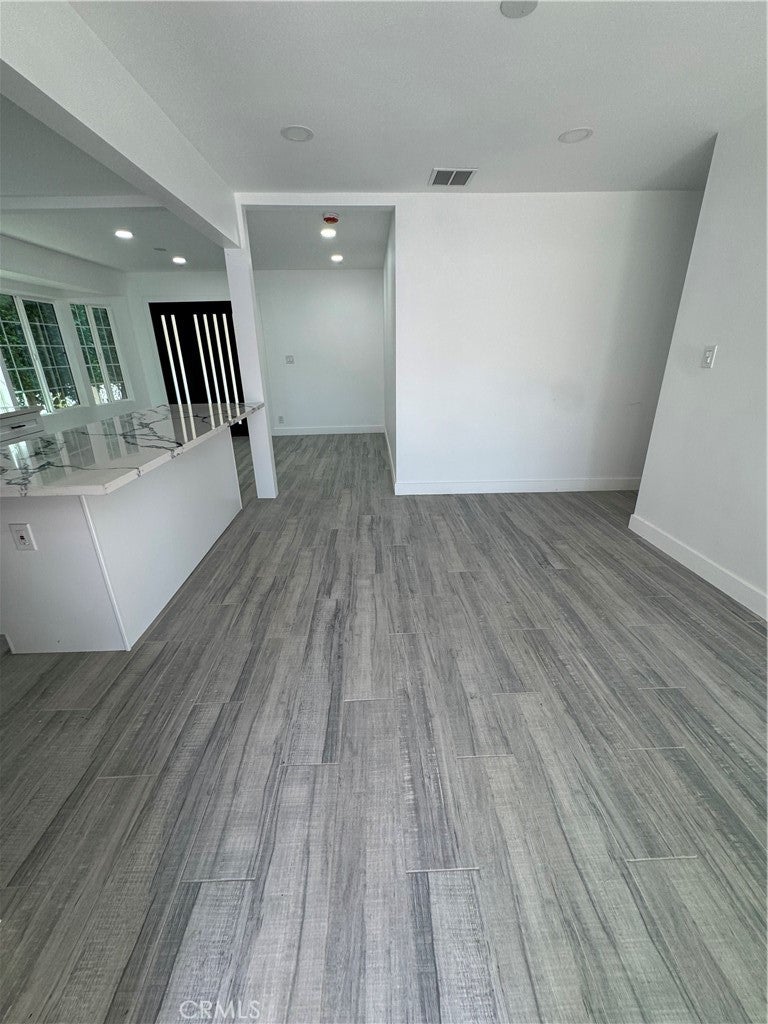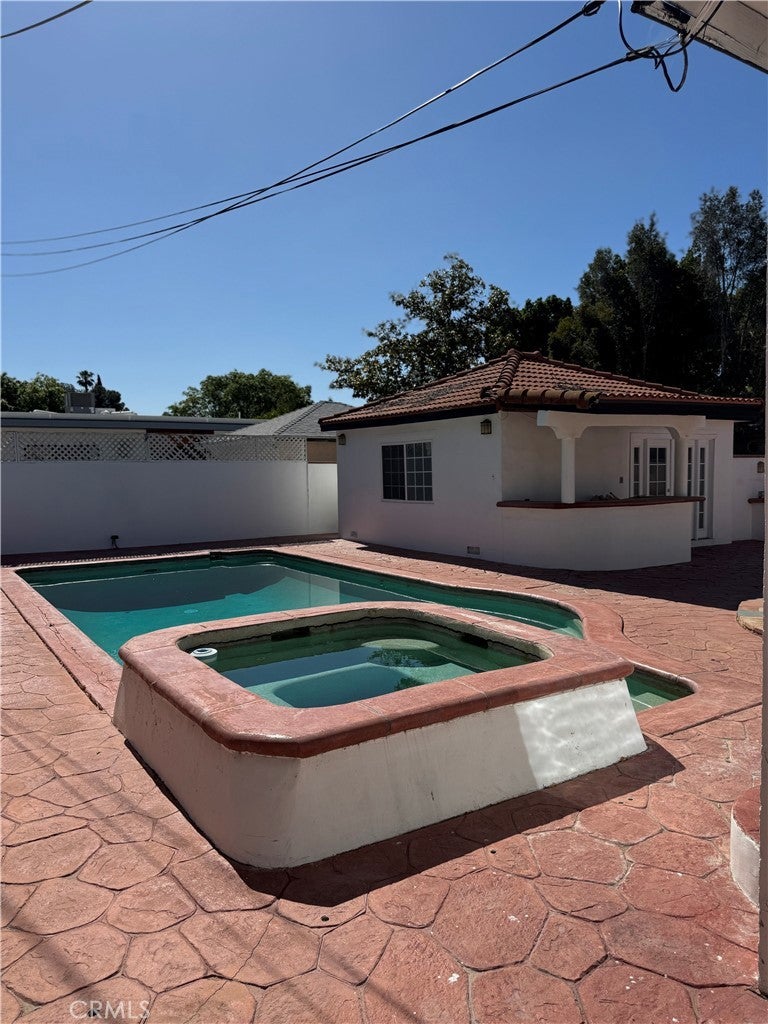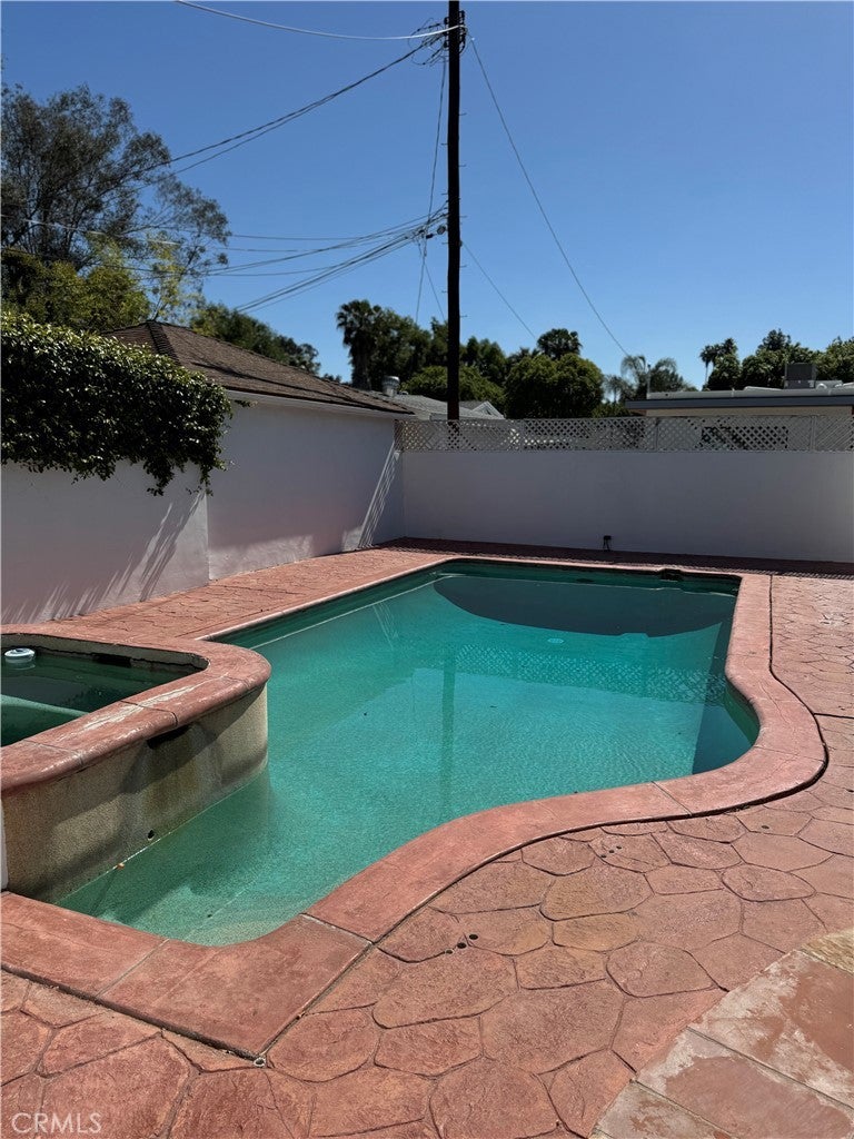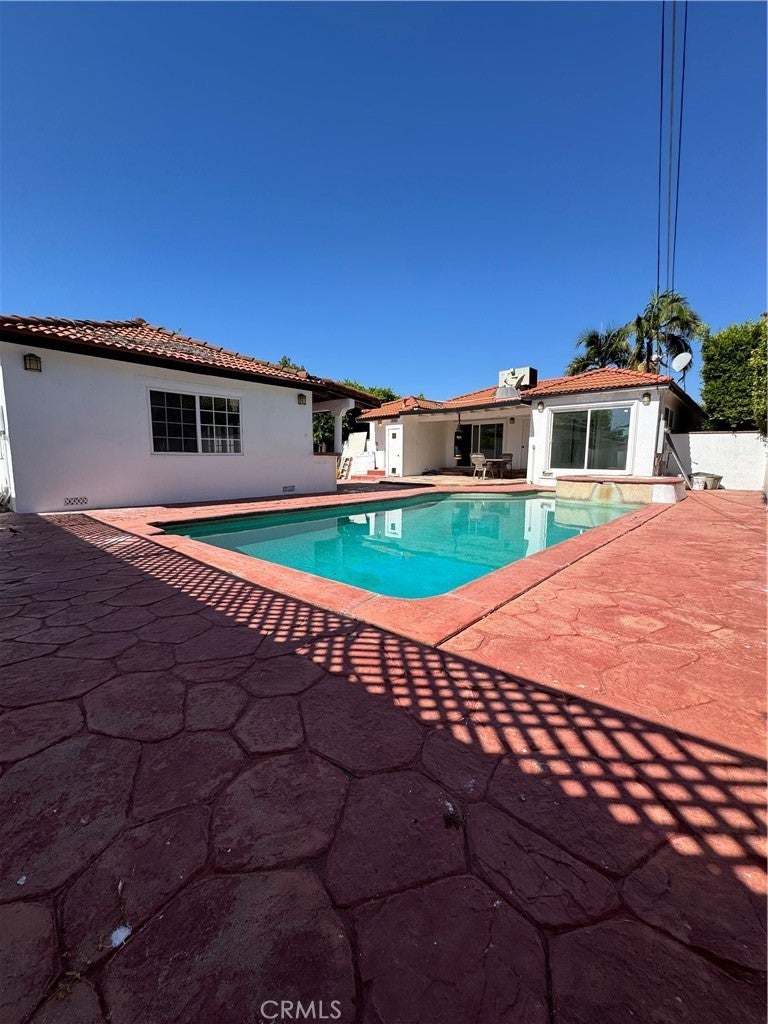 Beautifully remodeled 3-bedroom, 3-bathroom home in the heart of Encino. This single-story property features an open floor plan with an abundance of natural light, wood-look tile flooring, and recessed lighting throughout. The gourmet kitchen offers quartz countertops with striking waterfall edges, custom cabinetry, and modern finishes. All three bathrooms have been tastefully updated with designer tile, glass shower enclosures, and sleek fixtures. The spacious backyard includes a sparkling pool, spa, and covered outdoor bar area, ideal for entertaining. A detached 2-car garage and extended driveway provide ample parking. Located near major shopping centers, dining, and within a well-regarded school district, this turnkey home combines style, comfort, and convenience in a sought-after neighborhood.